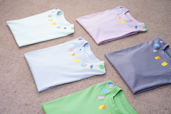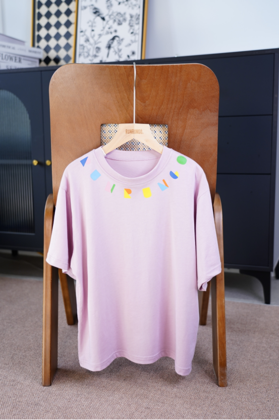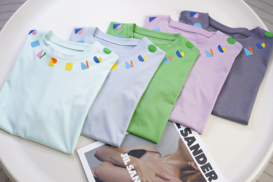 从插肩缝到下摆、袖口,全部一样的工艺。 短袖工艺·经典几何水印领串标, 无胶感印花·舒适不发硬、不闷汗。