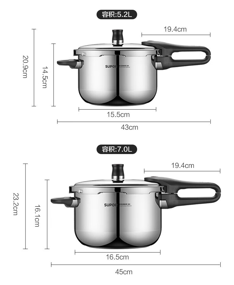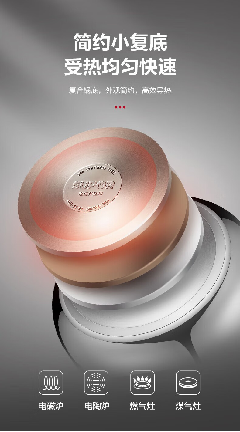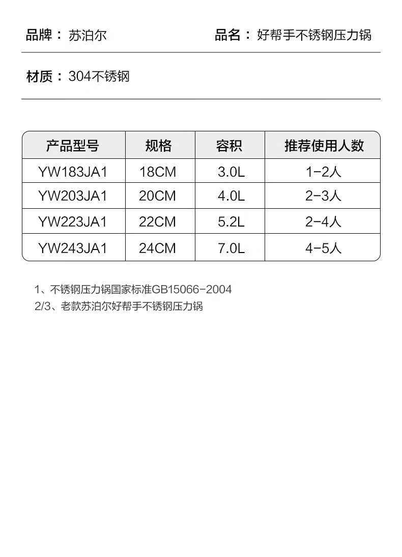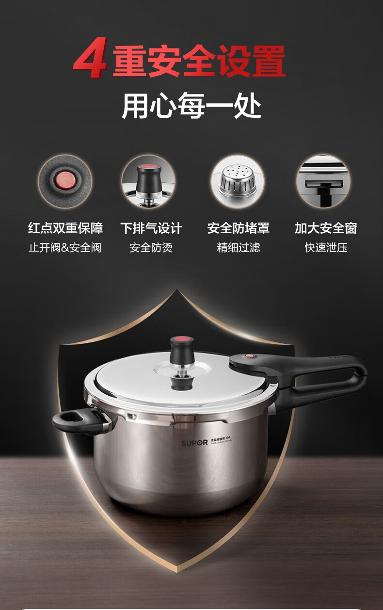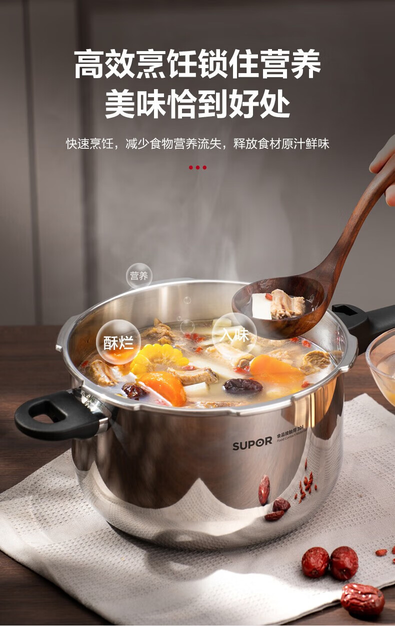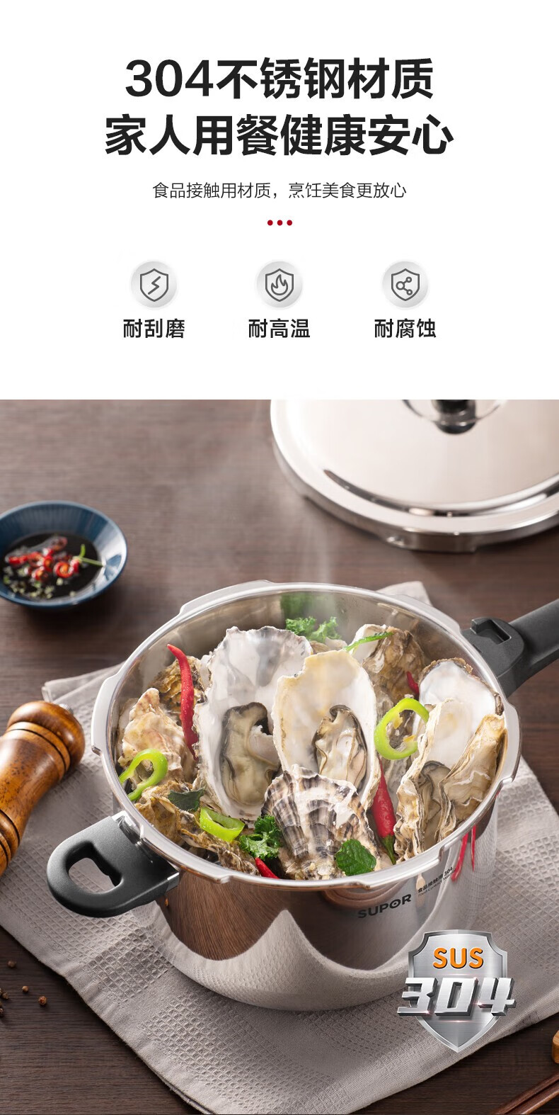 苏泊尔SUPOR高压锅304不锈钢家用快煮压力锅24cm复底磁炉通用YW243JA1