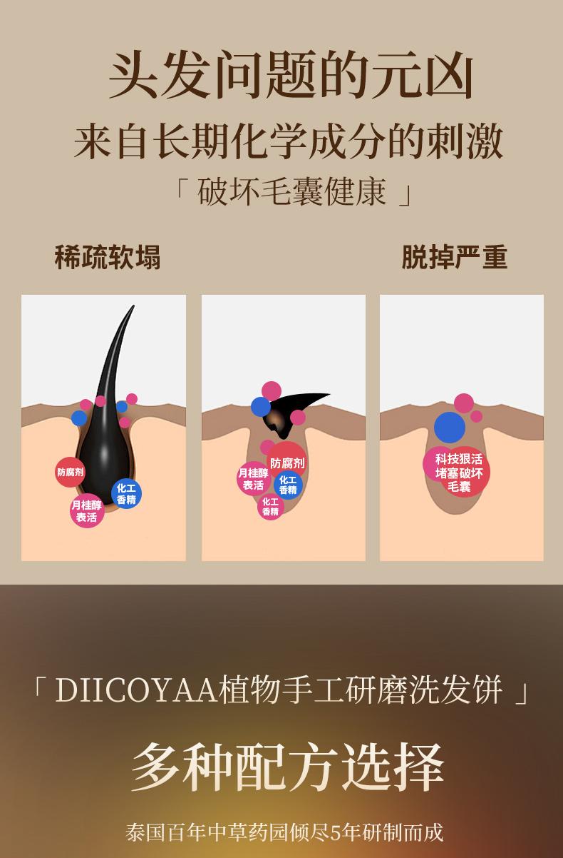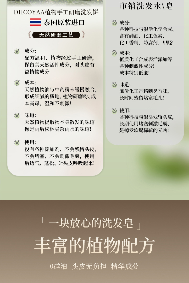 【植物养发】泰国进口DIICOYAA植物手工研磨洗发皂 植物配方 控油去屑 4款可选 100g/块