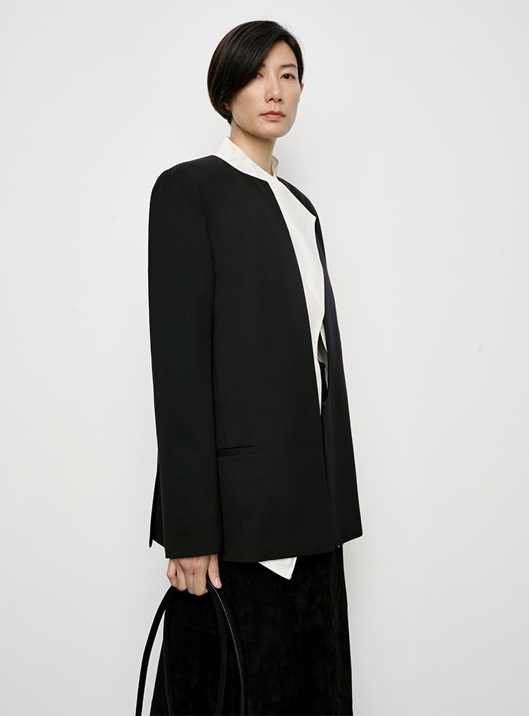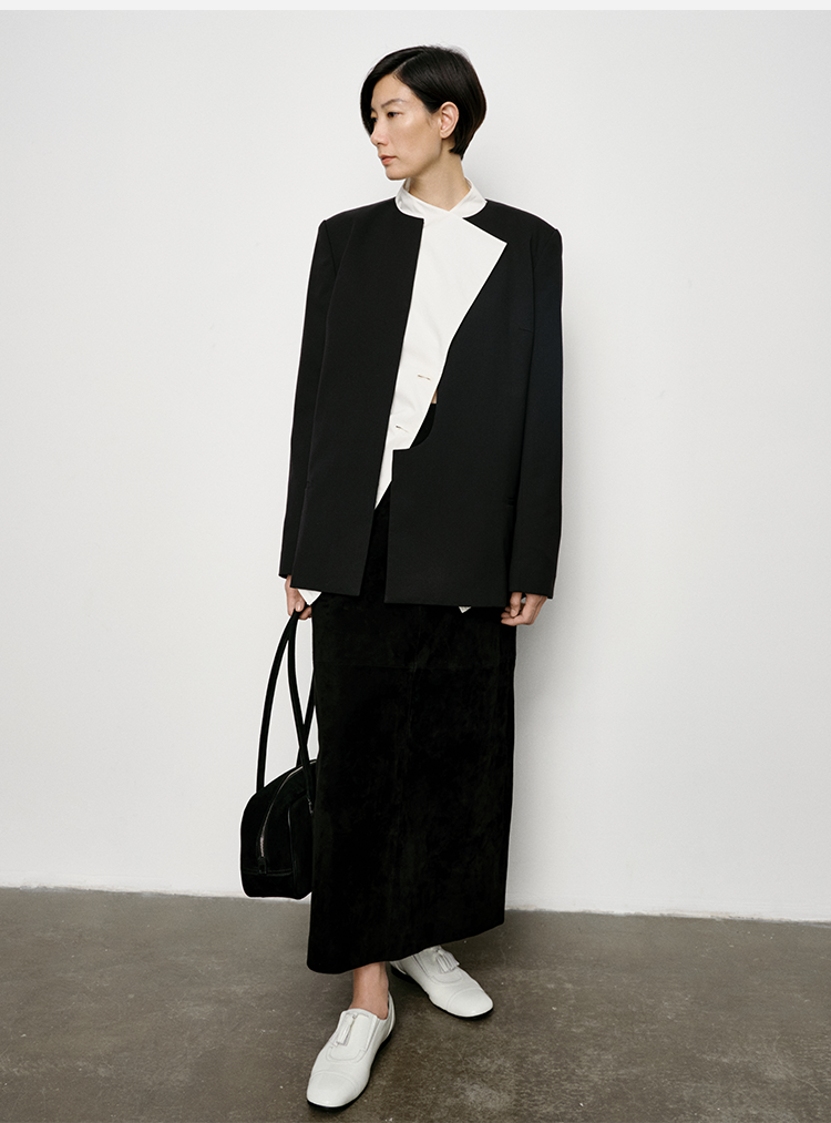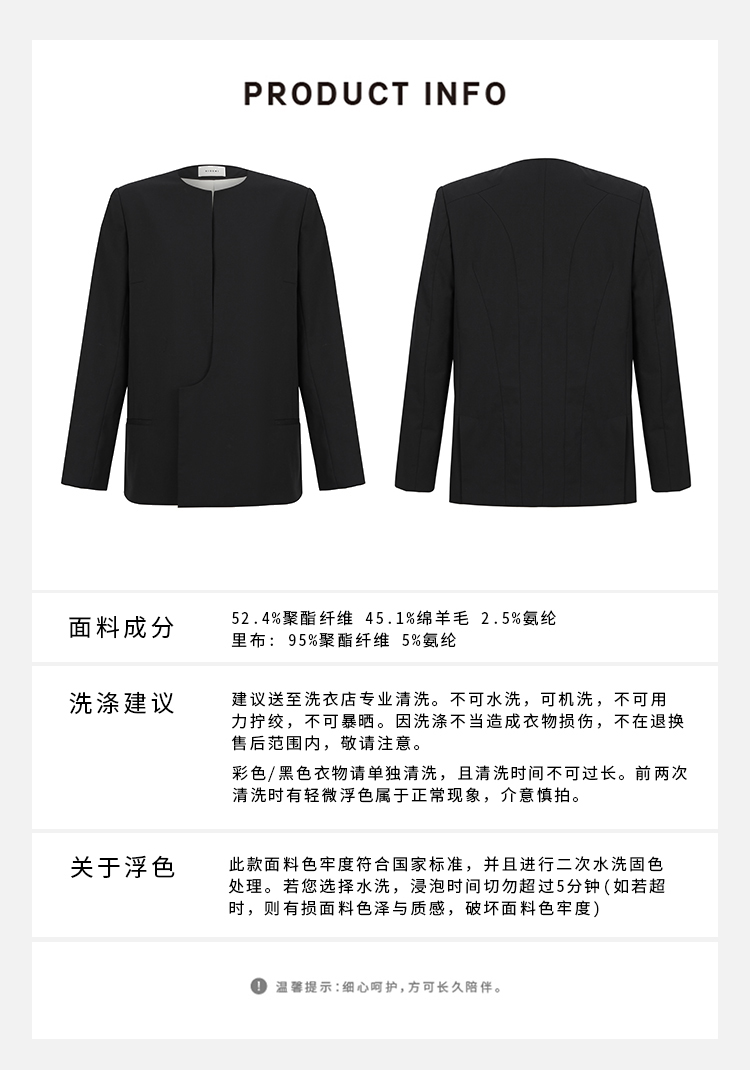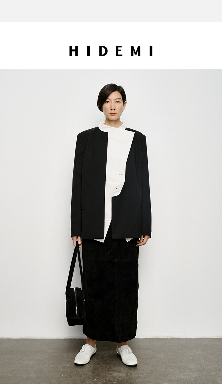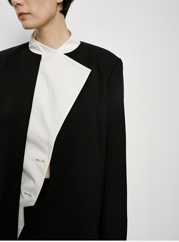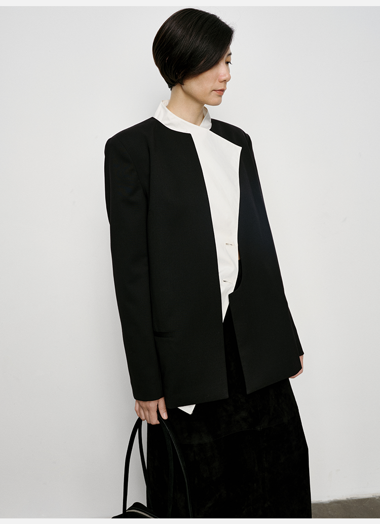 HIDEMI 可机洗羊毛极简结构感不对称门襟圆领西装西服