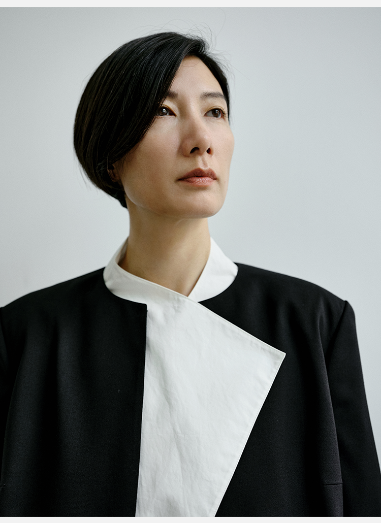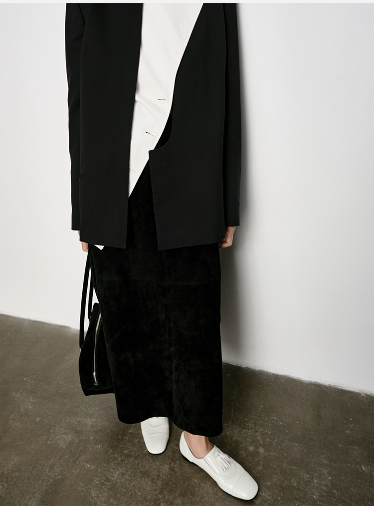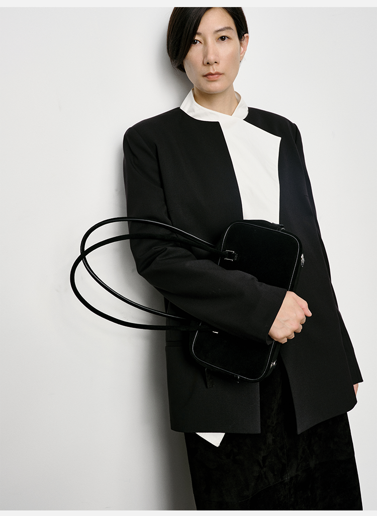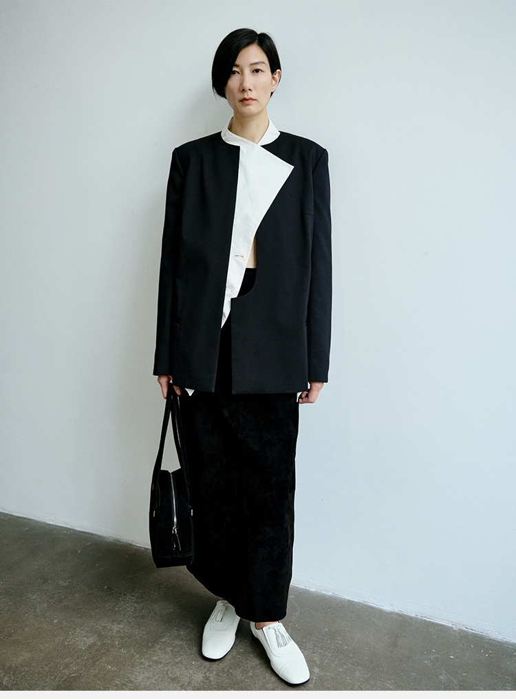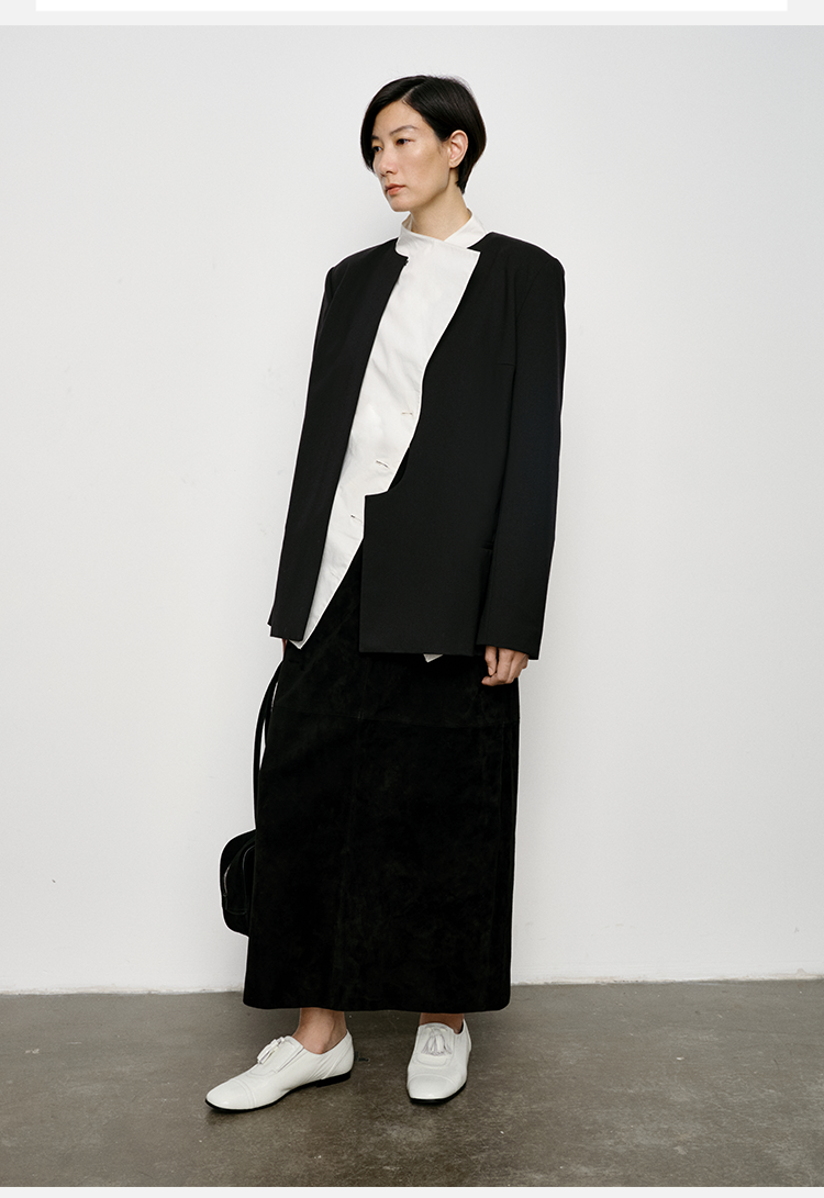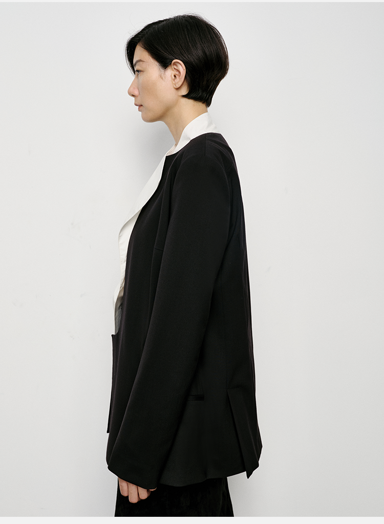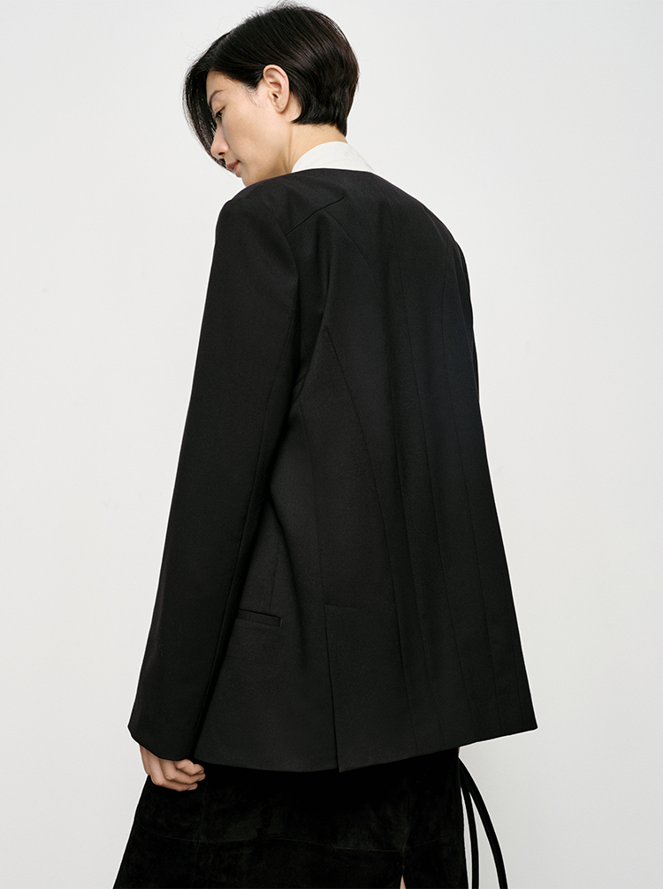 HIDEMI 可机洗羊毛极简结构感不对称门襟圆领西装西服