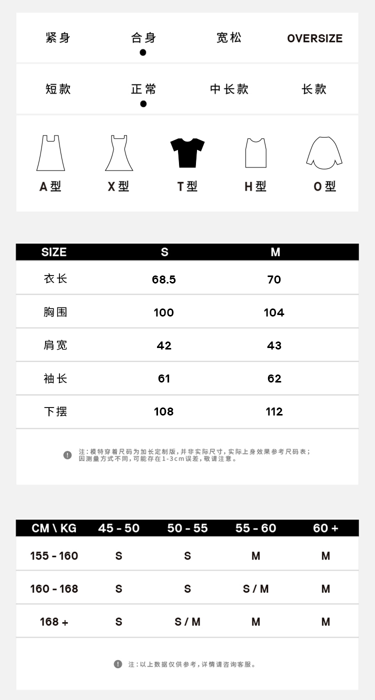 HIDEMI基础经典款有机棉宽松T恤 条纹/黑色/白色