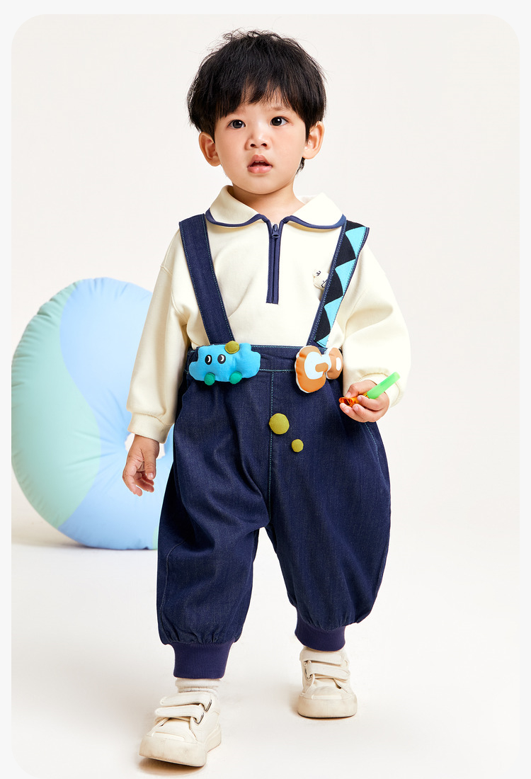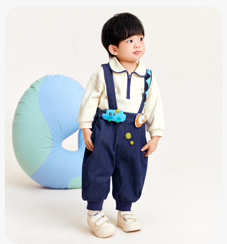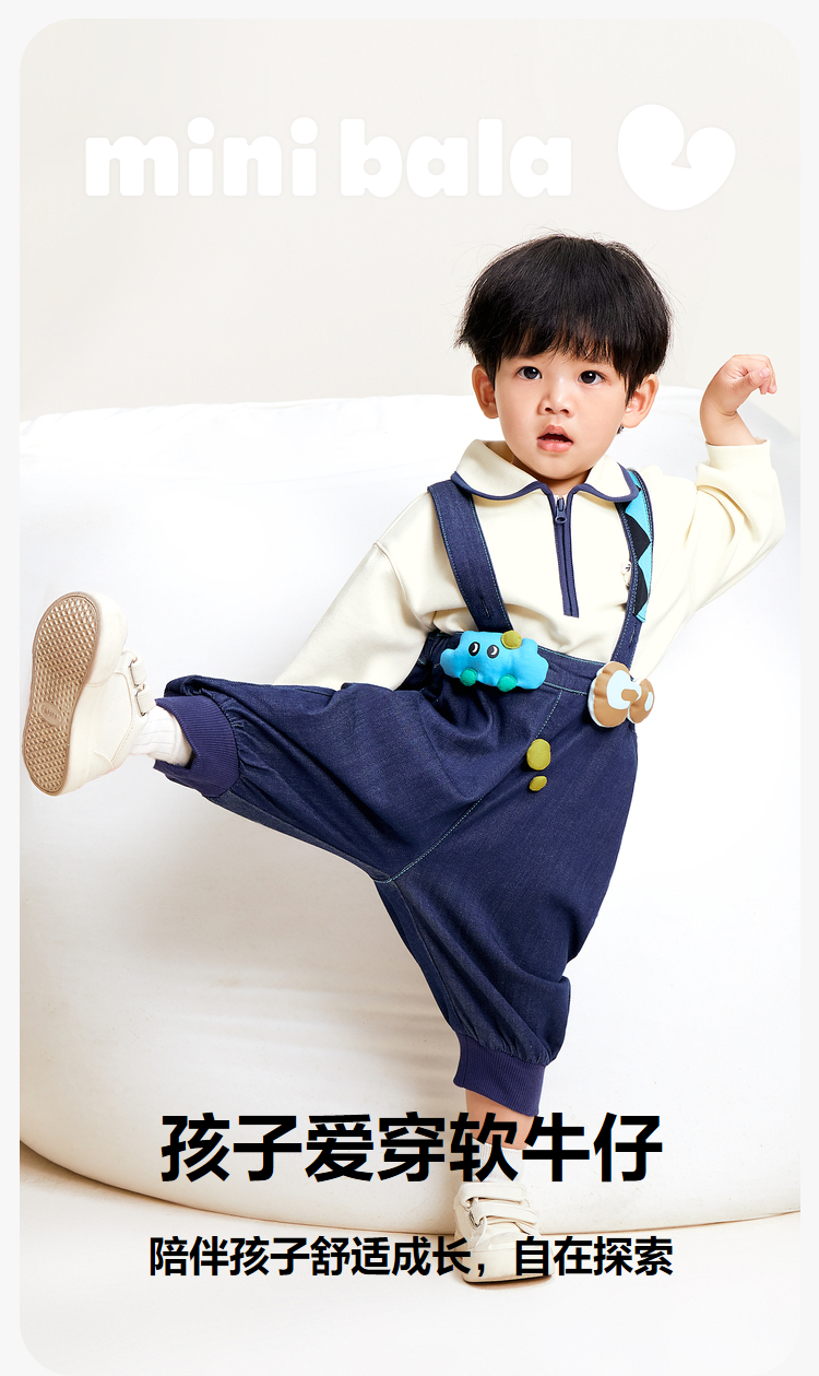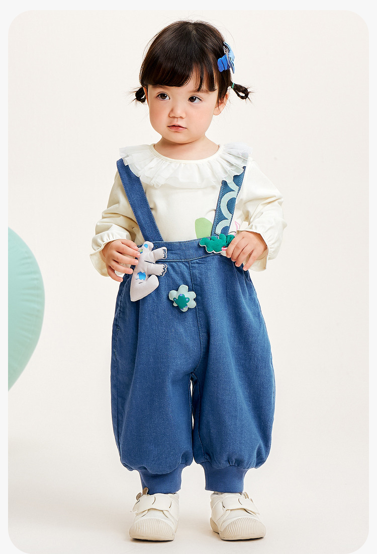 【软牛仔】迷你巴拉男童女童牛仔裤宝宝时尚背带裤灯笼裤