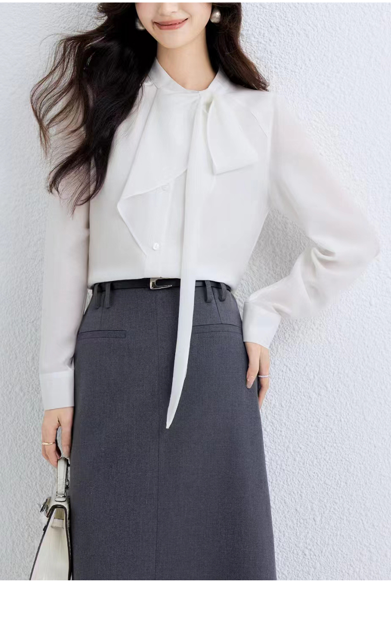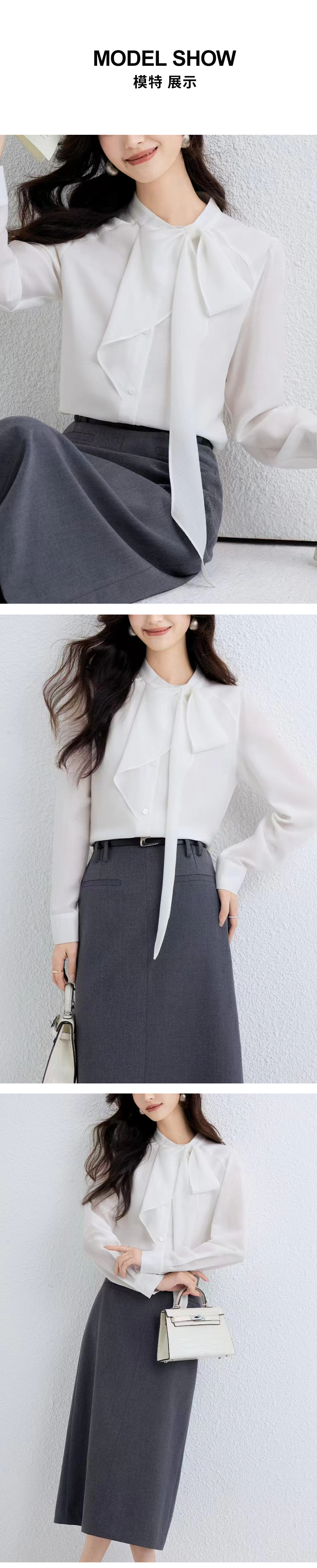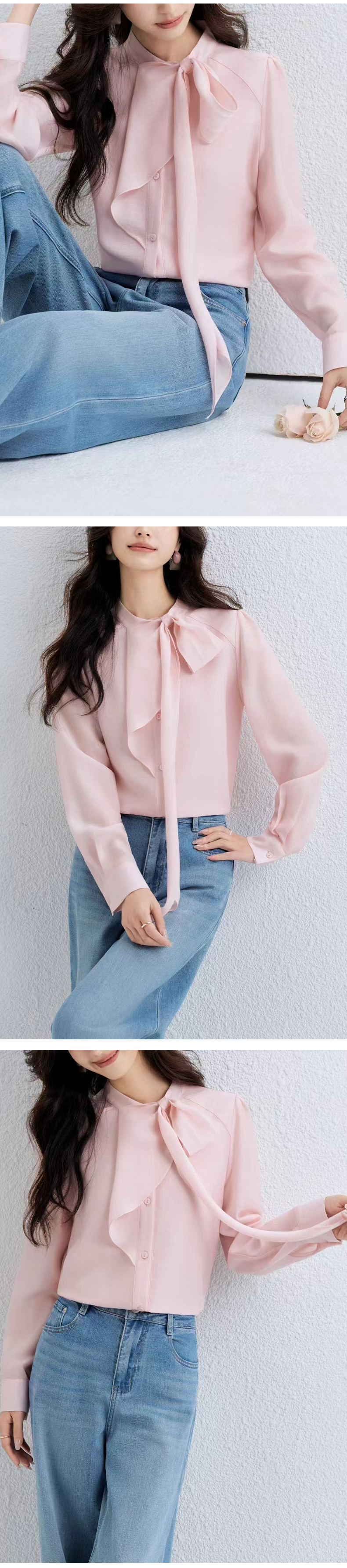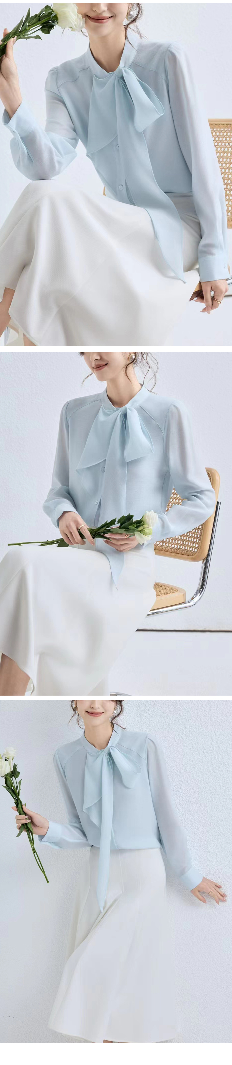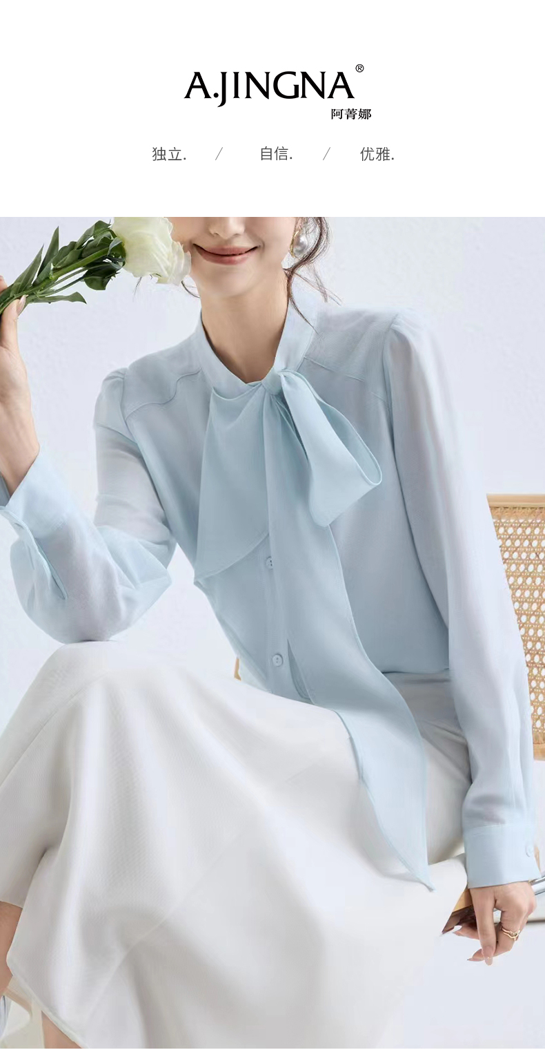 【雪纺衬衫】阿菁娜春季新款温柔感氛围雪纺衬衫灵动飘带荷叶边自带柔光滤镜解锁四季柔美穿搭F31C201001