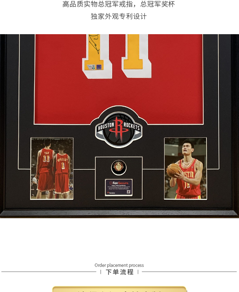 收藏系列 姚明 火箭队11号 红色球员版 亲笔签名球衣