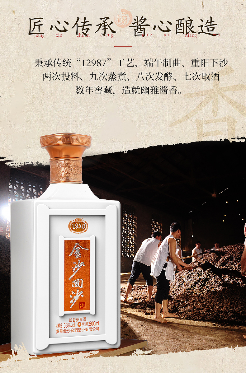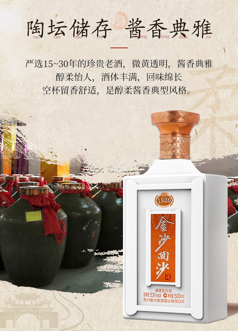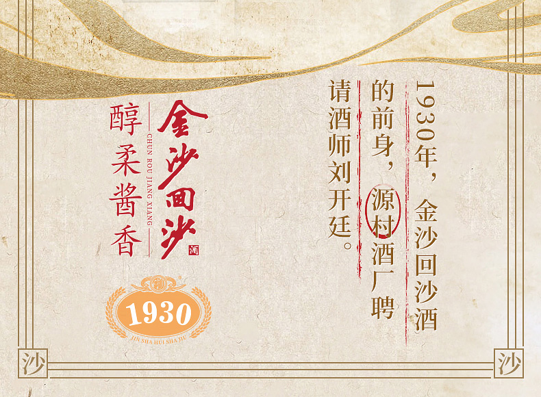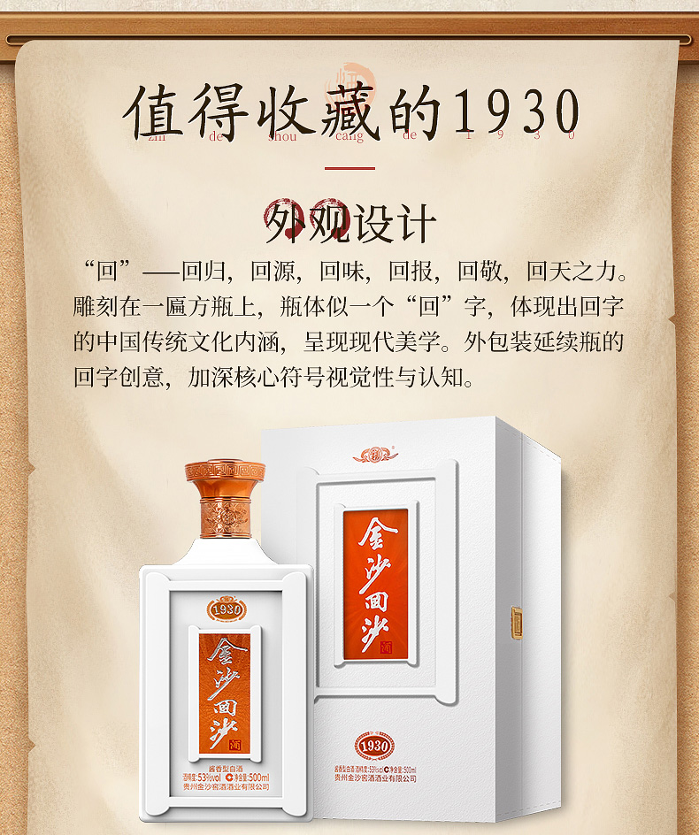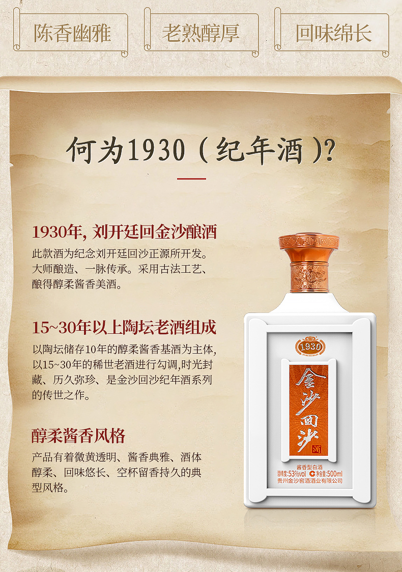 金沙回沙酒纪年酒1930 53度500ml*6瓶整箱酱香白酒