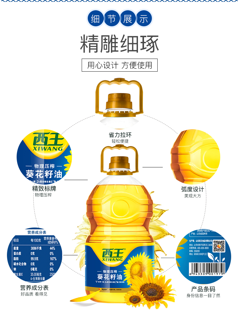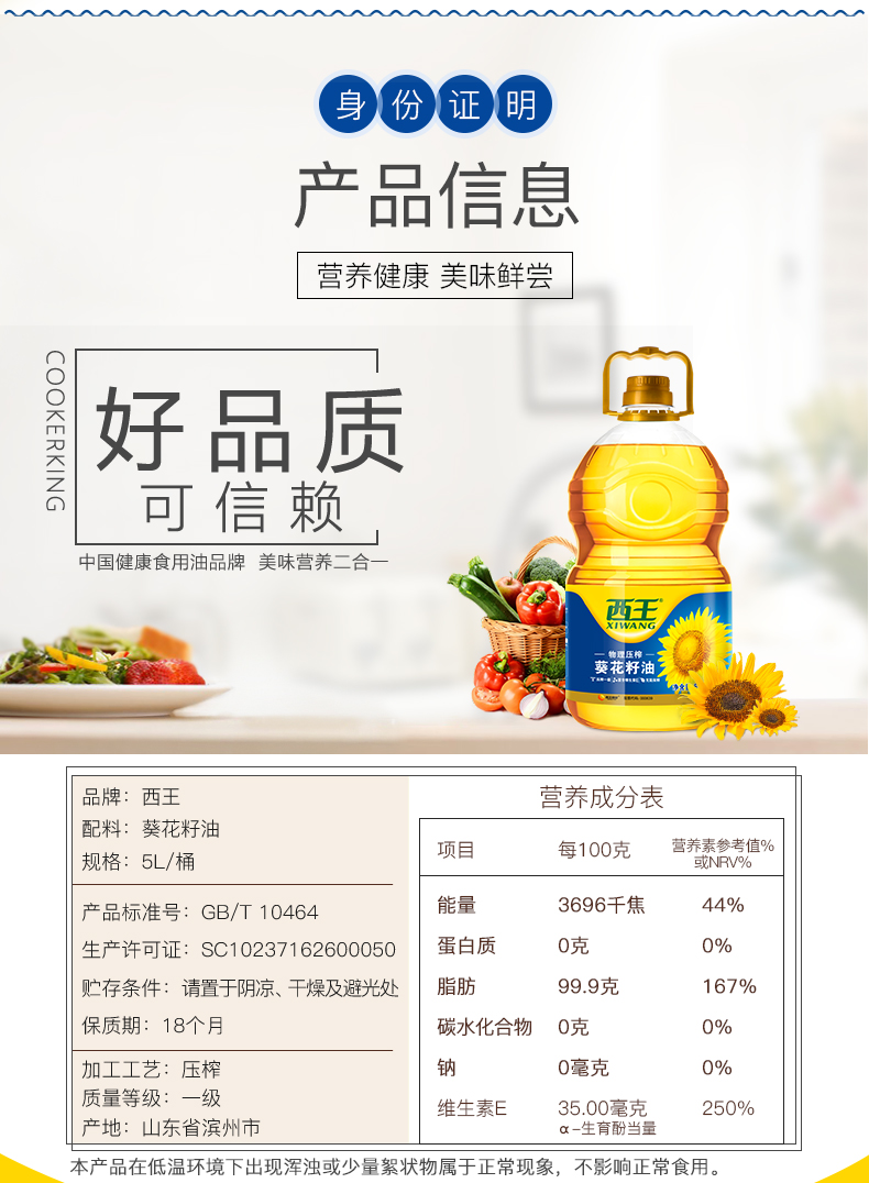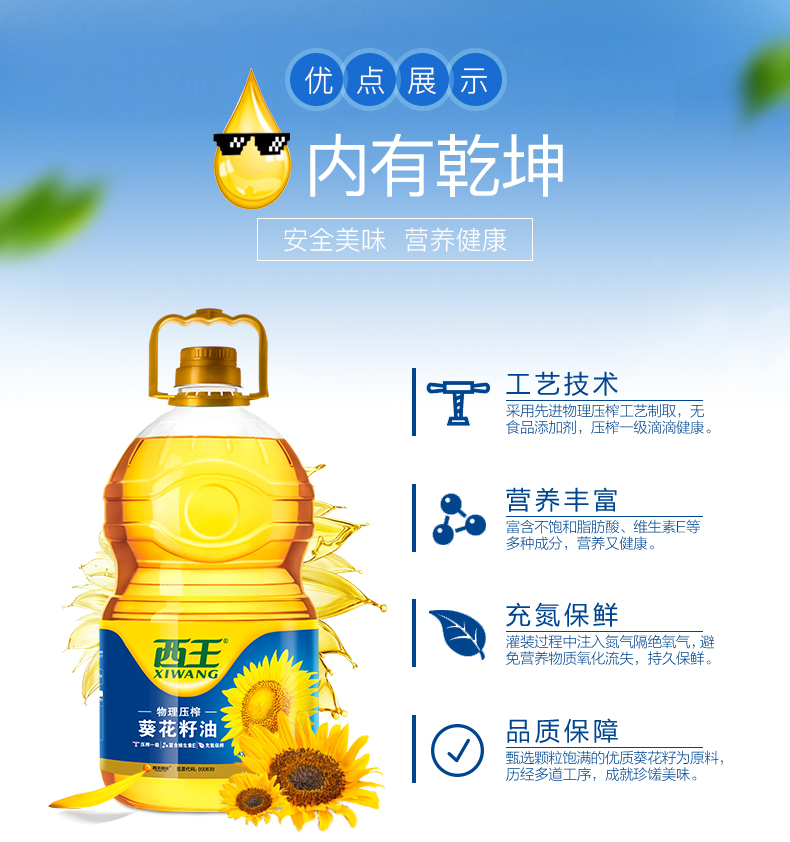 西王葵花籽油5L/桶 物理压榨一级食用油【包邮直发】