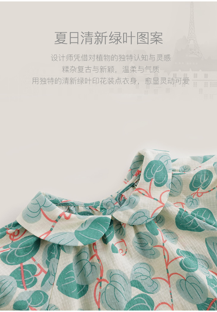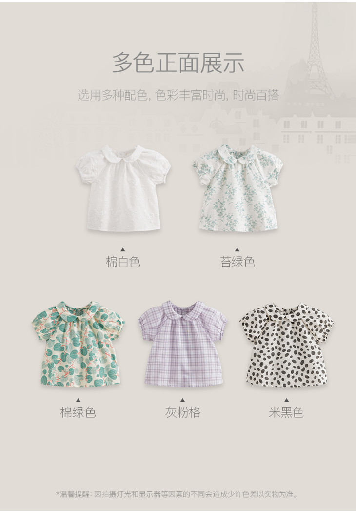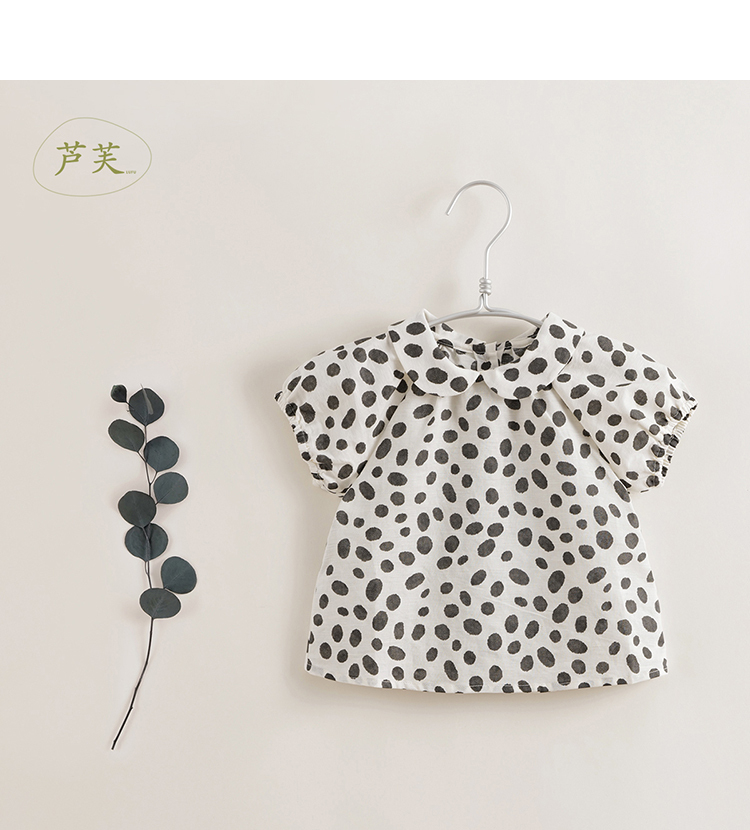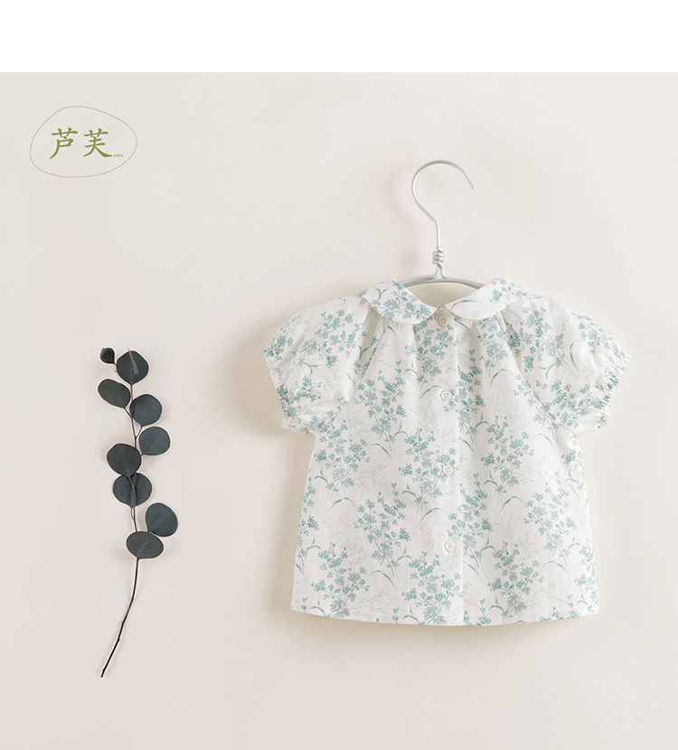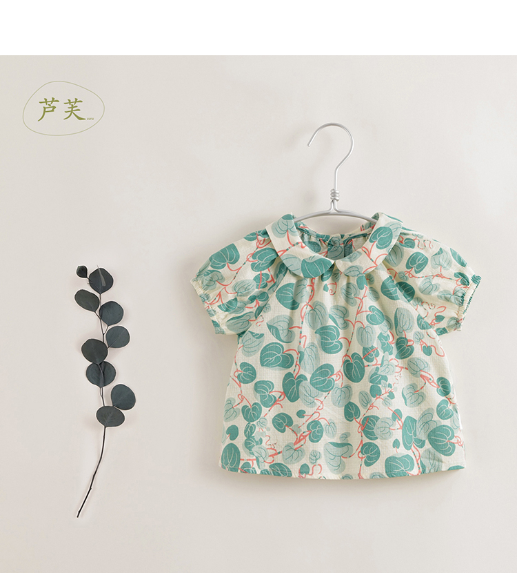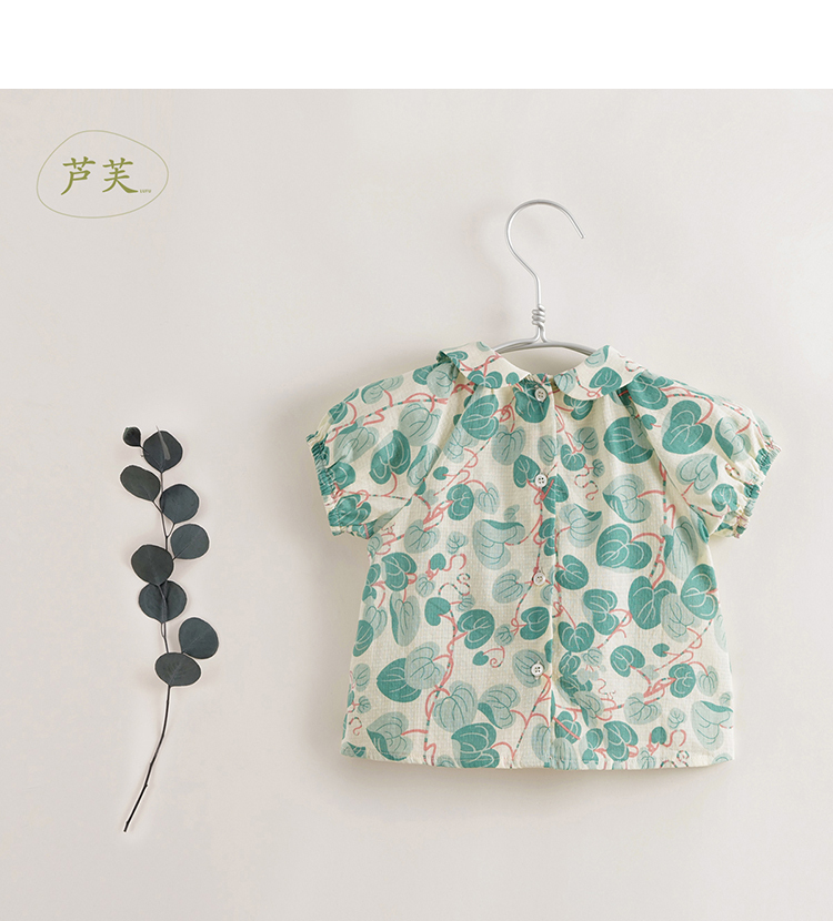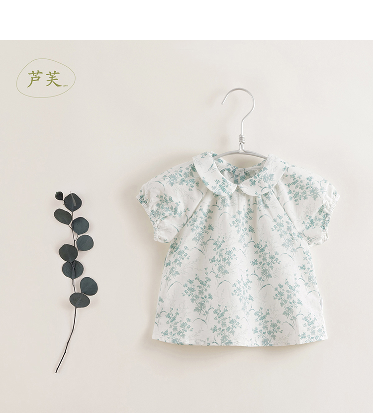 【马克珍妮 芦芙】夏装新款 女童娃娃领印花纯棉小衫230038