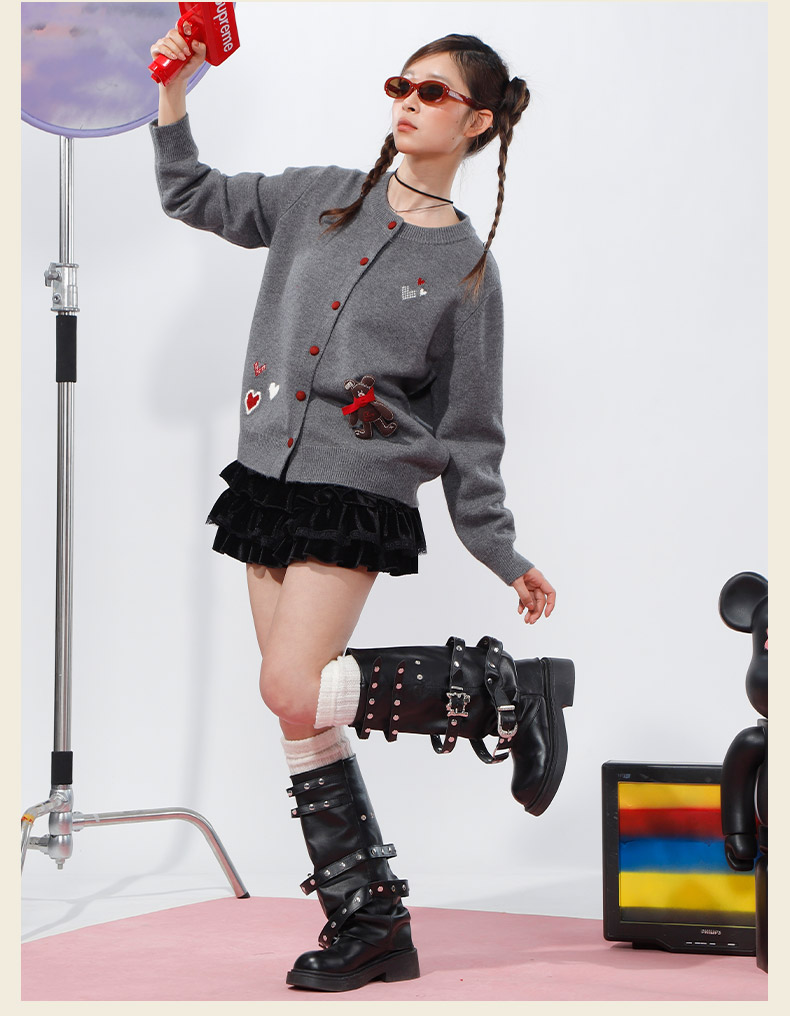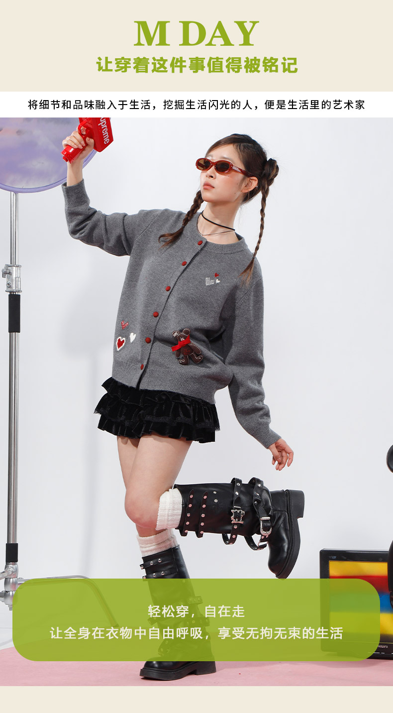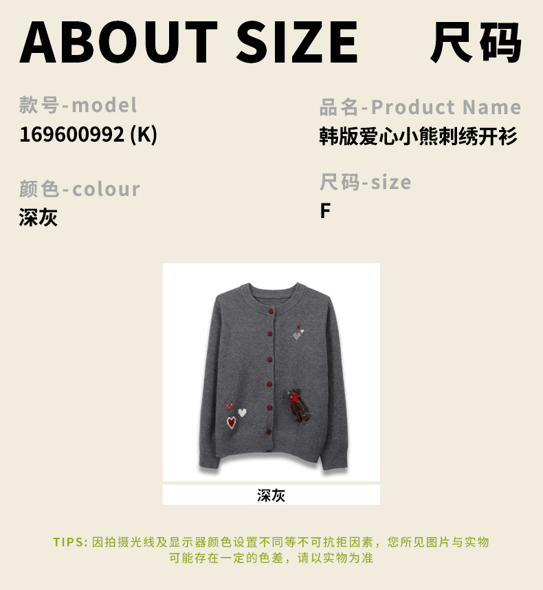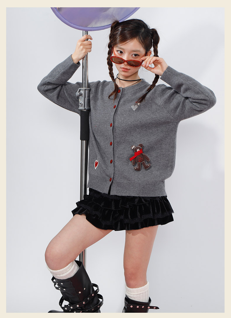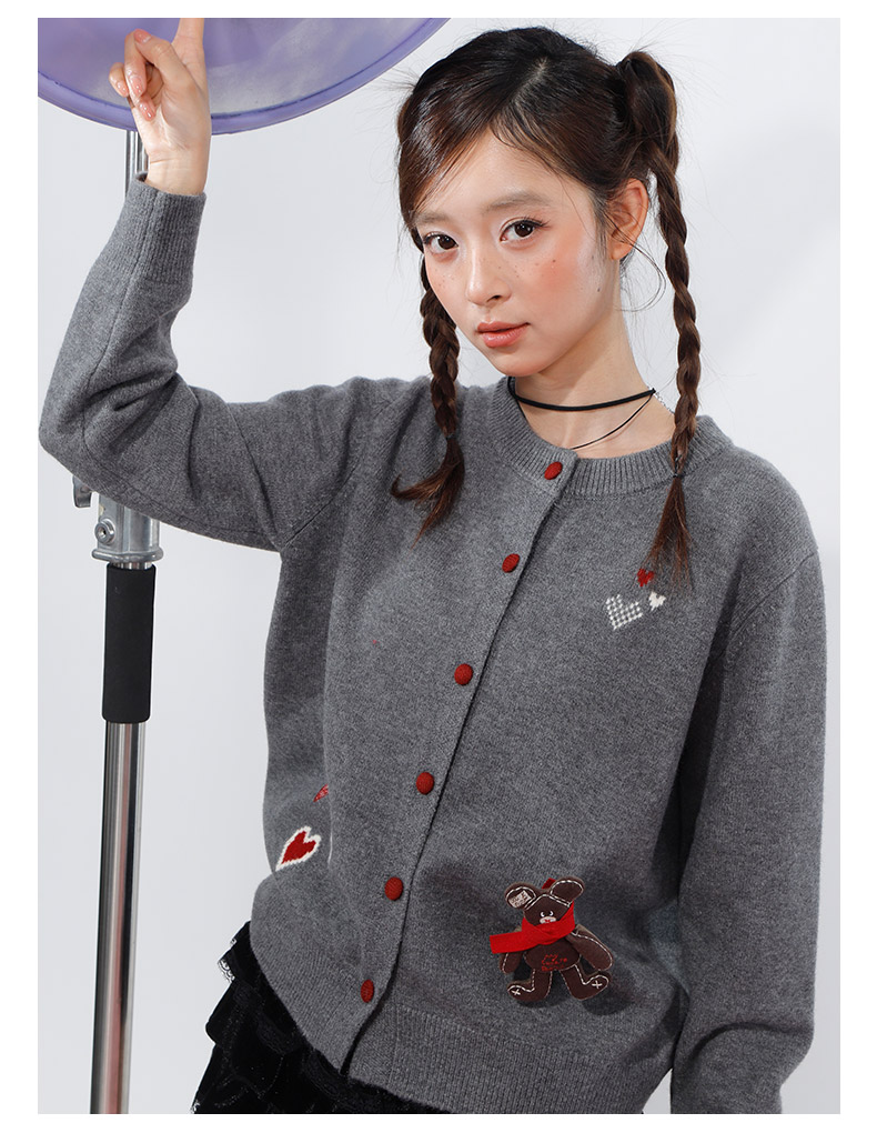 韩版爱心小熊刺绣开衫-纪念日百货门店同款169600992