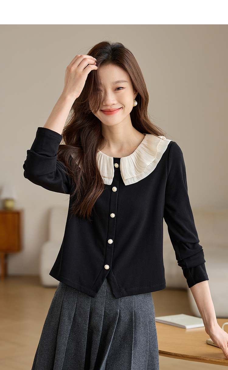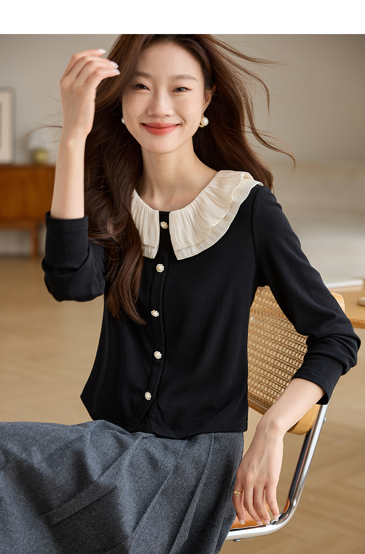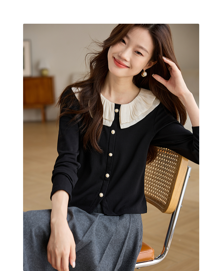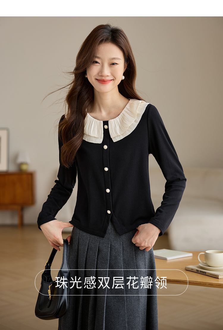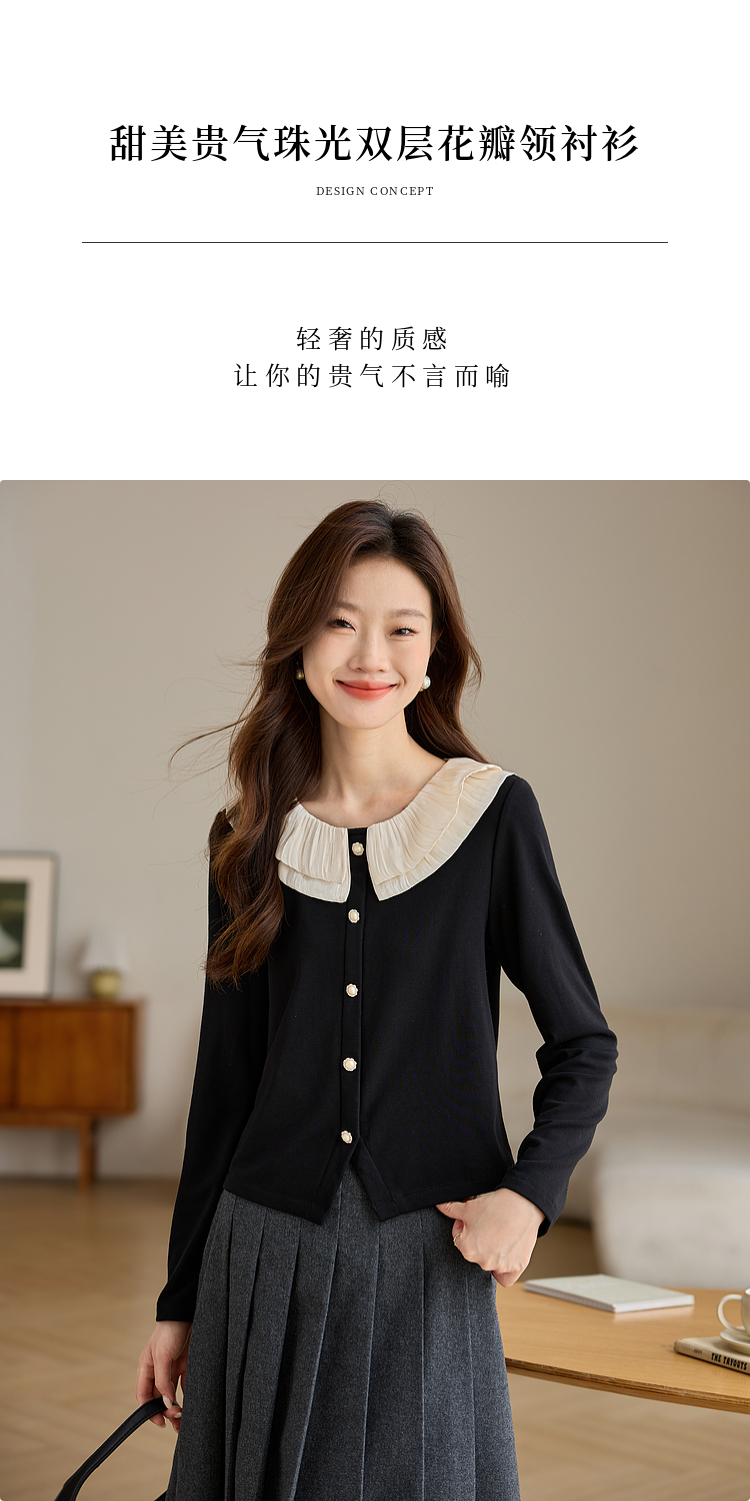 【1件75折】熙世界法式娃娃领衬衫女设计感洋气小衫别致针织上衣2025秋冬新款