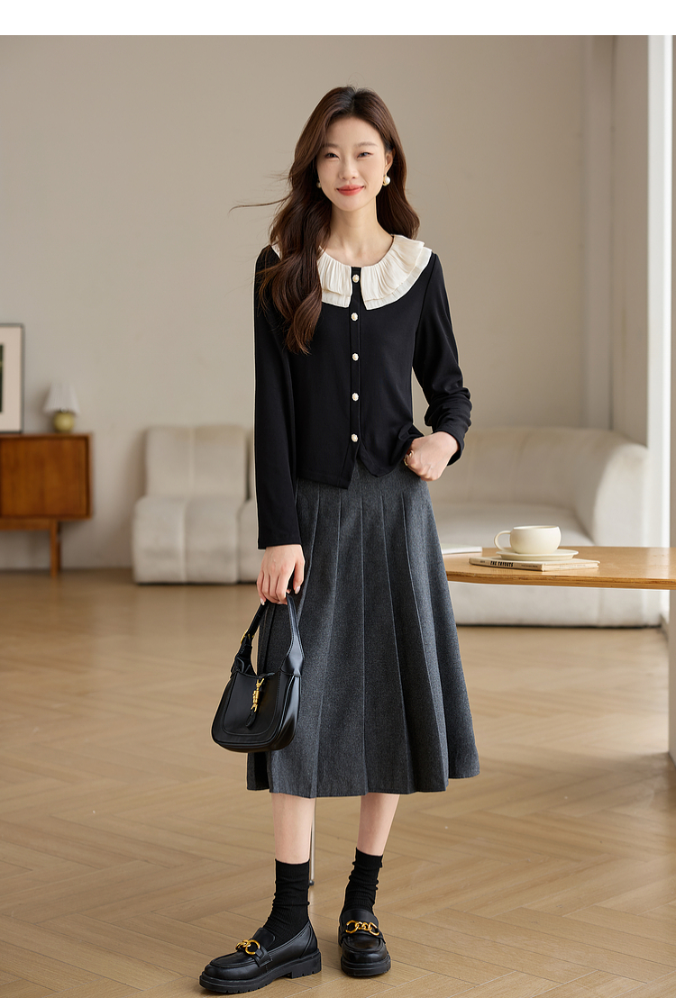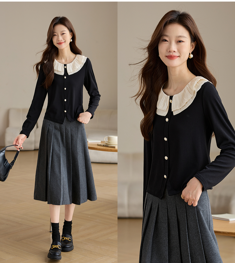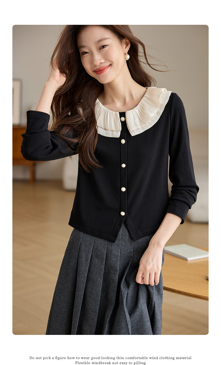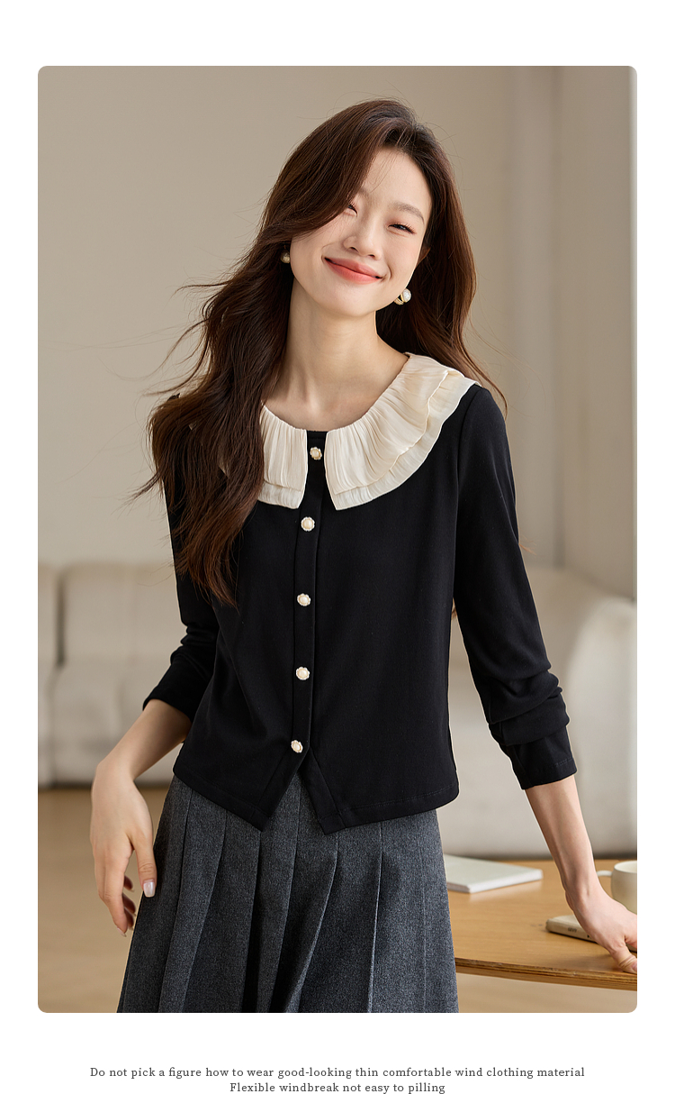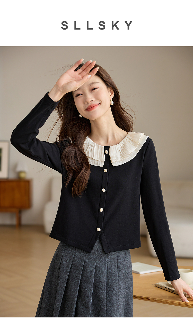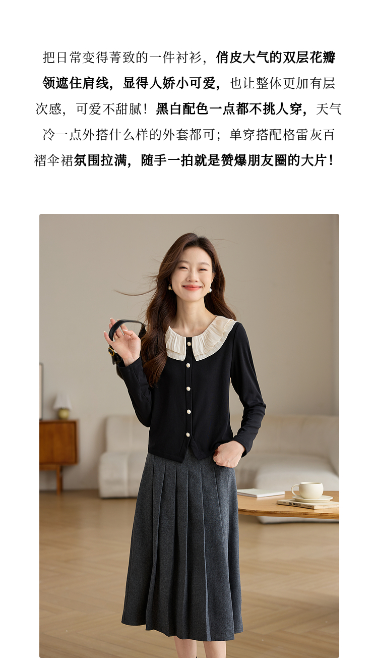 【1件75折】熙世界法式娃娃领衬衫女设计感洋气小衫别致针织上衣2025秋冬新款
