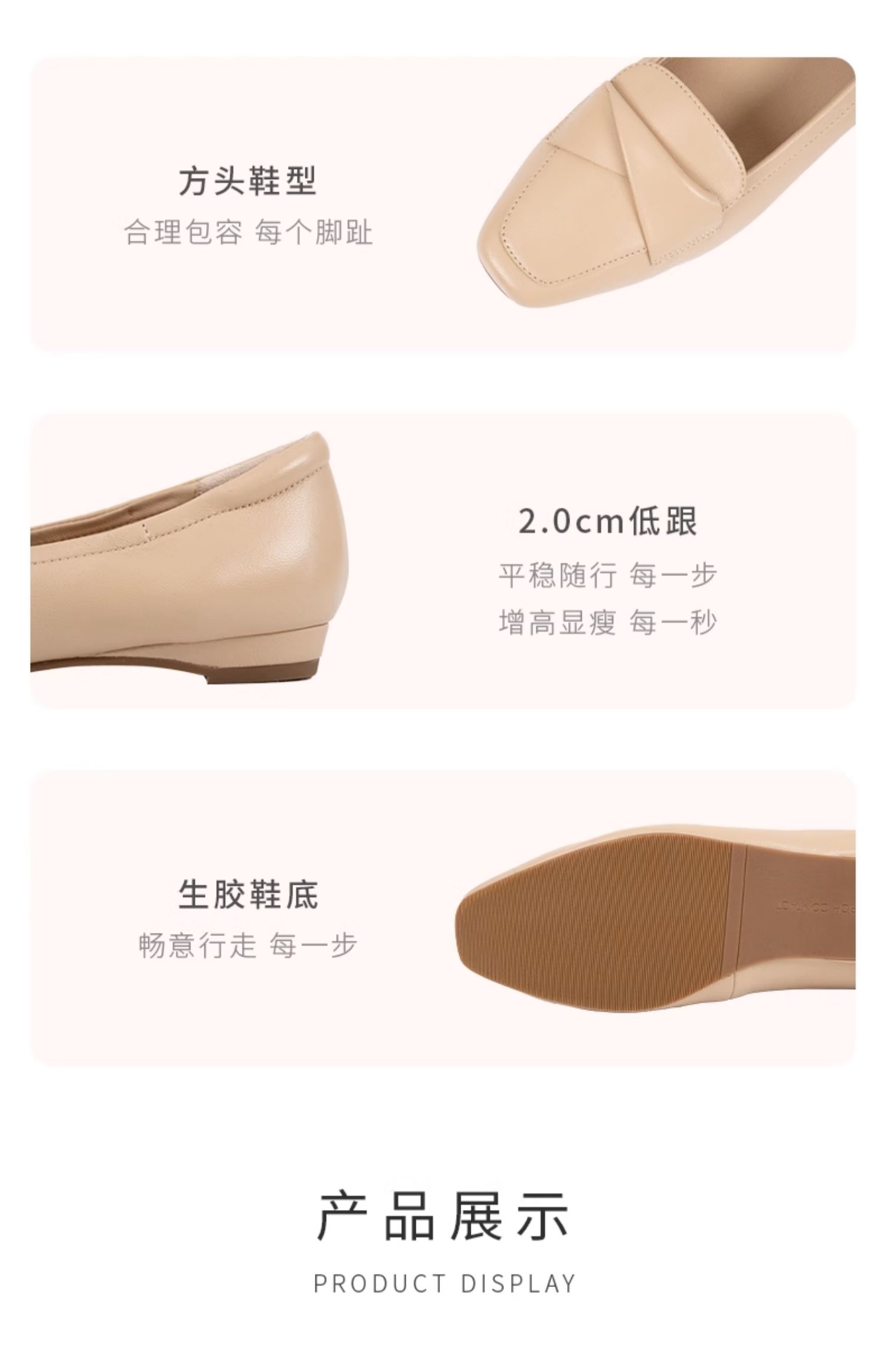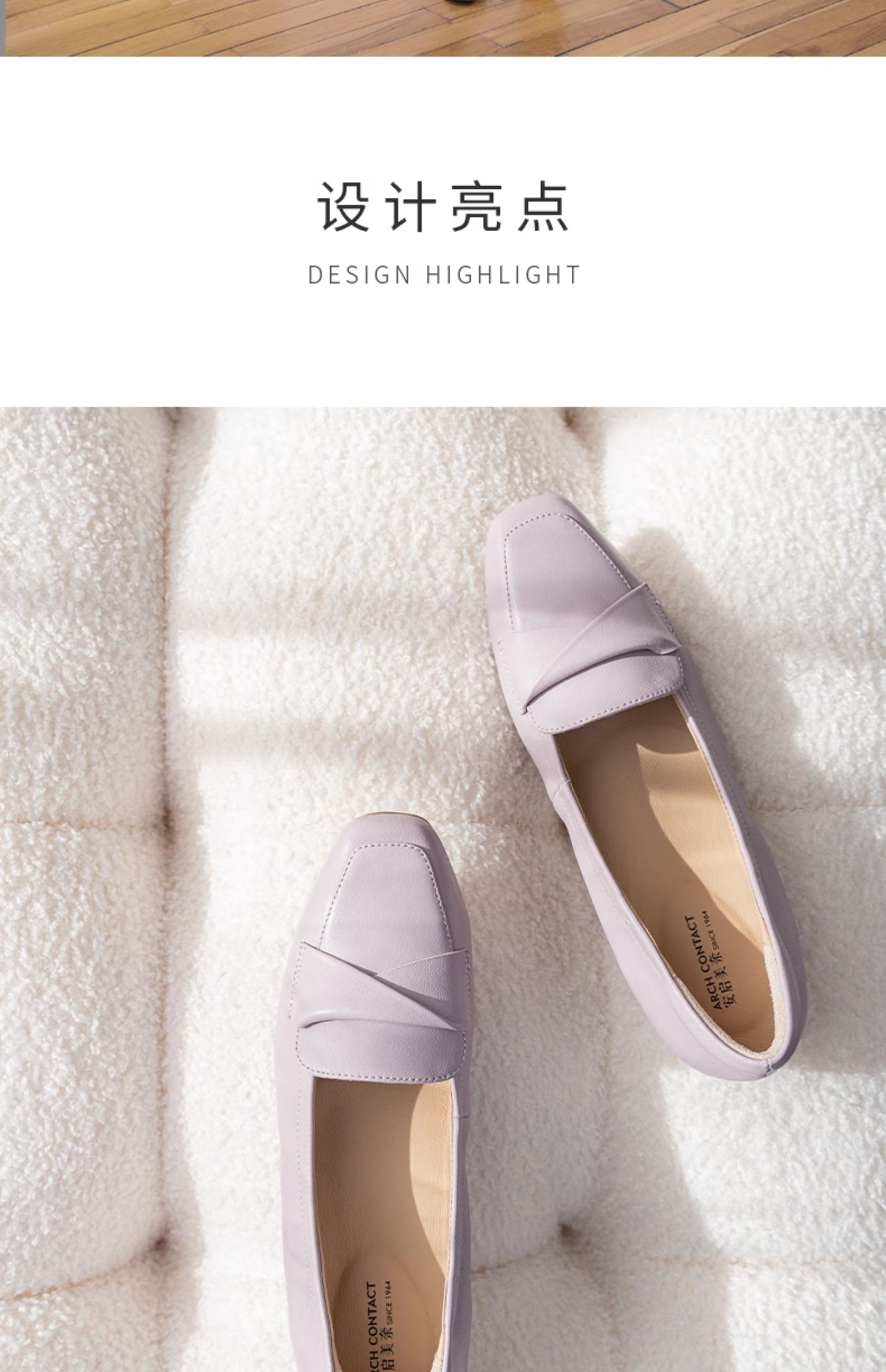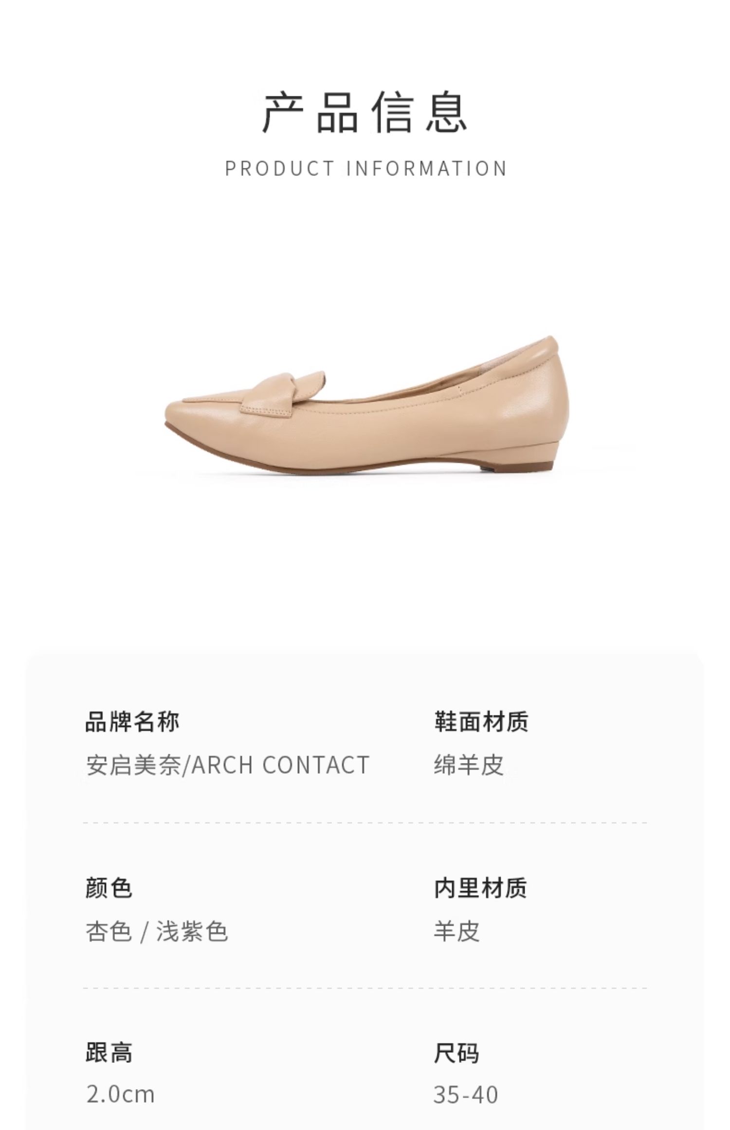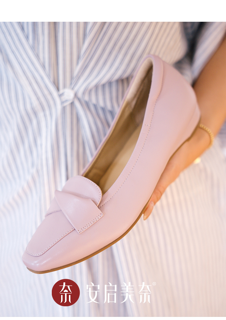 安启美奈春秋季新款小羊皮浅口乐福单鞋舒适百搭通勤休闲女鞋52912