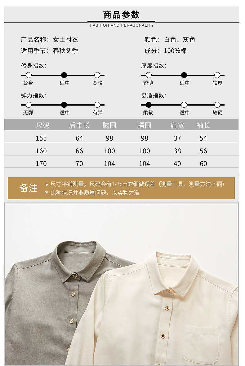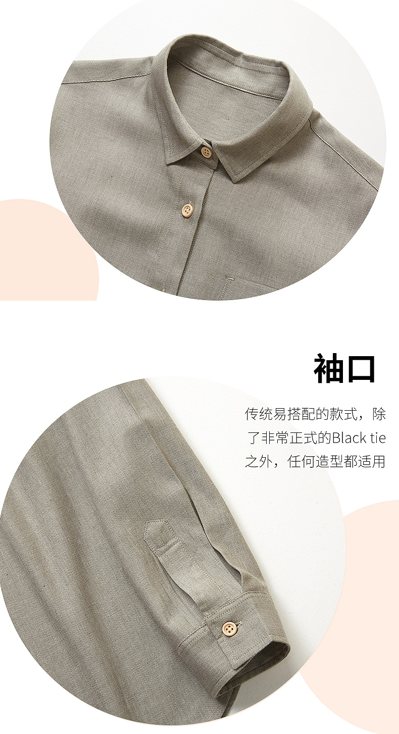 丨有机丨素道彩棉女士新款衬衣 长袖纯棉商务工作装 休闲时尚秋装上衣 女式衬衣灰色 155