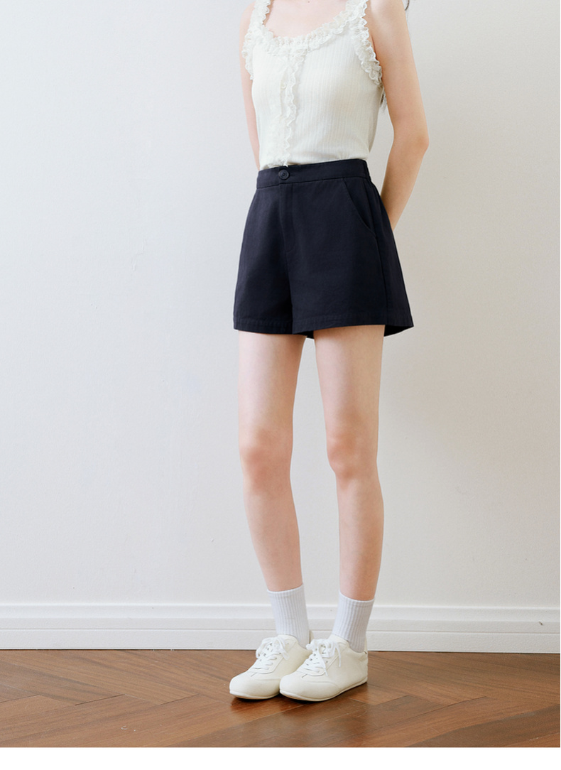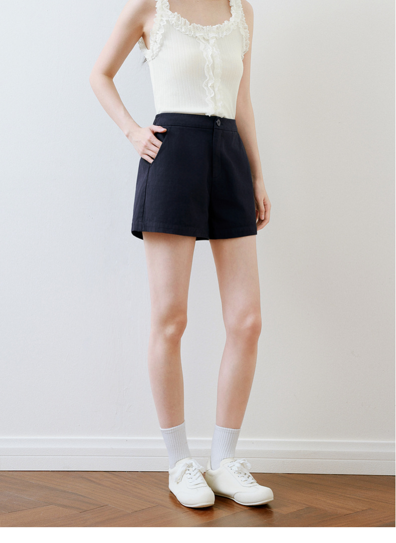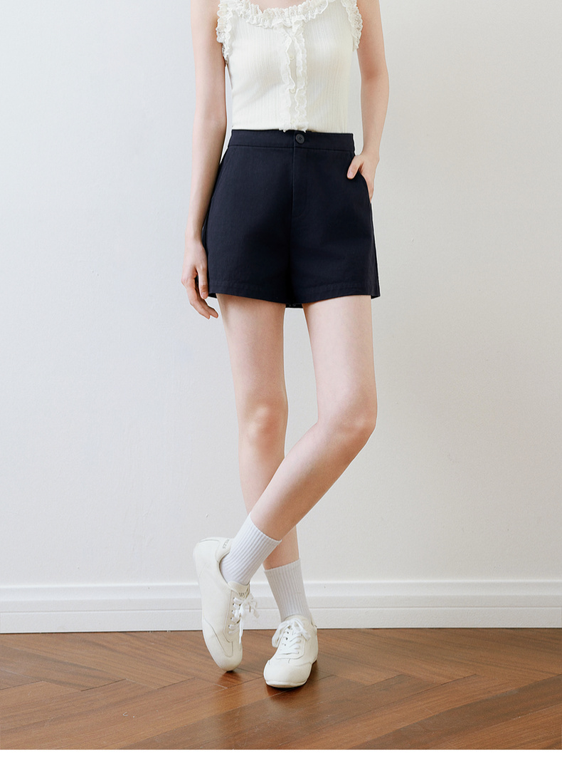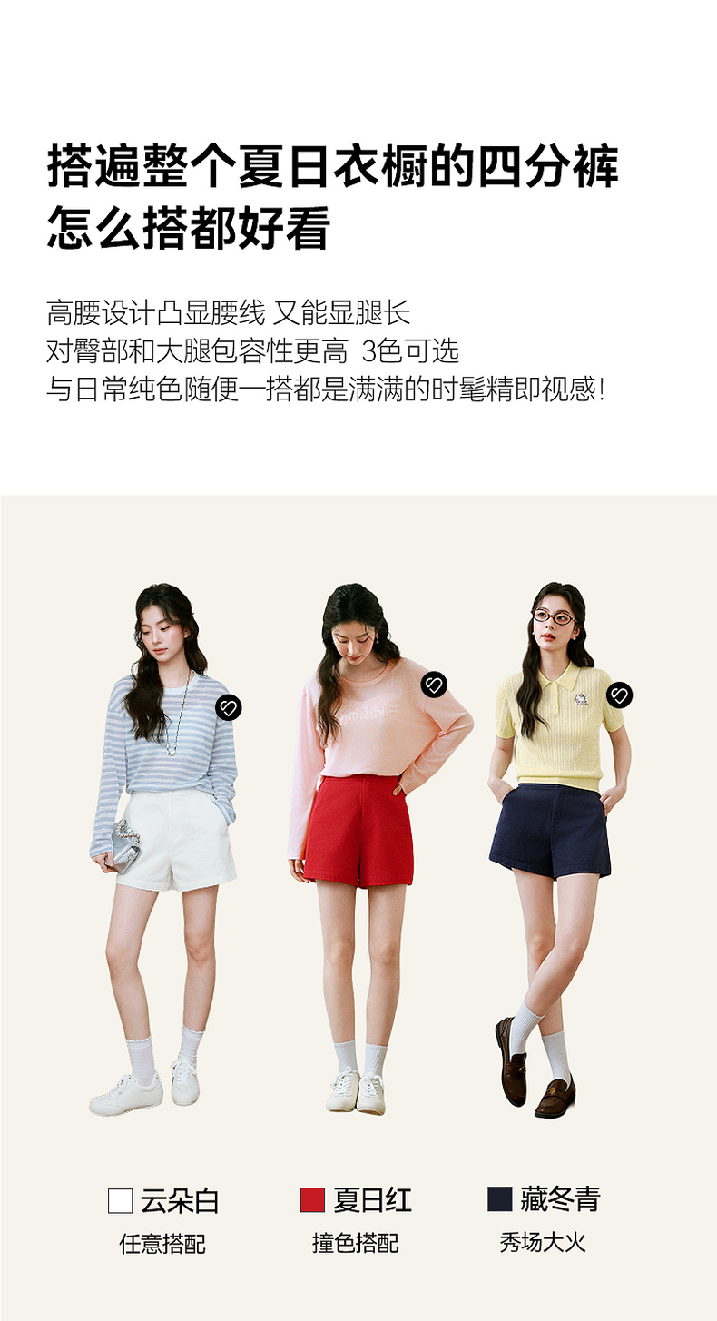 【严选】诗凡黎白色短裤2025春新款高腰显瘦时尚设计感百搭包容廓形休闲裤7G3150051