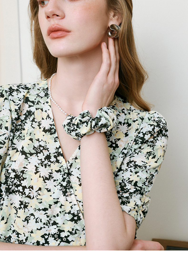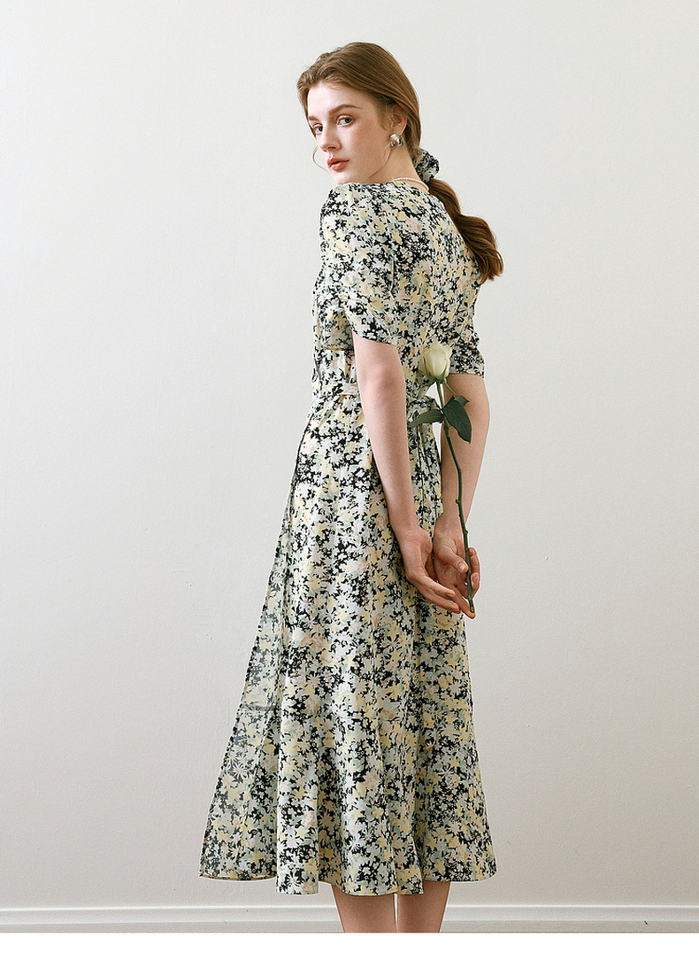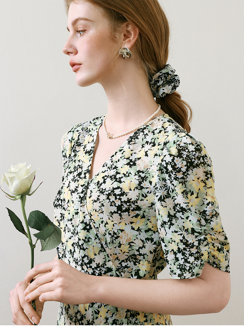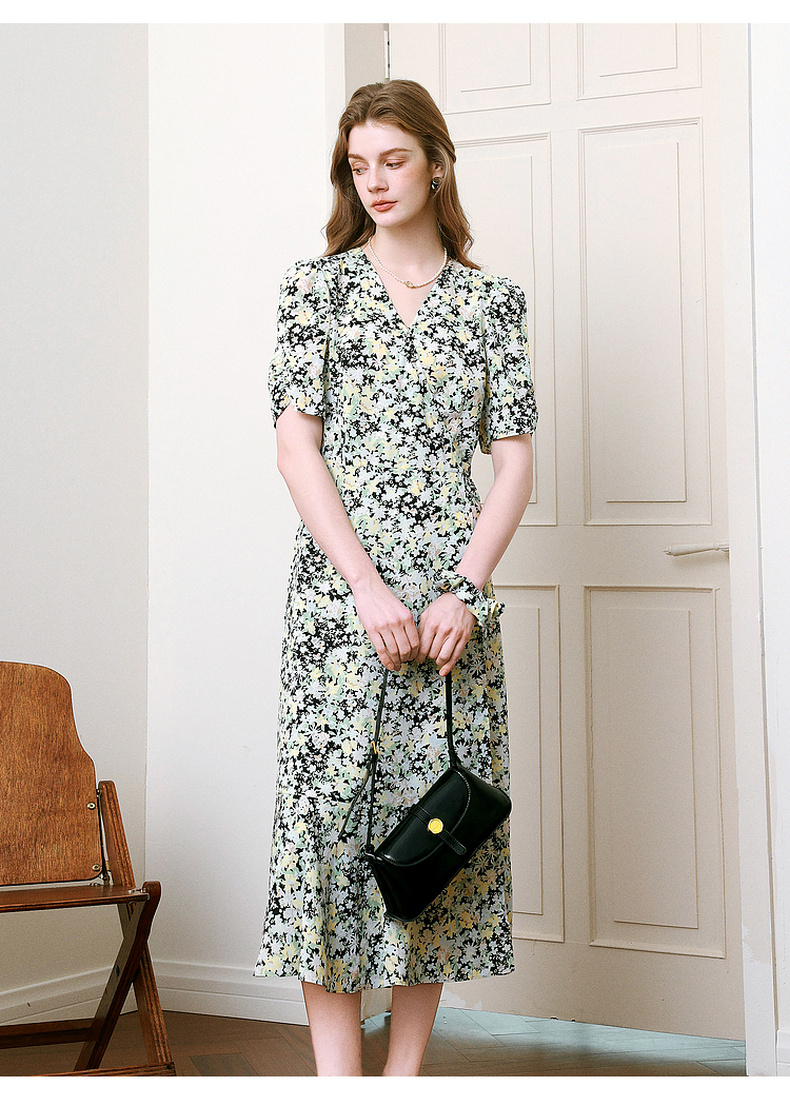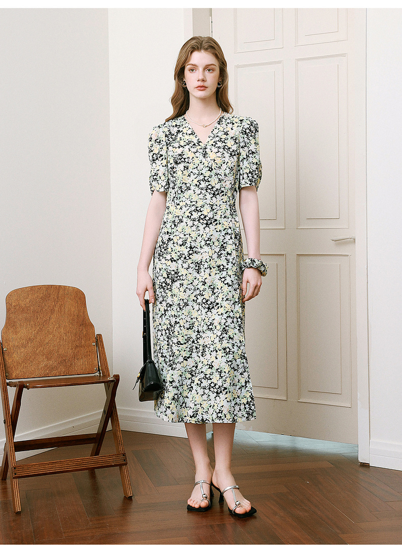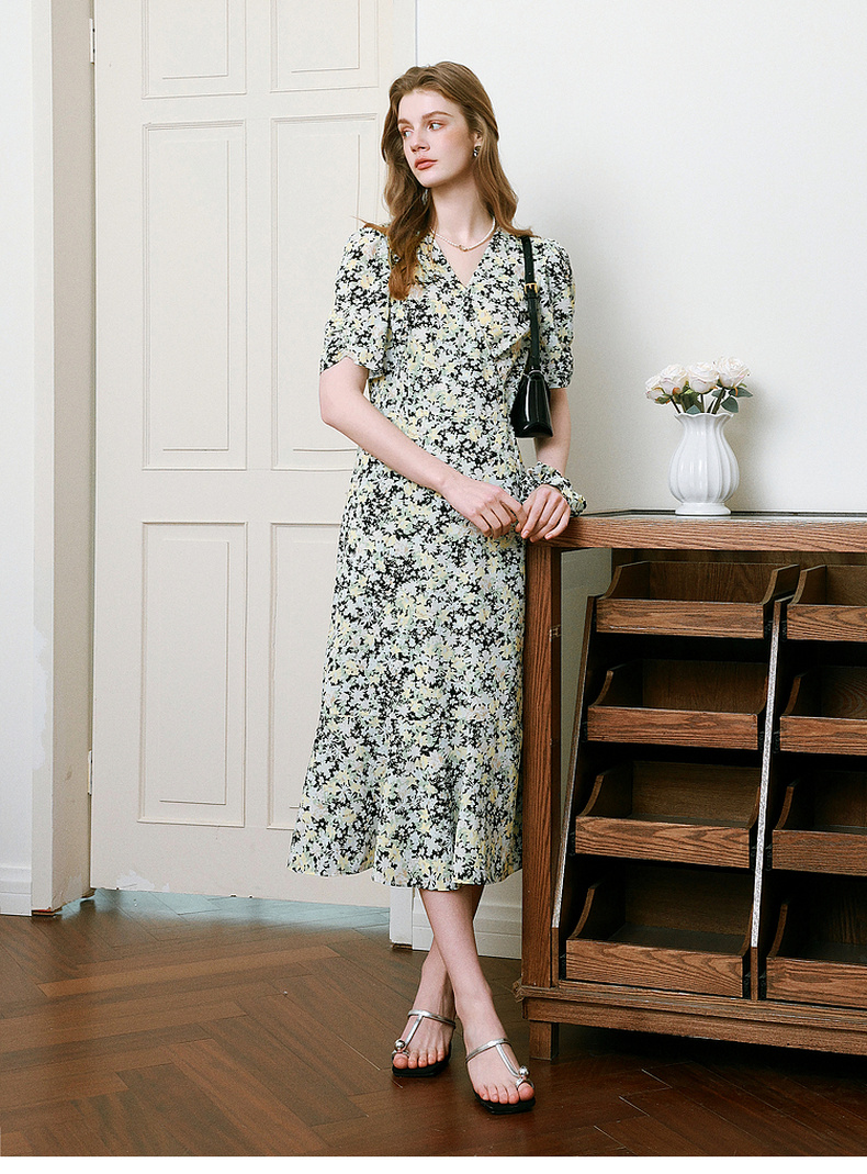 【商场同款】诗凡黎V领碎花连衣裙2025夏新款法式茶歇裙3G4190461