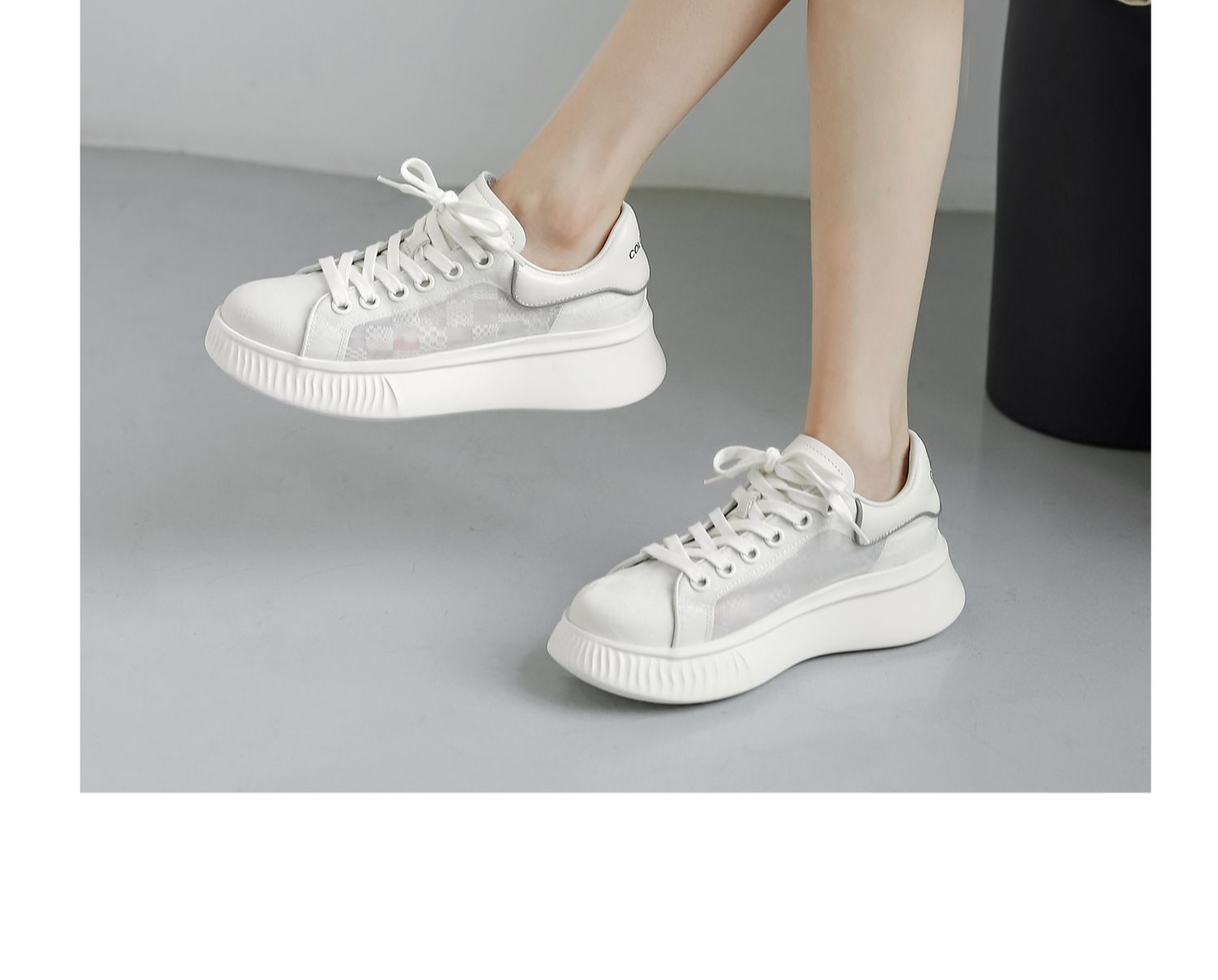 nekomomo2023年夏季新款商场同款牛皮网面超轻厚底小白鞋女板鞋女M22AM11441
