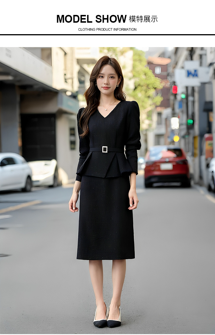 奢姿2025年春装新款大码女装气质V领连衣裙胖妹妹腰带设计裙子3223802531