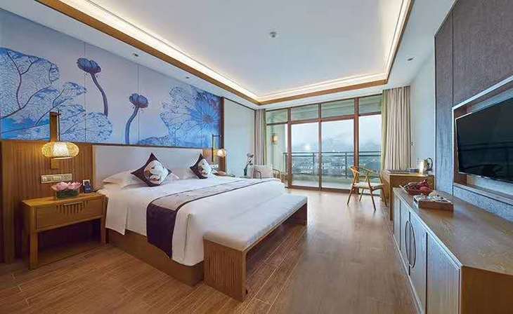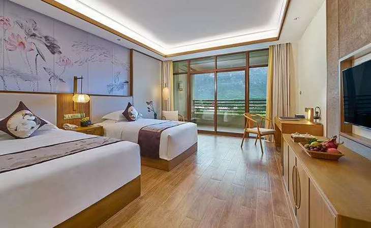 酒店拥有九华山境内的温泉资源,源自九华山山脉地下1500米处,优质天然,日出水量达1500立方米。温泉区域规划用地近7万平米,多达41个温泉养生泡池、9个VIP汤屋、4个室内温泉池,是养生、养心、养肺、养颜的绝佳胜地。