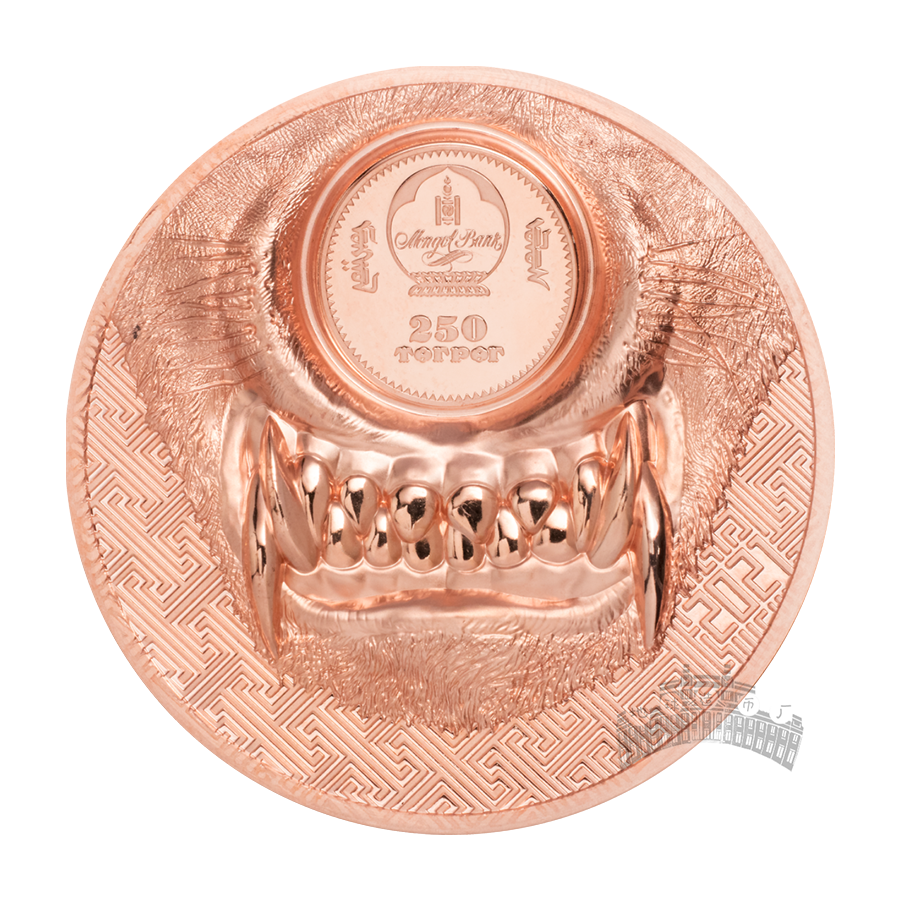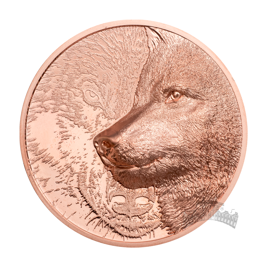 蒙古发行的双面高浮雕大自然系列的第二组——草原狼纪念币。
