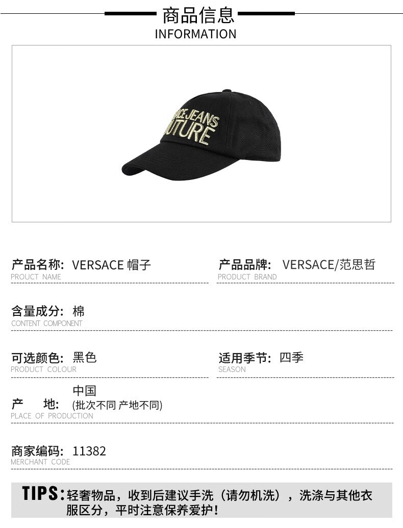 VERSACE 范思哲鸭舌帽遮阳帽大logo字母百搭帽子可调节帽围