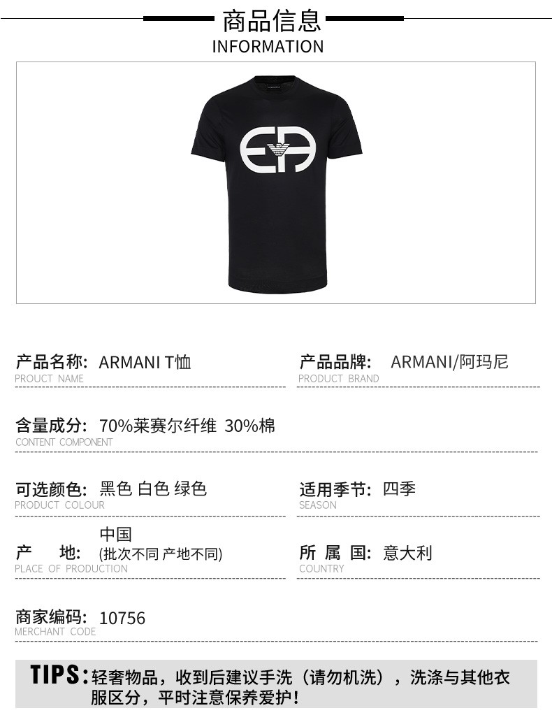 阿玛尼(ARMANI) 时尚潮流休闲男士短袖T恤 10756