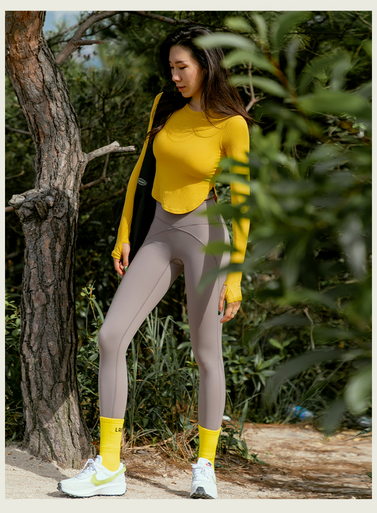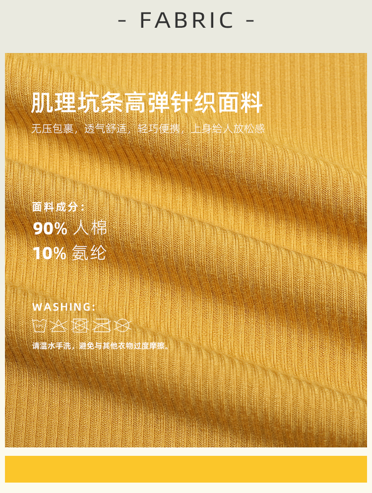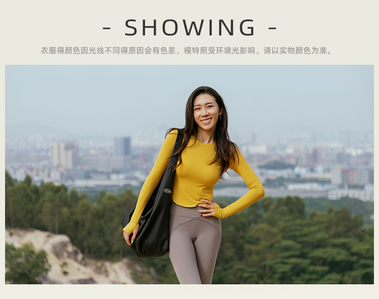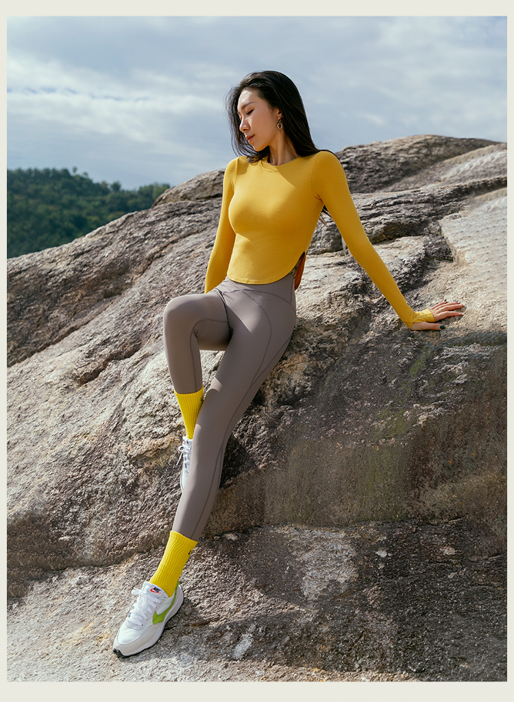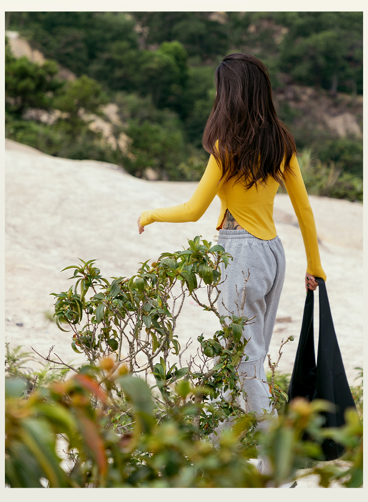 【肌理高弹针织面料】紧身圆弧下摆带手袖长袖上衣-带胸垫