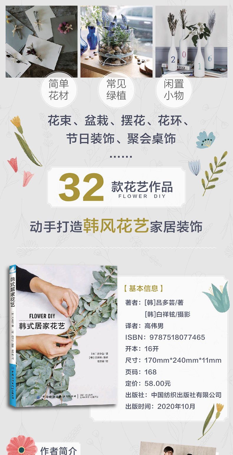 韩式居家花艺 吕多芸 白祥铉 花艺设计书籍 简单花艺装饰品制作技法 打造韩风家居氛围 家居花艺设计 家居装饰方法技巧 插花入门书