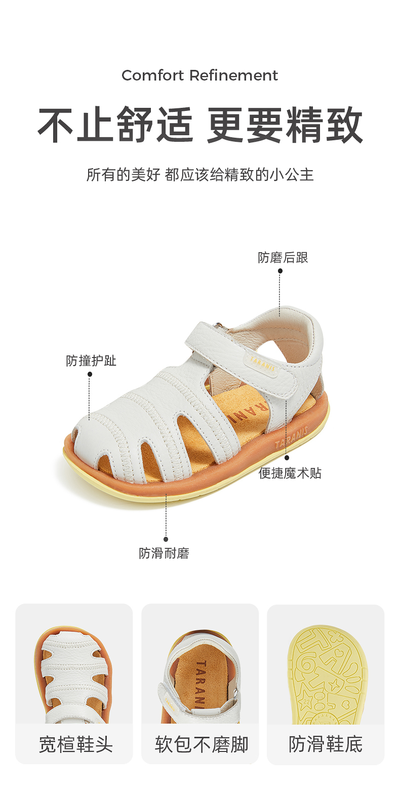 泰兰尼斯2023夏季新款女童凉鞋防滑软底儿童鞋包头防踢镂空公主鞋 T17X3B2740