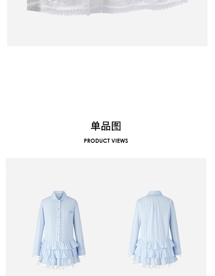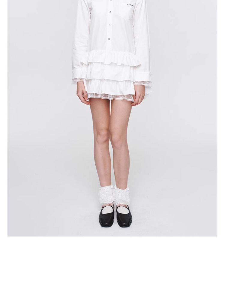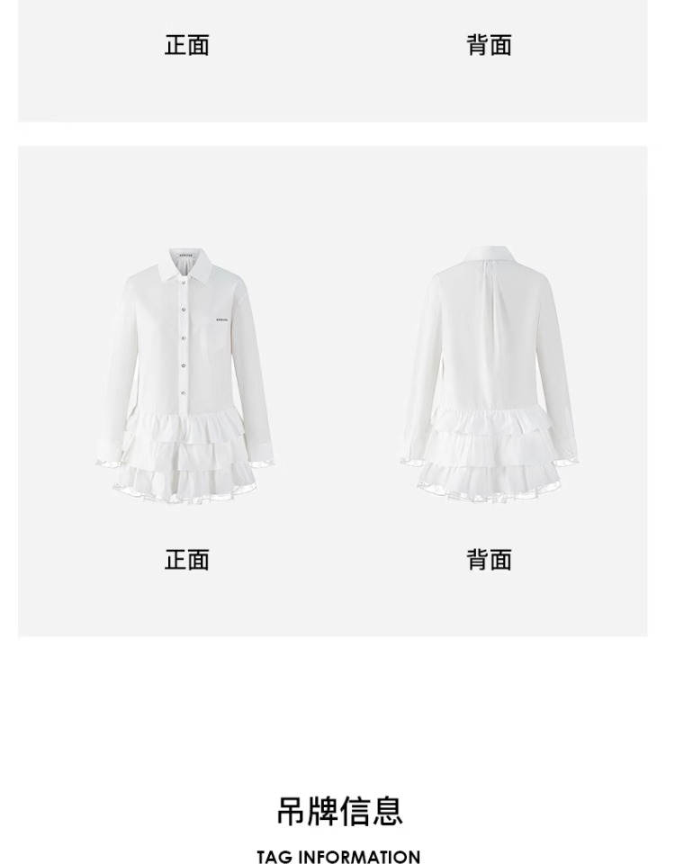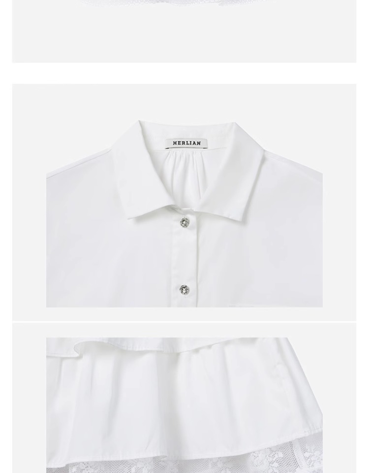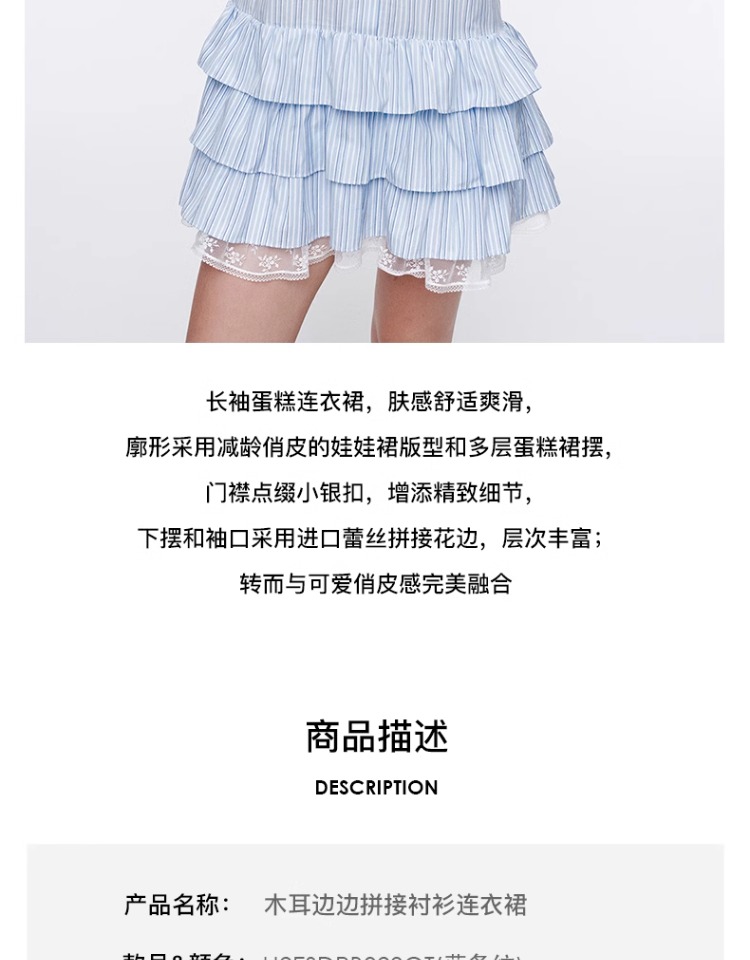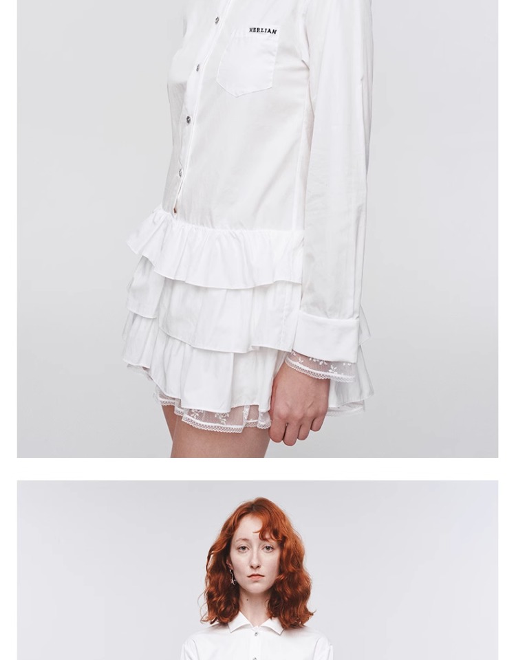 HERLIAN 2025年春季女士木耳边边拼接衬衫连衣裙
