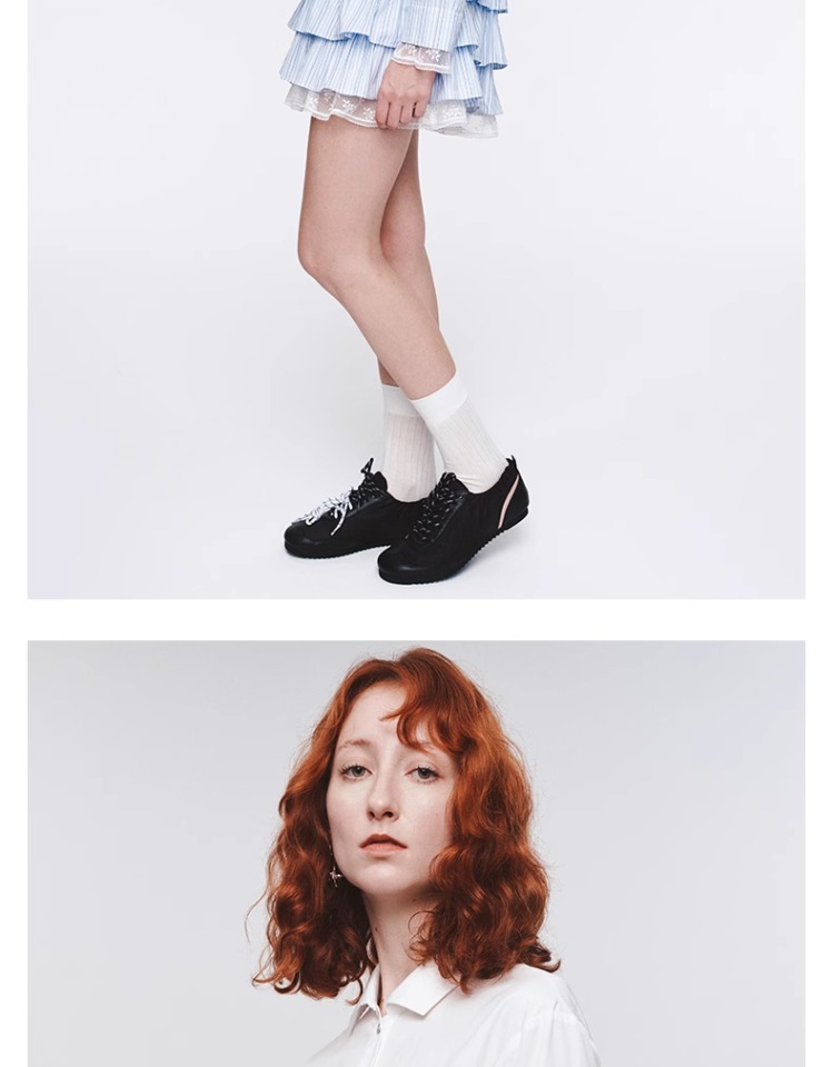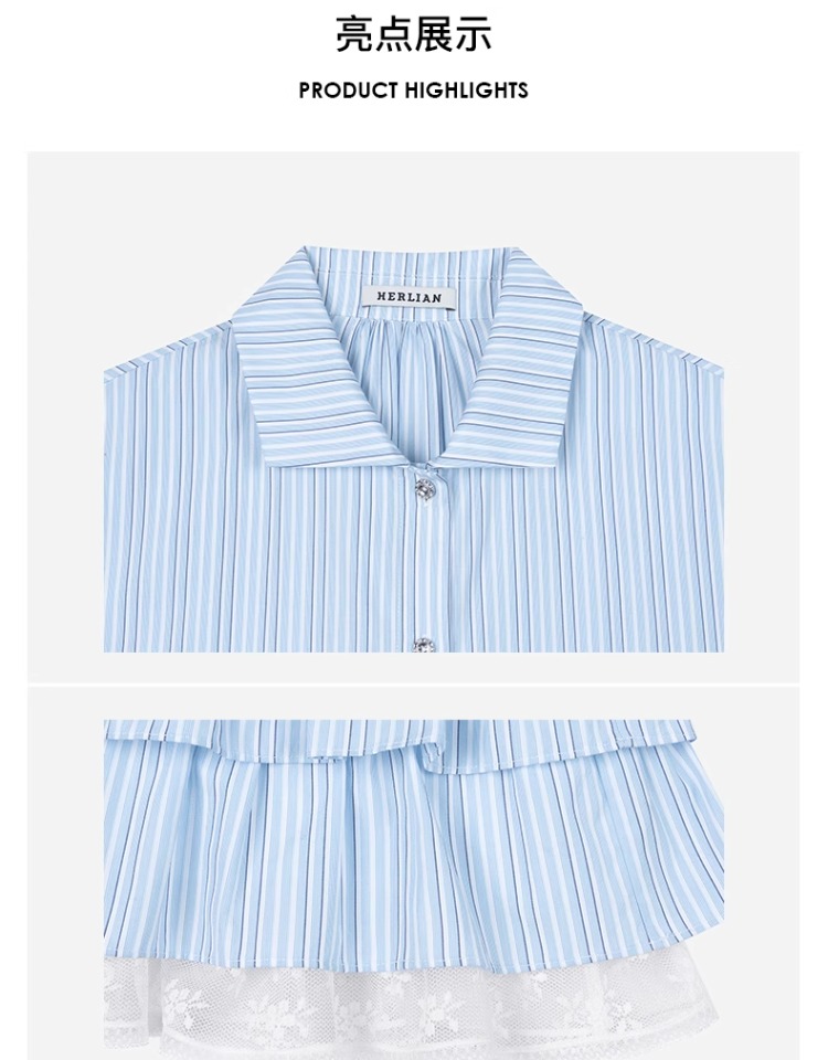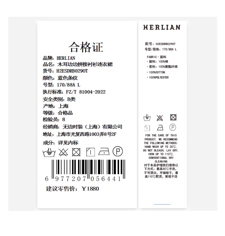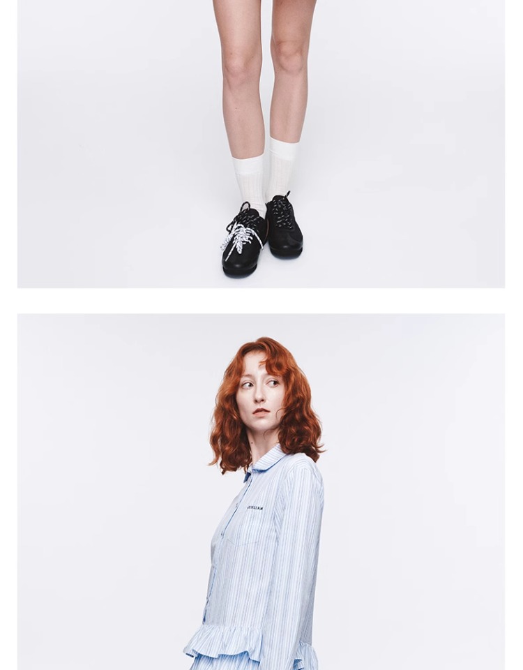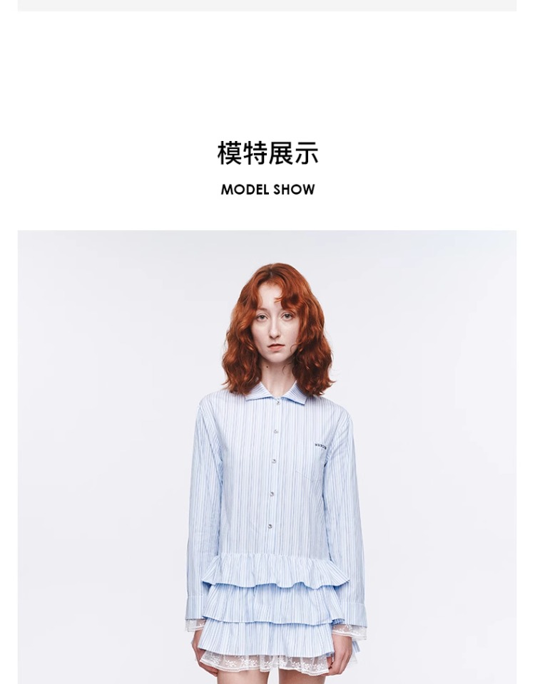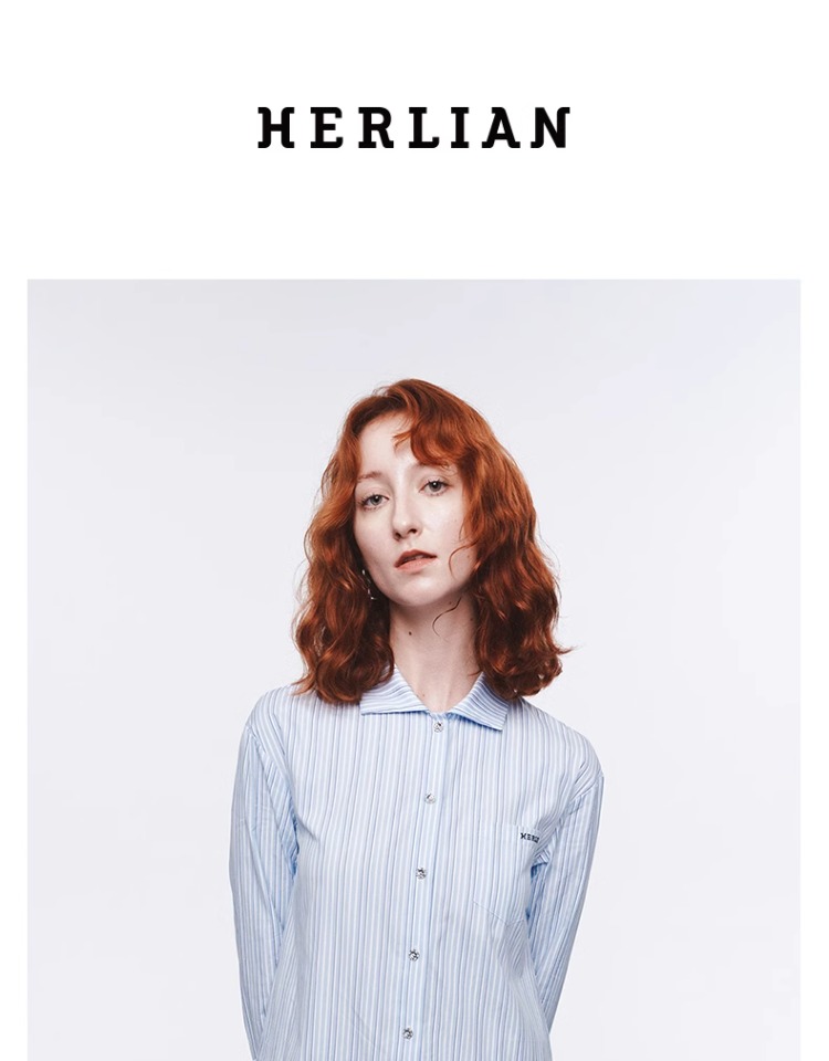 HERLIAN 2025年春季女士木耳边边拼接衬衫连衣裙