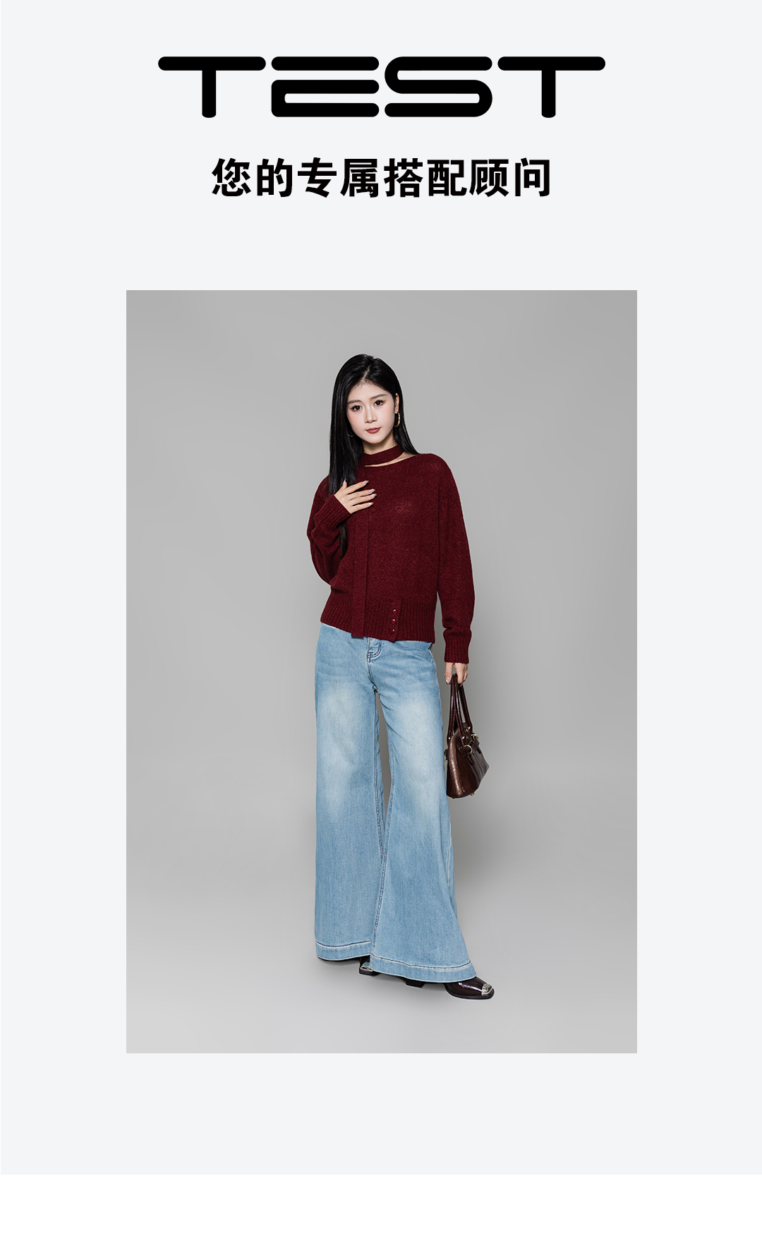 冬上新宽松慵懒版型酒红色挂脖露肩毛衣1254038 商品图2