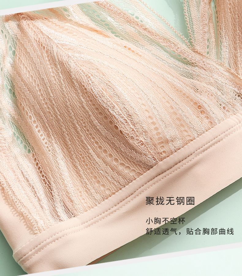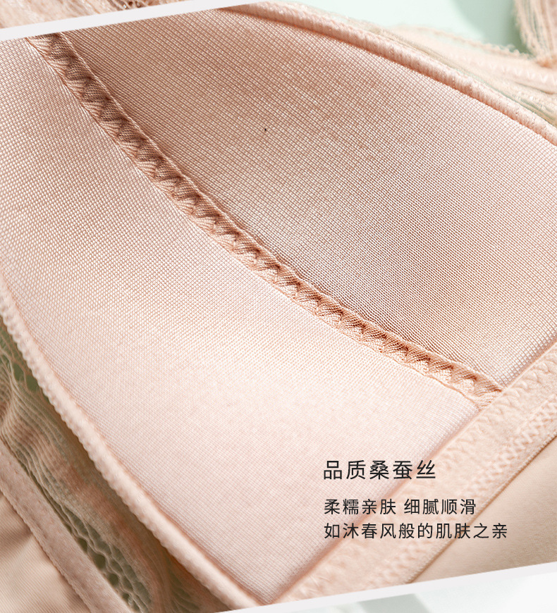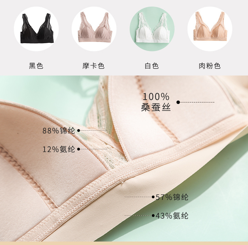 法式真丝文胸无钢圈,蕾丝性感小胸桑蚕丝内衣TG02S100