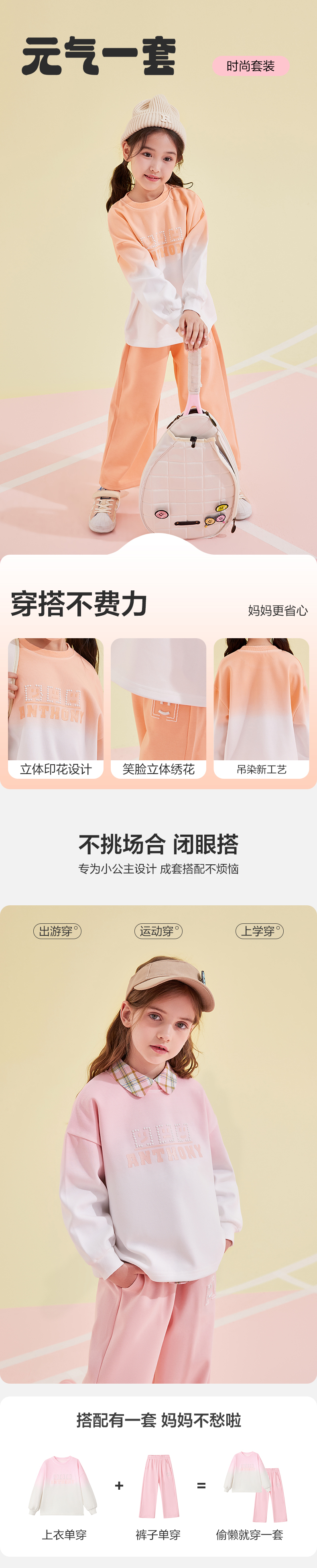 笛莎Deesha 童装女童套装2024春装新款儿童长袖外套套装