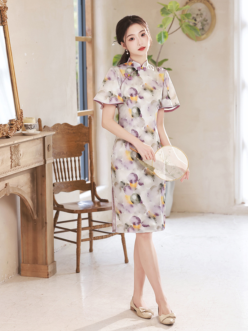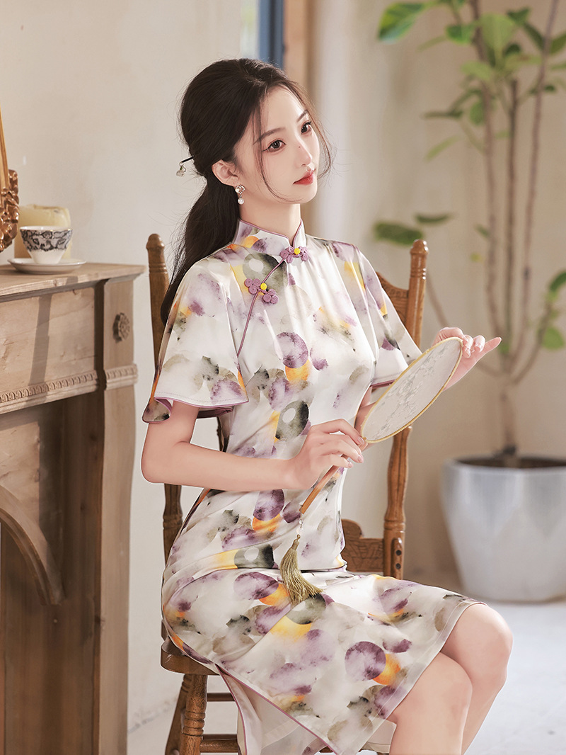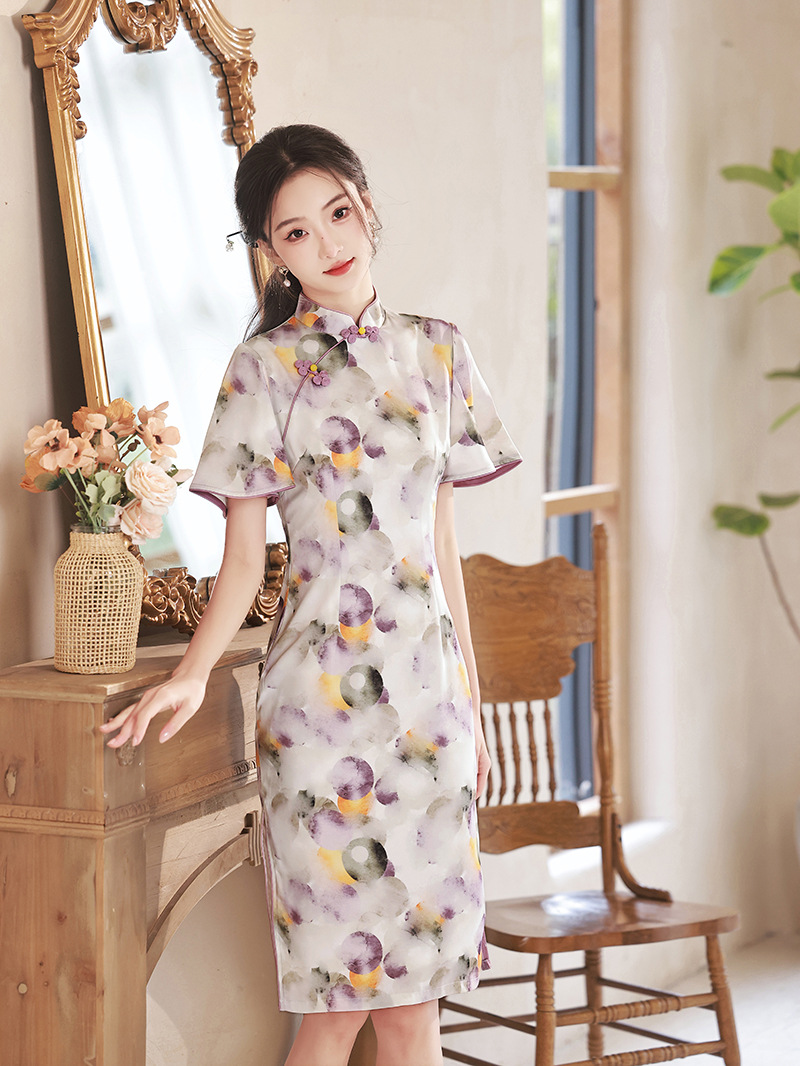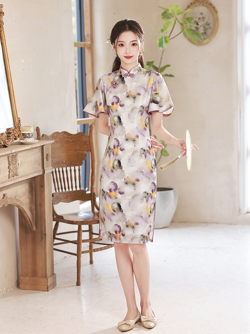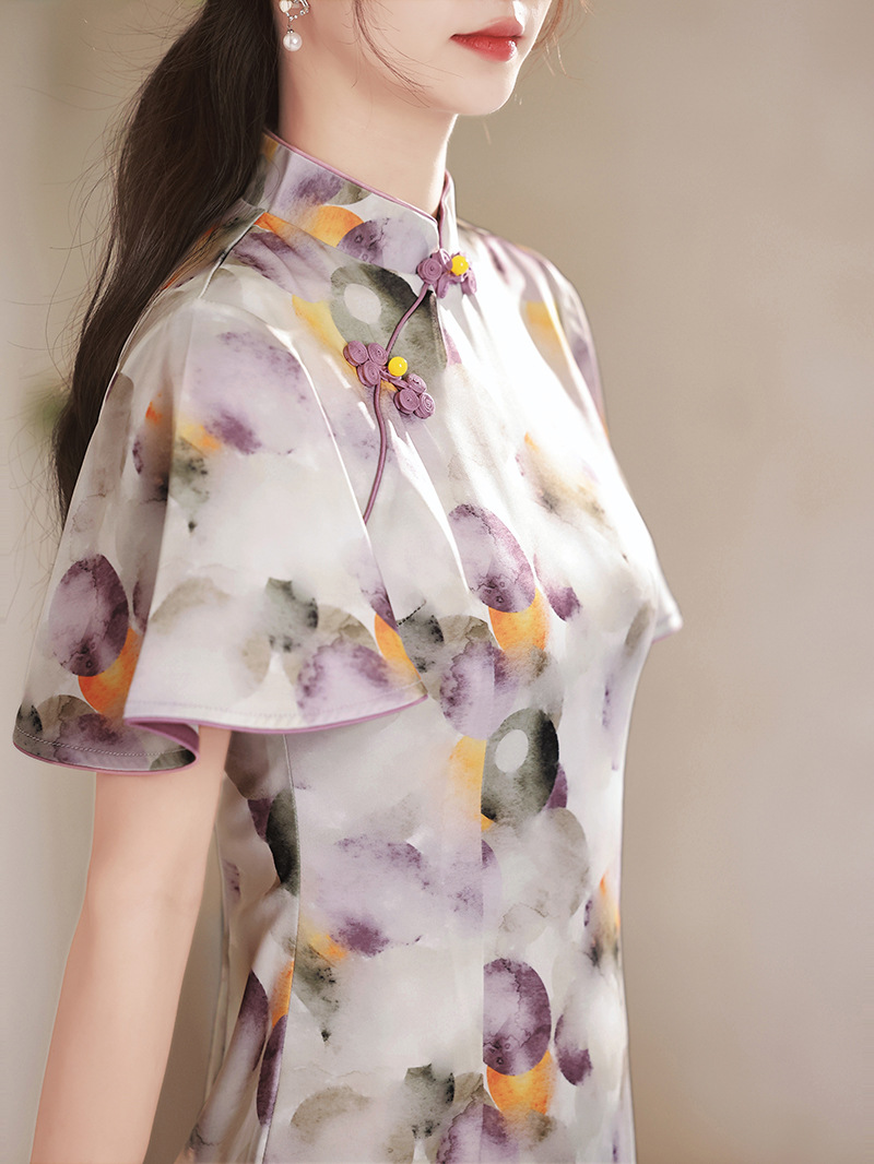 春夏新款,印花修身提花丝绸中长款旗袍XL-23133