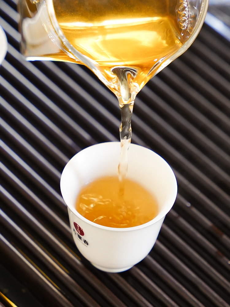 我们先洗茶2道,茶汤极致的干净,没有任何的异杂味,茶汤似油,入口粘稠厚润。滋味饱满,药香浓郁,口感圆润丝滑。两颊生津,回甘强烈持久。唇齿,上颚及上鼻腔持续留香,余韵久久不去。喝到这么好喝的茶实在很难得!上了年份的老茶,更注重陈韵和体感。前汤香醇,中汤厚滑,后汤水甜,陈韵足。这便足以称得上为一款好茶!
