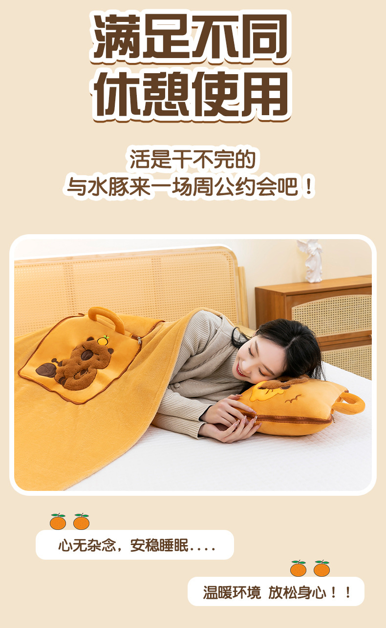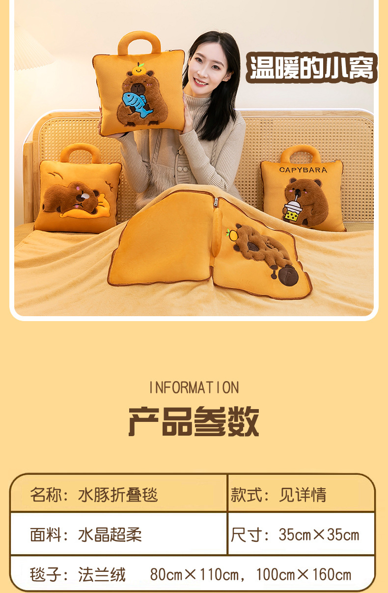 一毯多用【打开既是毯子!合起来便是抱枕】卡皮巴拉抱枕被子两用办公室午睡折叠毯卡通多功能靠枕毯子二合一。ra