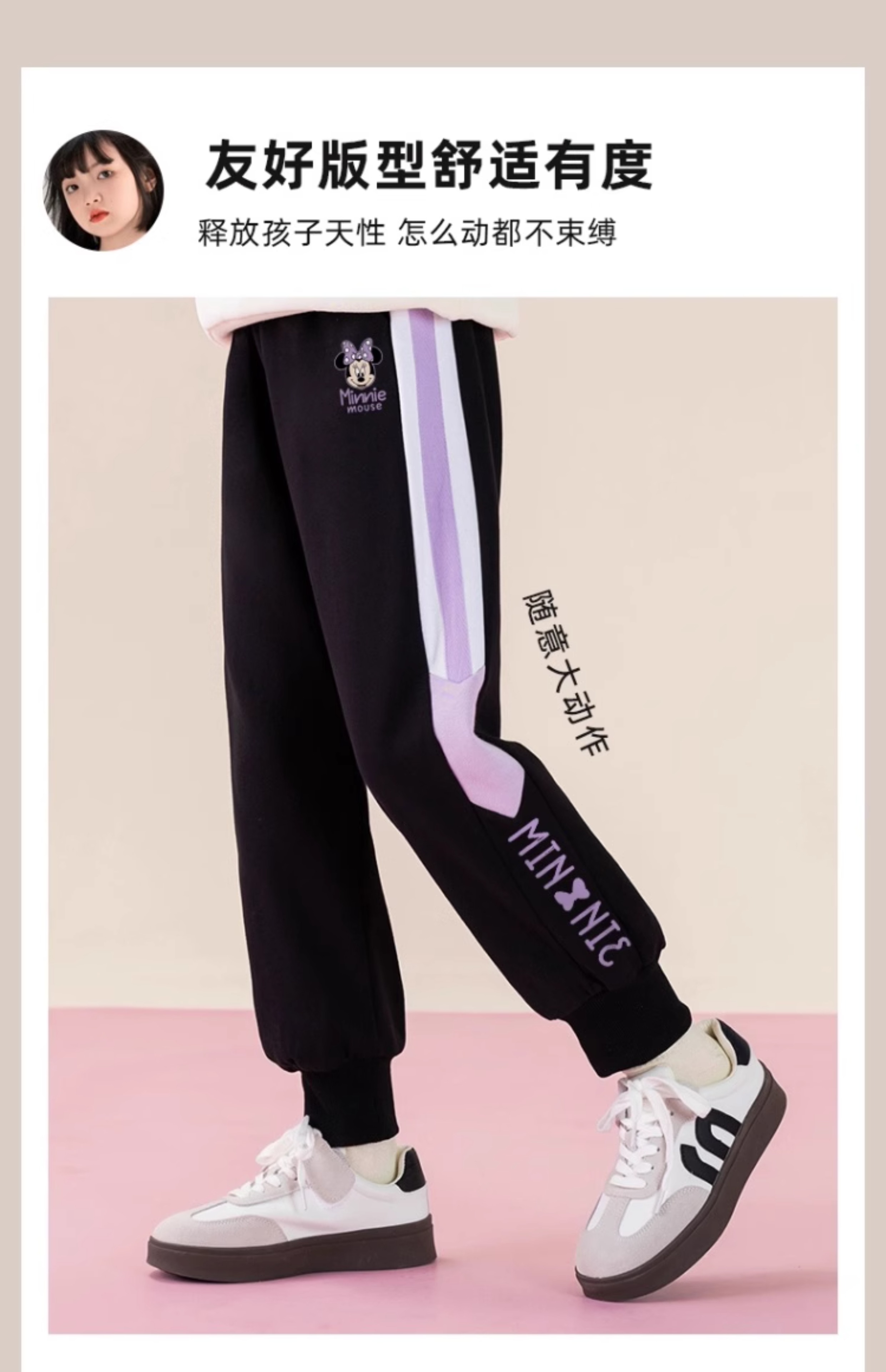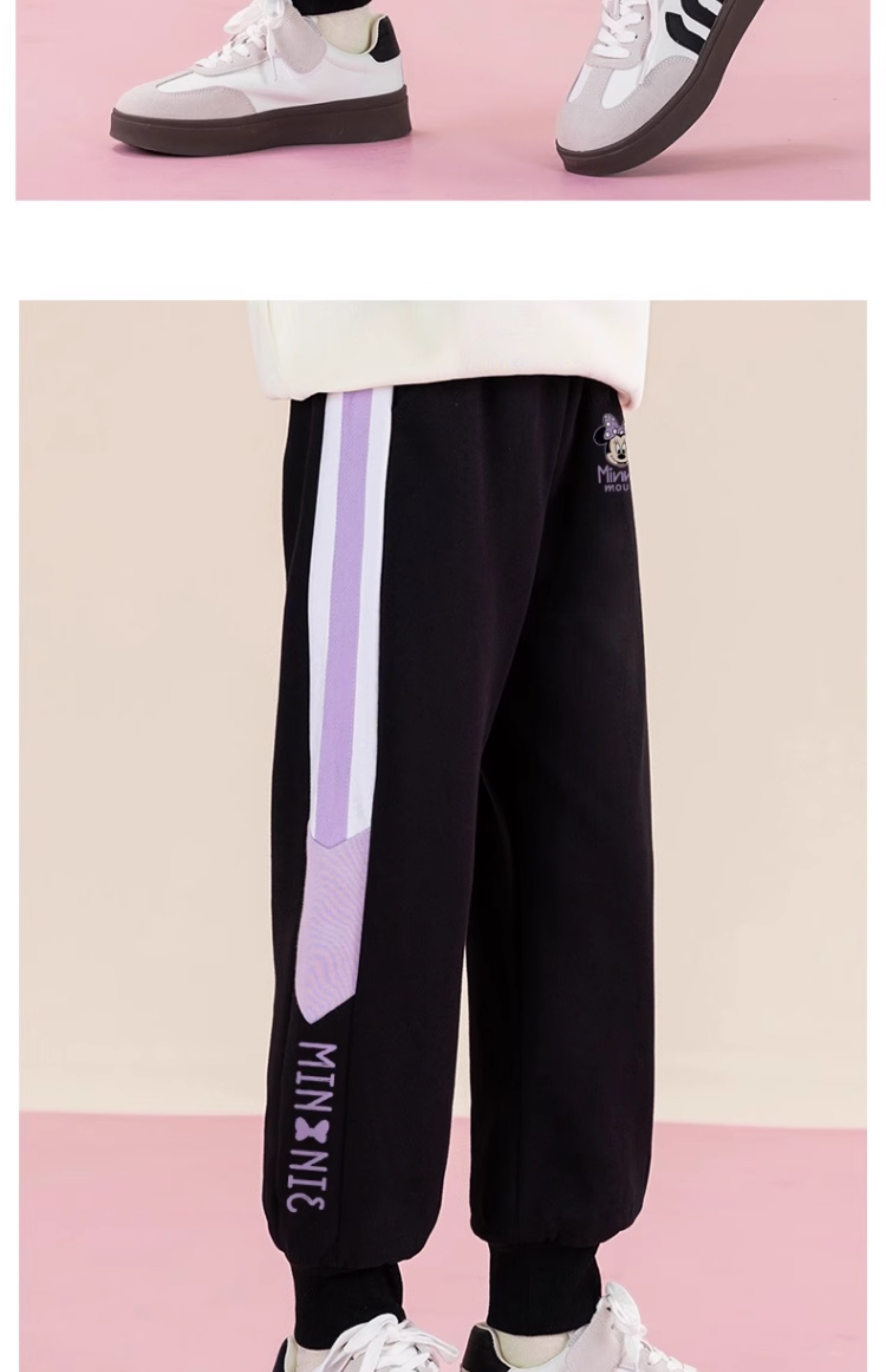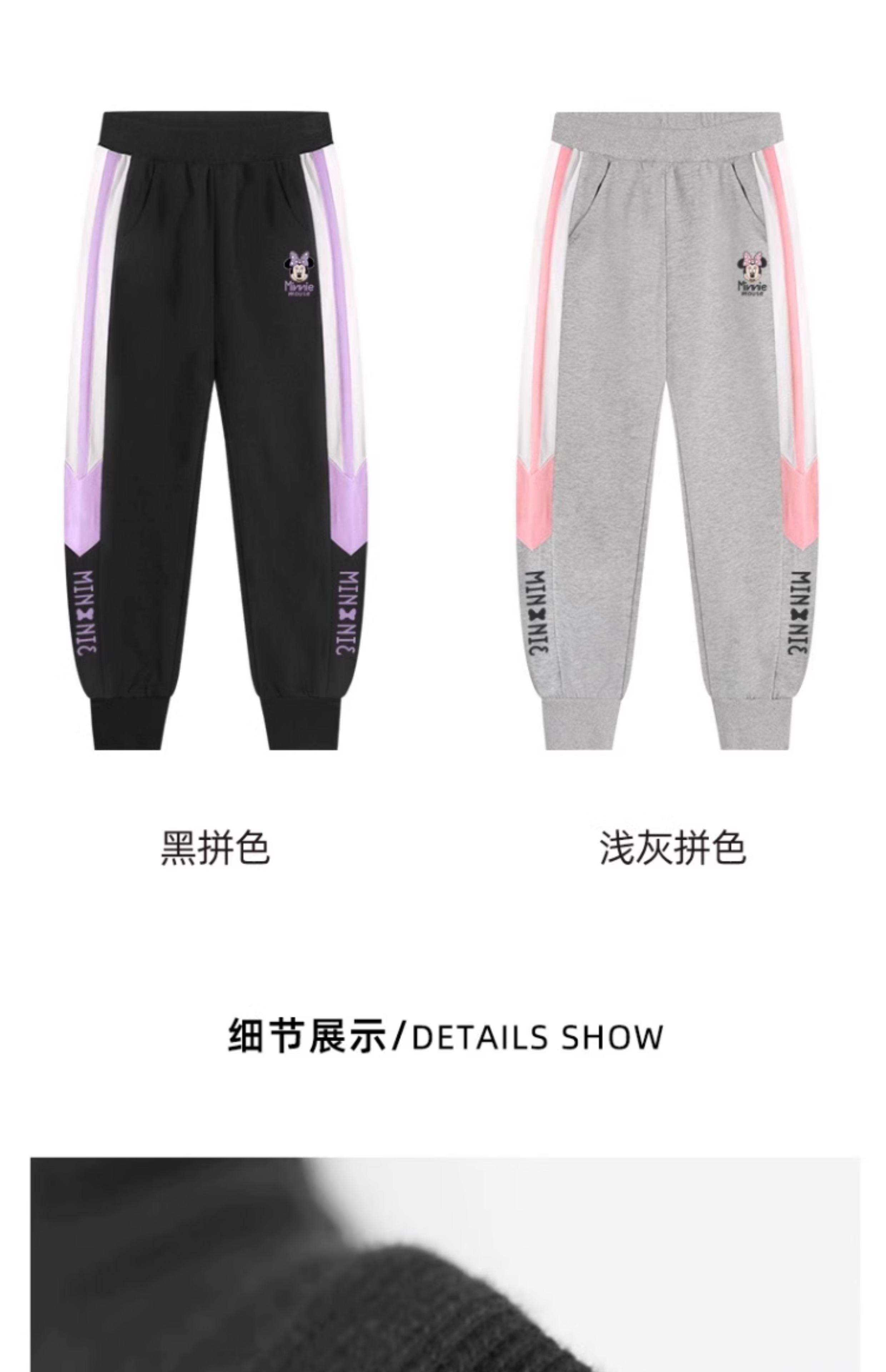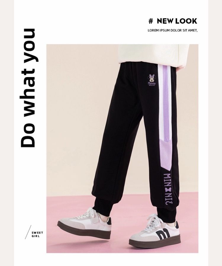 唯品迪士尼女童春秋款元青拼阔腿裤