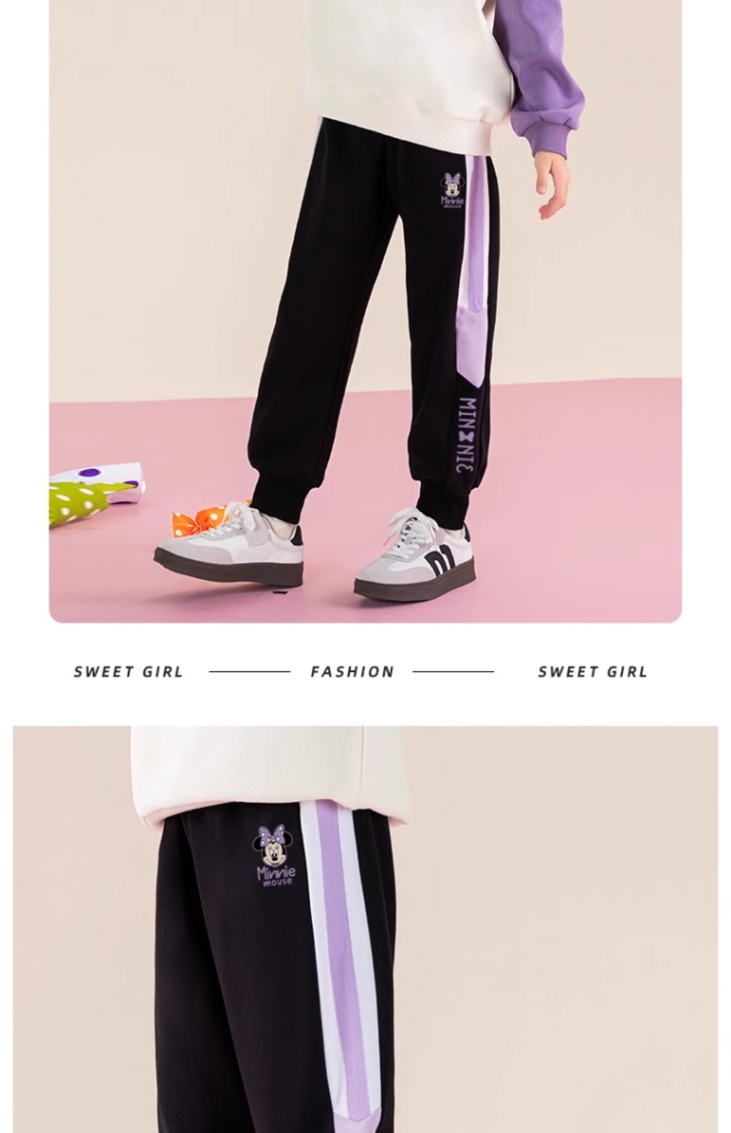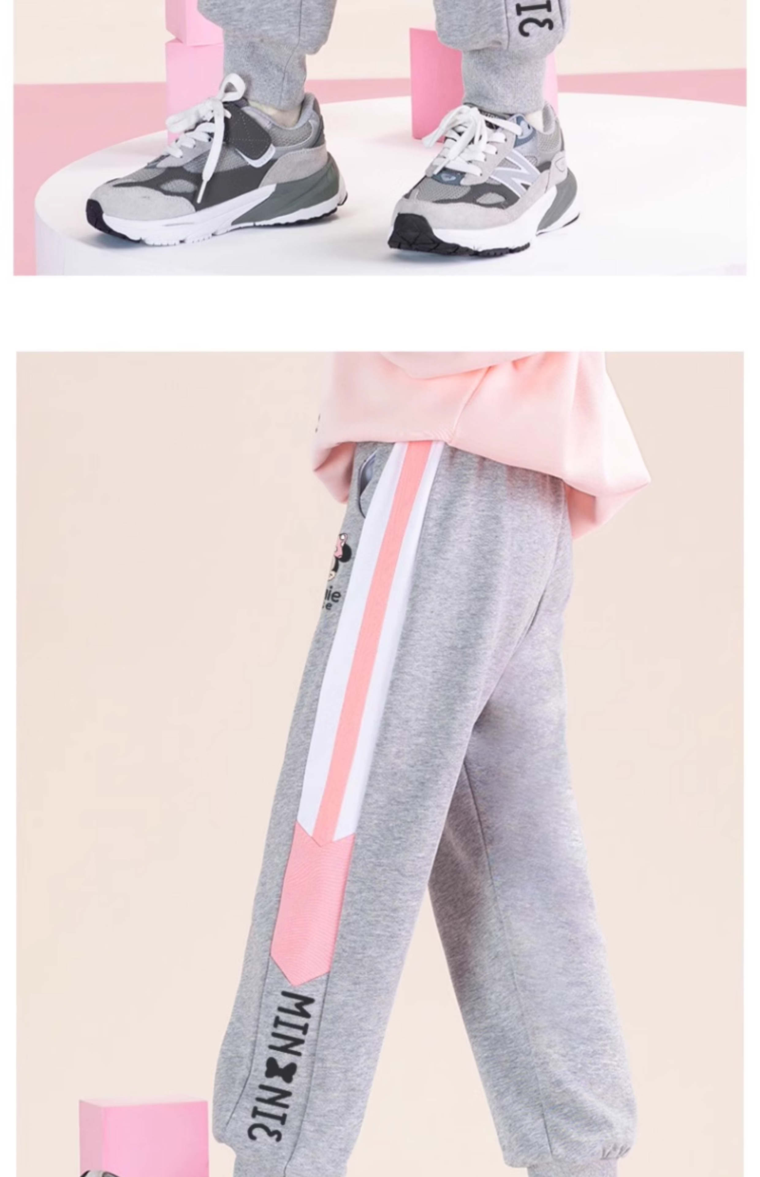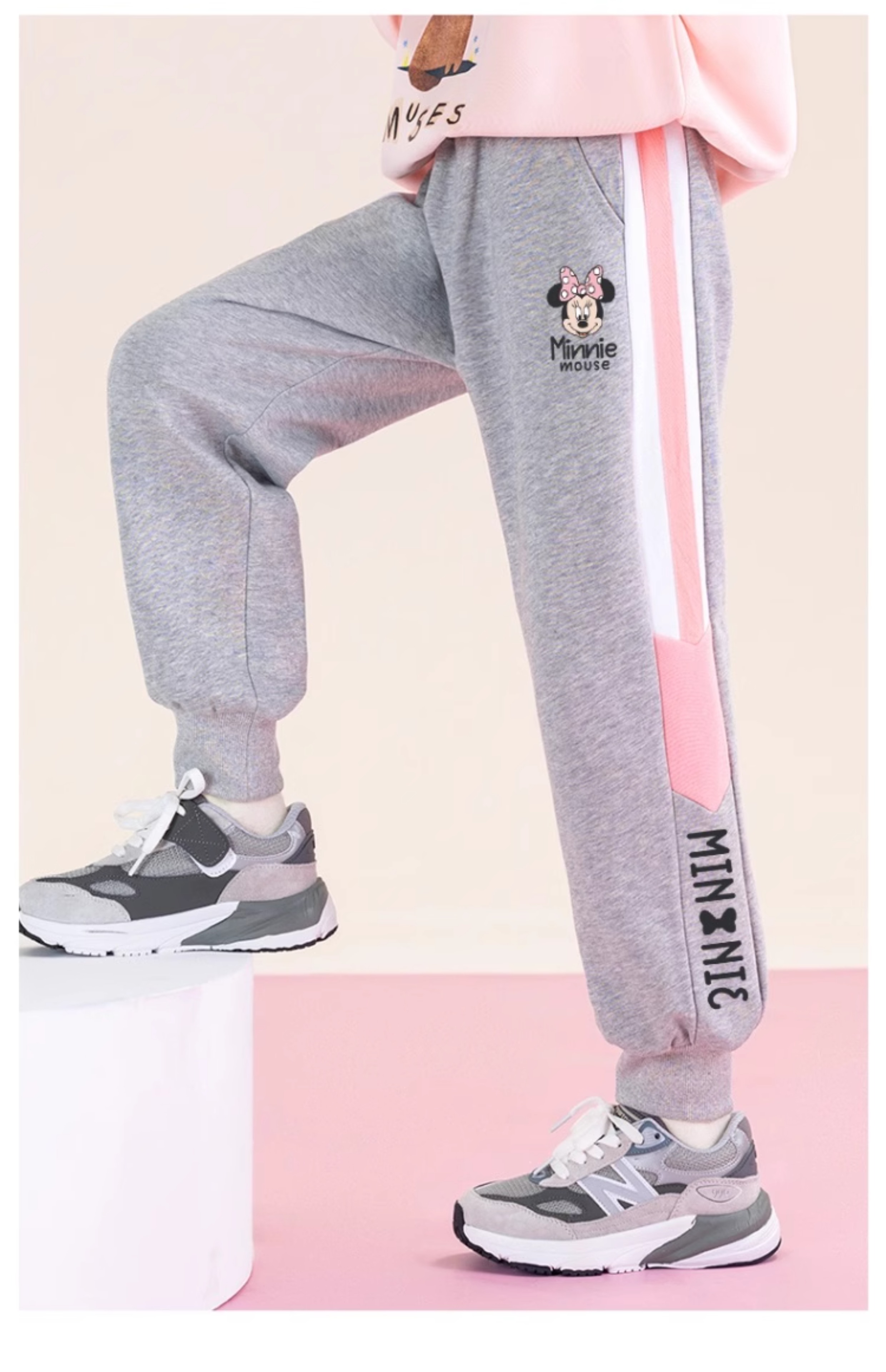 唯品迪士尼女童春秋款元青拼阔腿裤