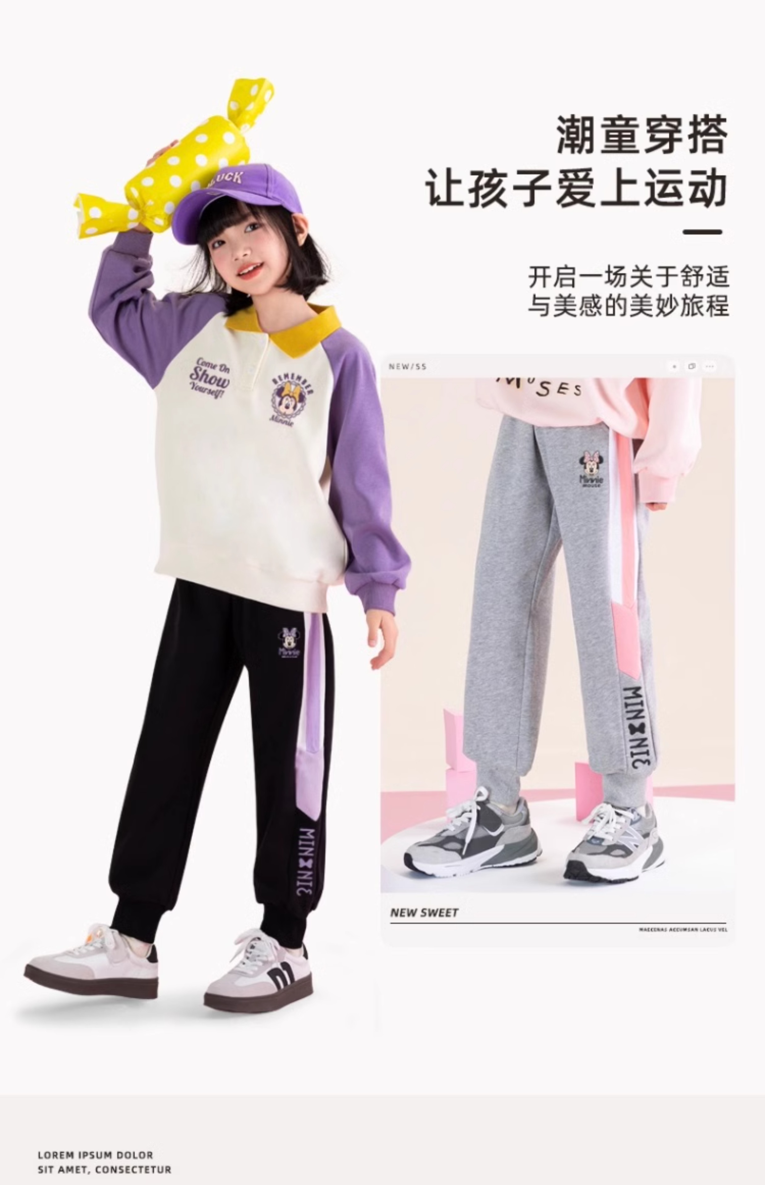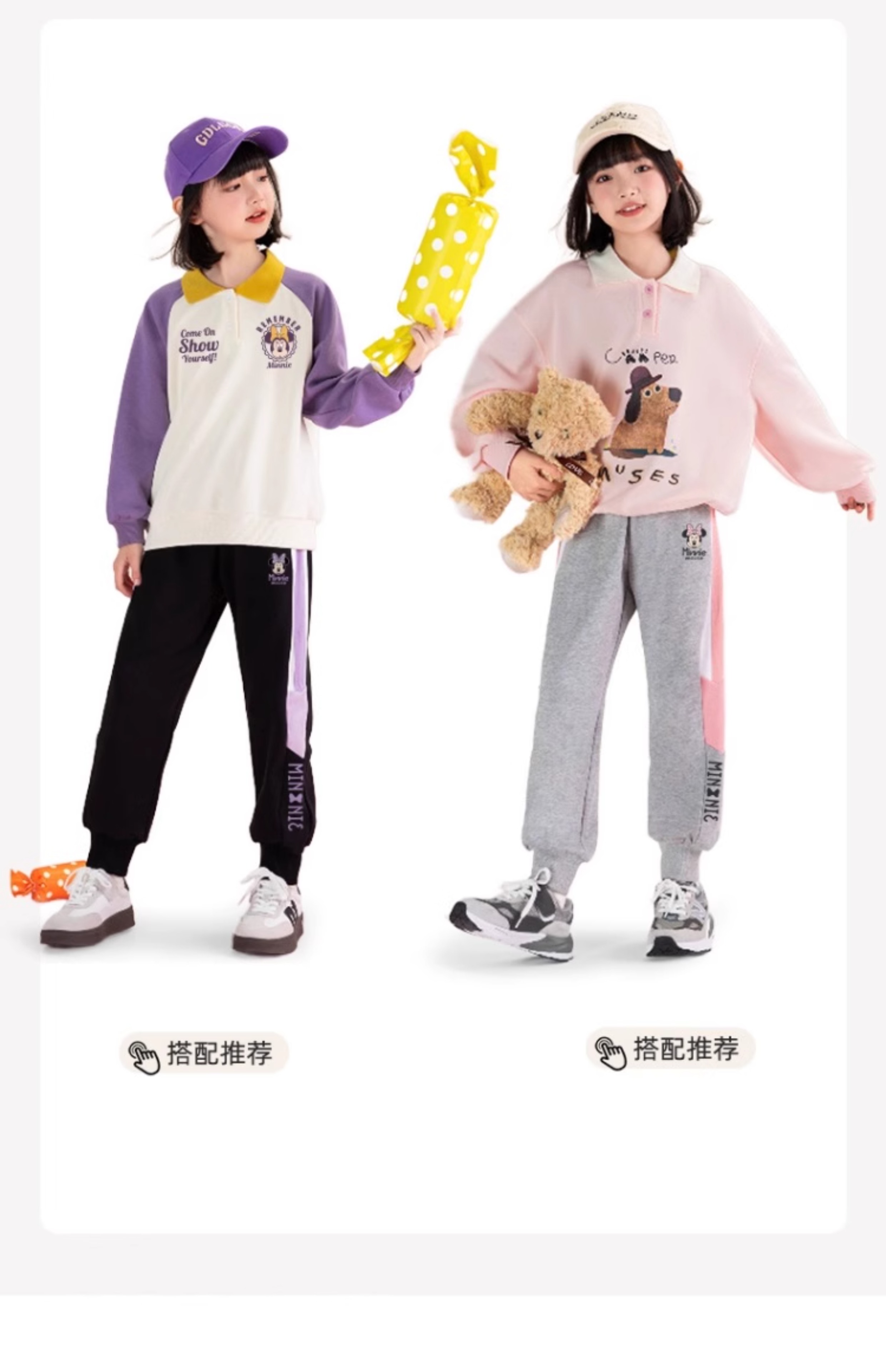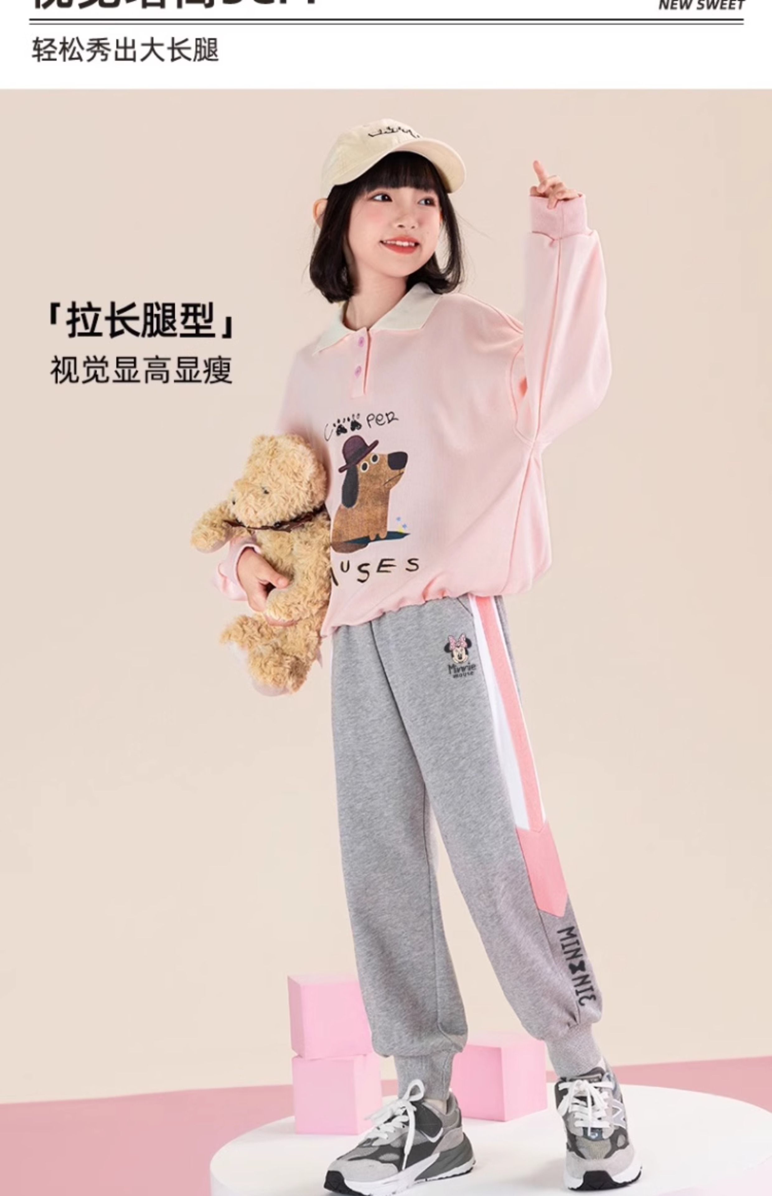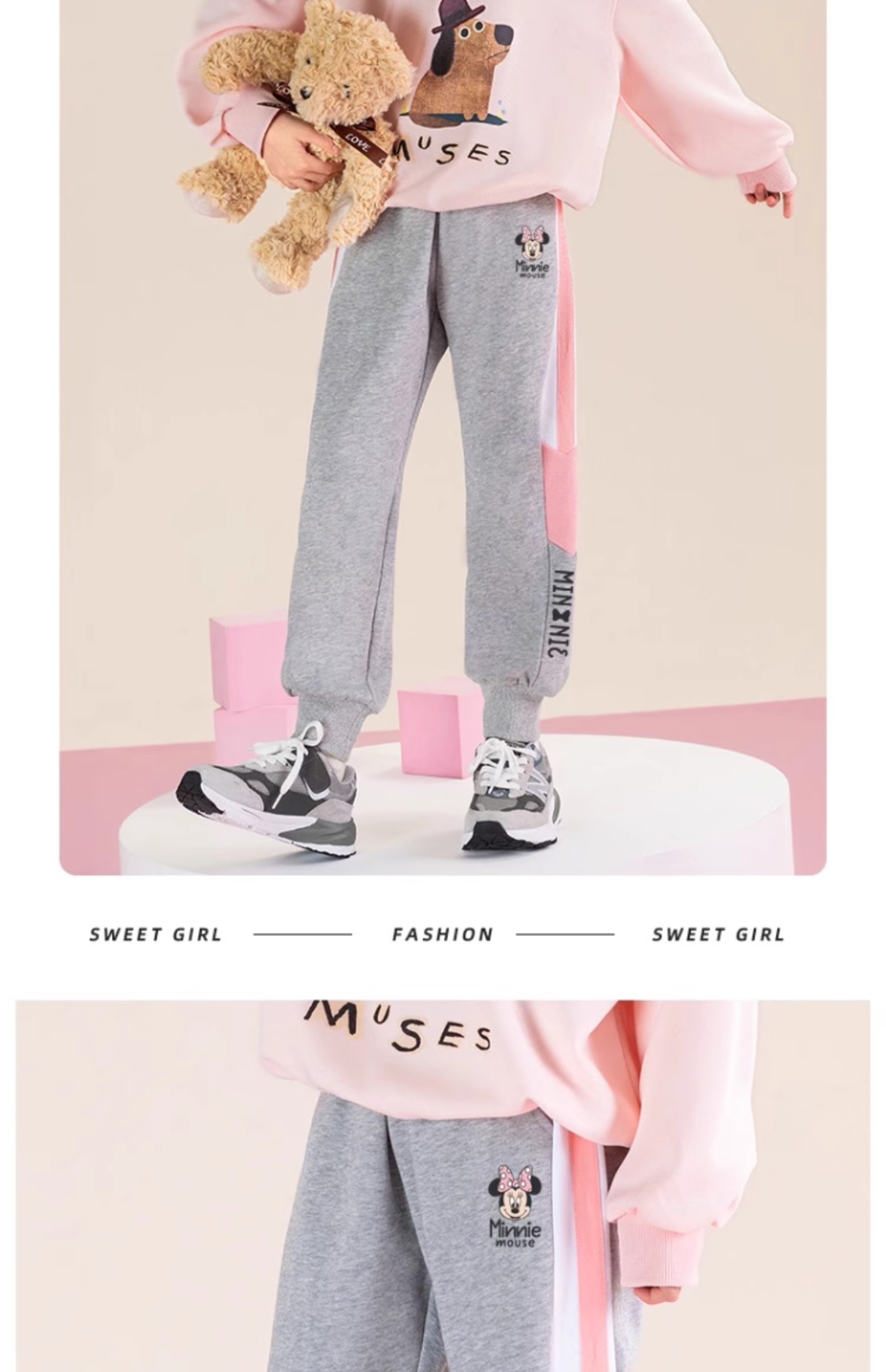 唯品迪士尼女童春秋款元青拼阔腿裤