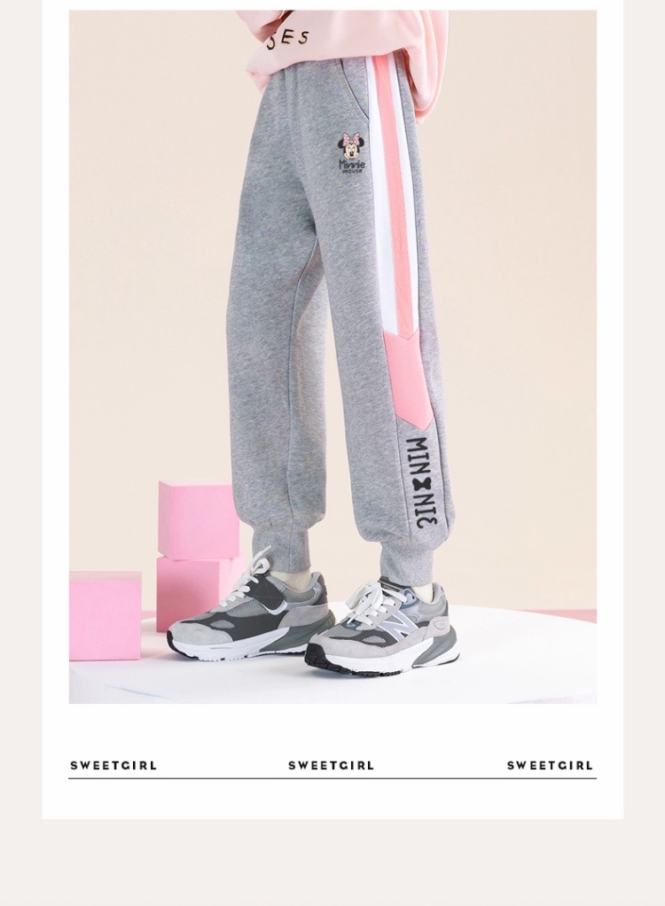 迪士尼女大童裤子春季2025新款洋气女童运动裤春秋儿童休闲裤春装