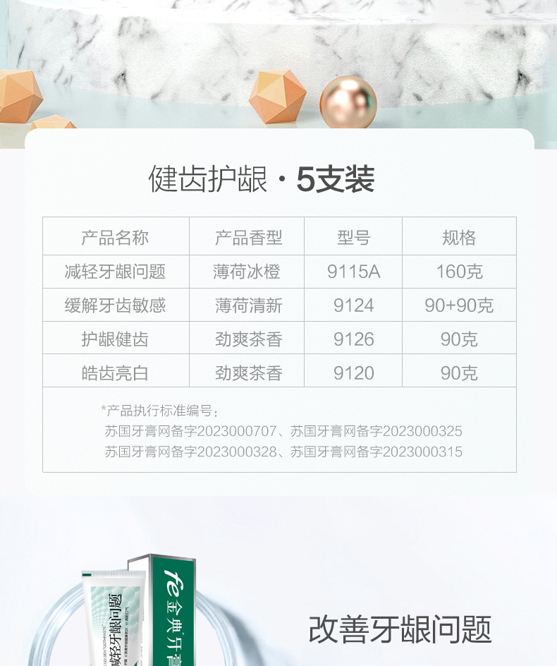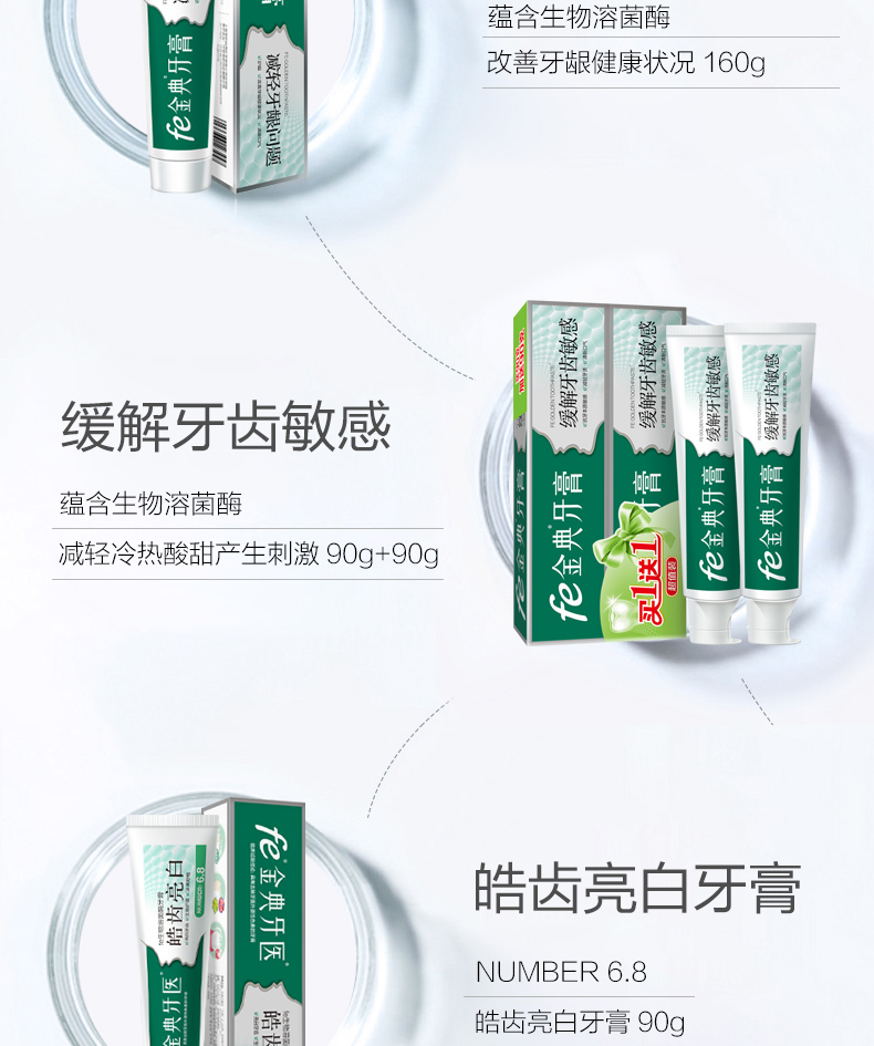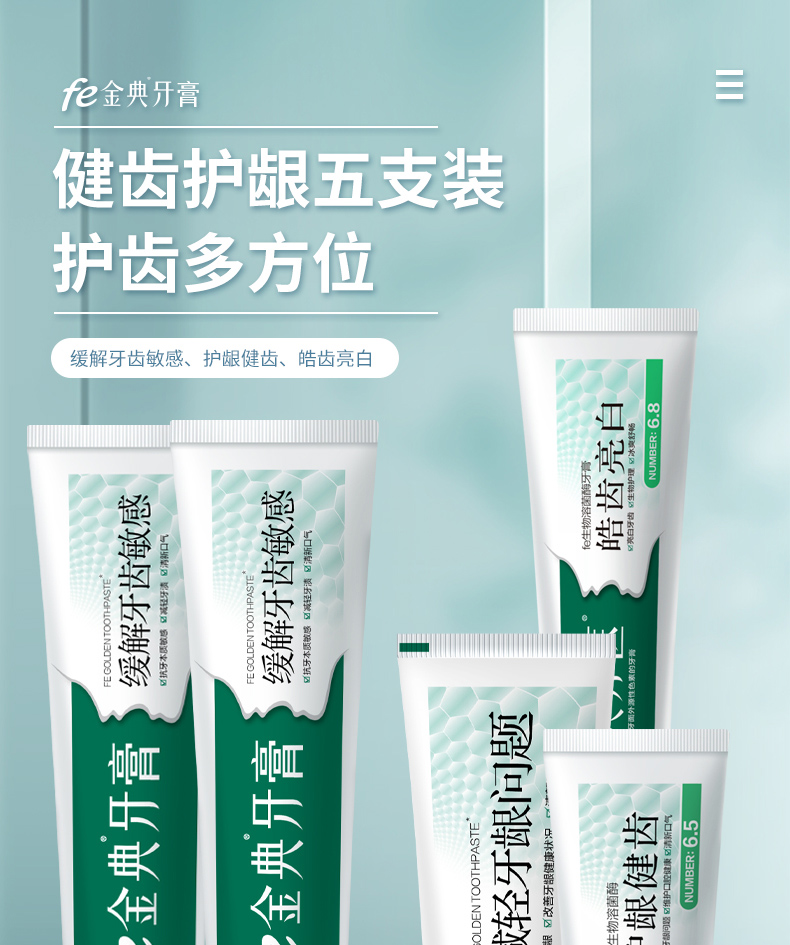 fe金典牙医金典牙膏护龈健齿净白抗敏牙膏改善牙龈牙周五支装包邮