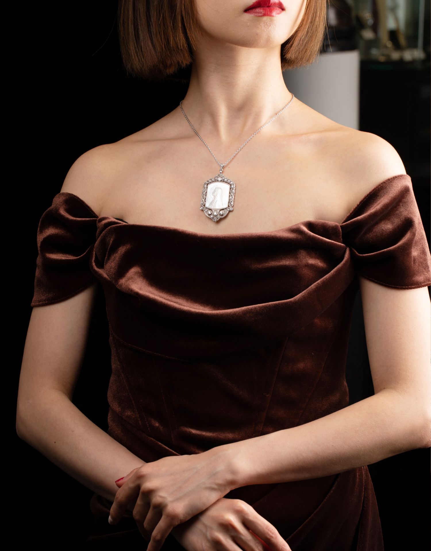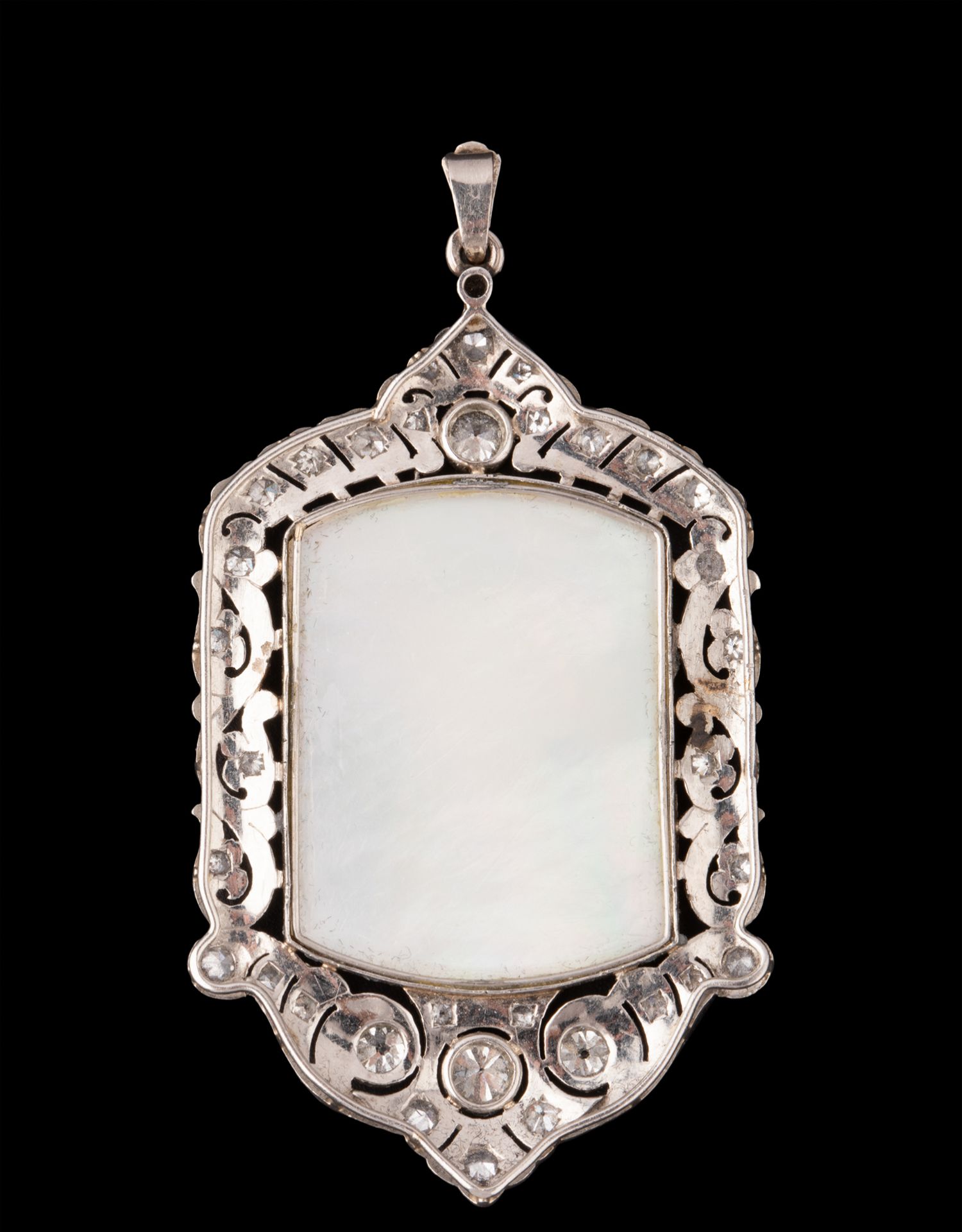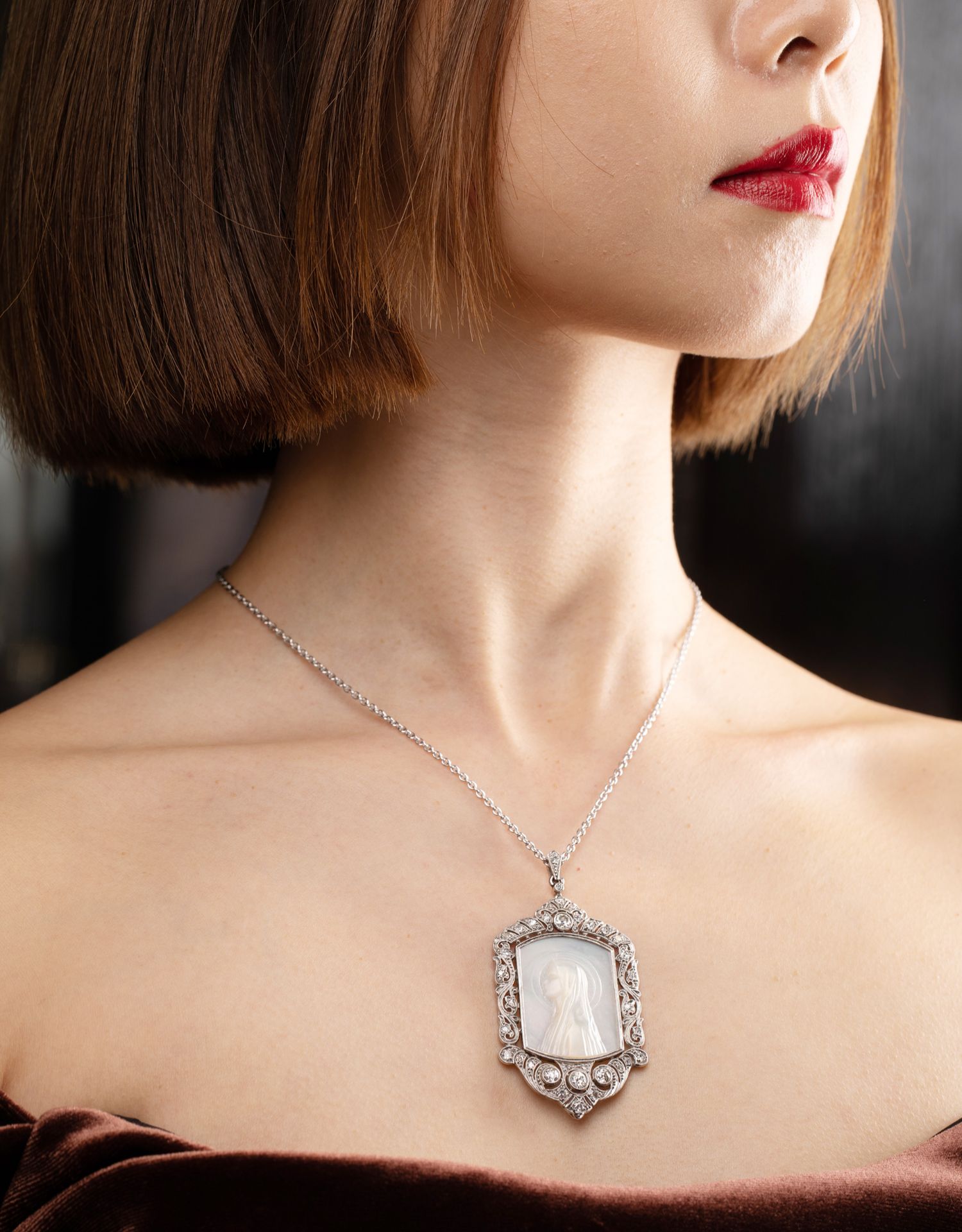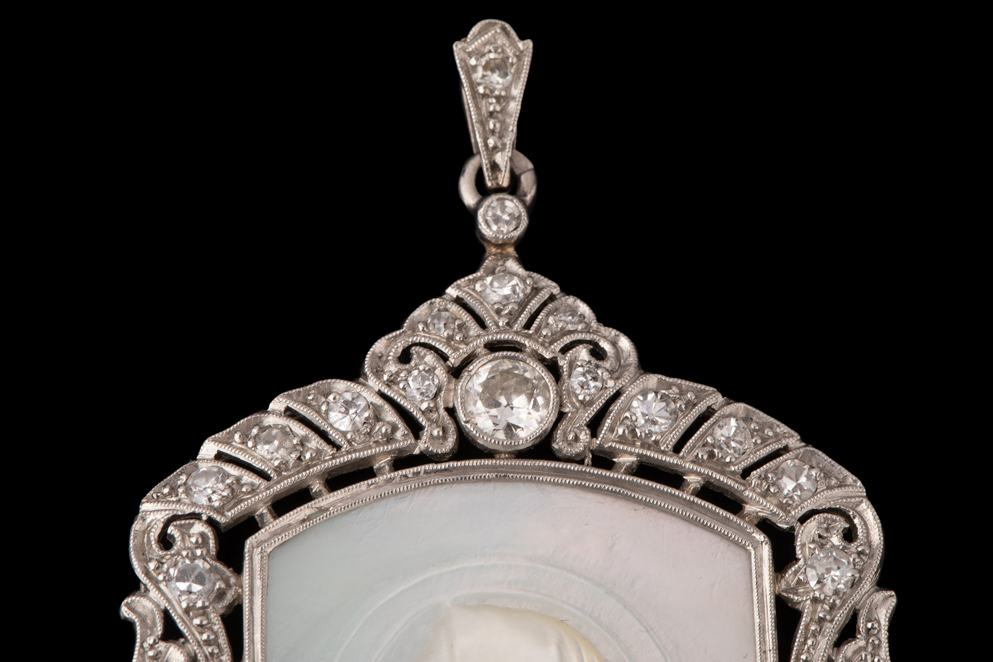 独角鹿西洋古董珠宝首饰装饰艺术钻石铂金母贝雕刻圣母侧身像吊坠