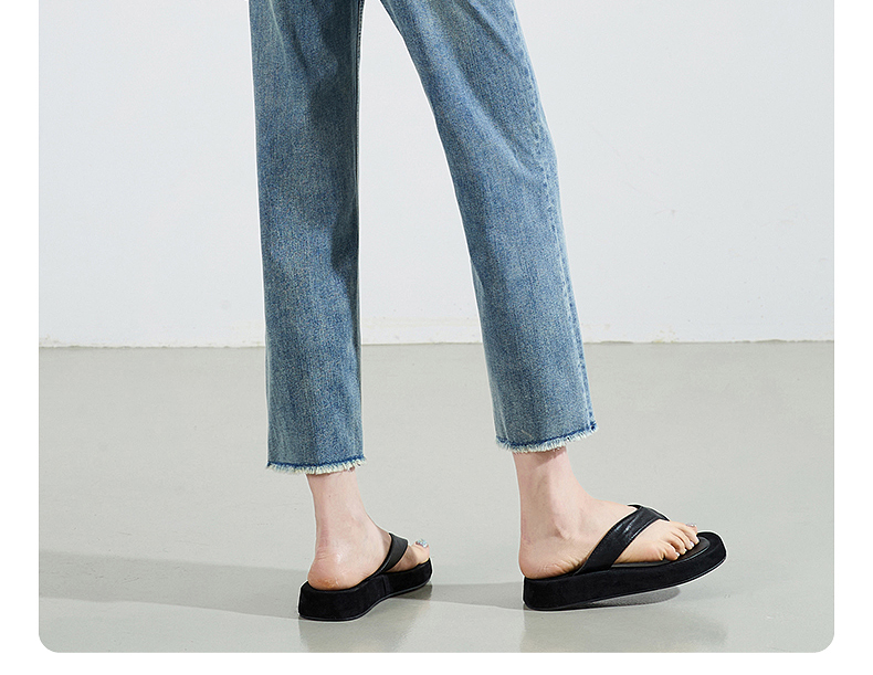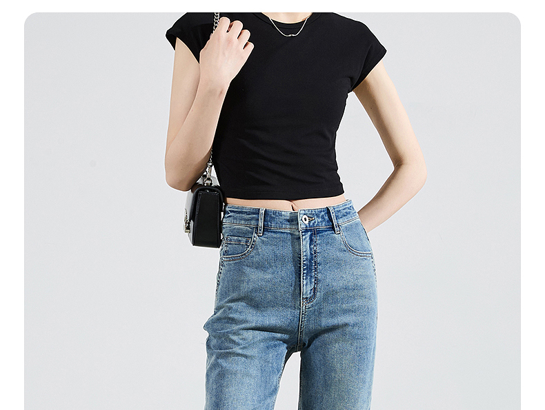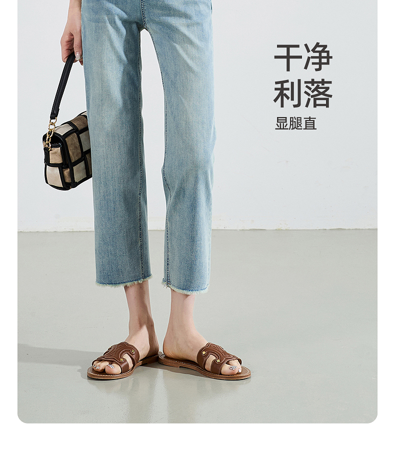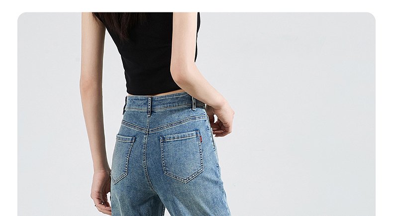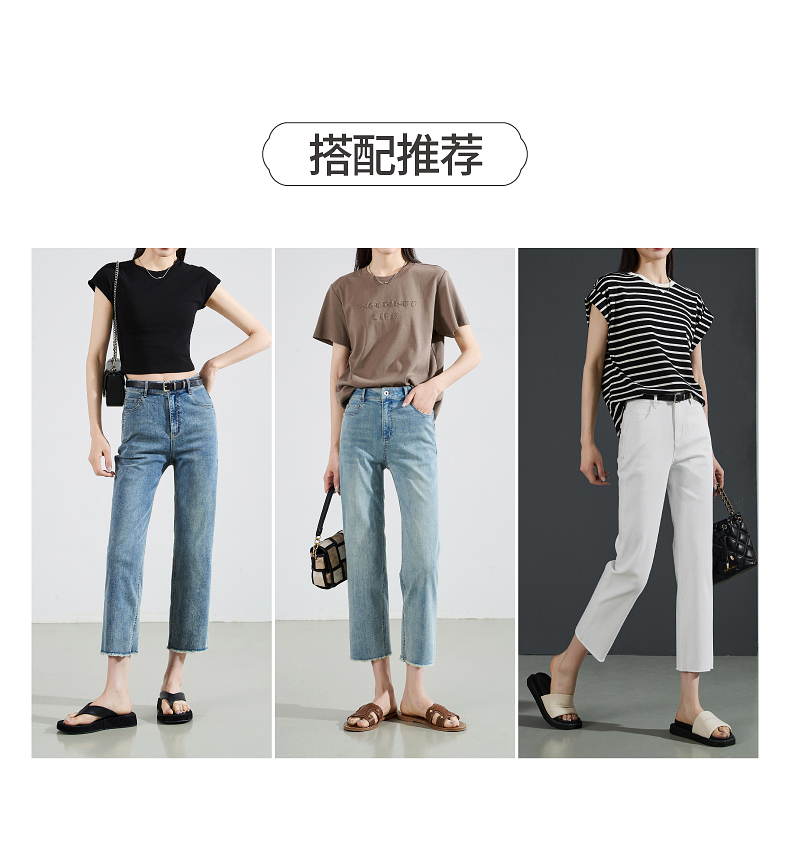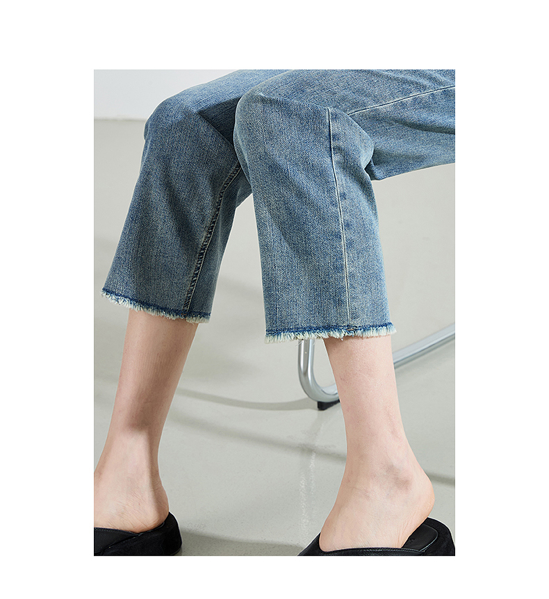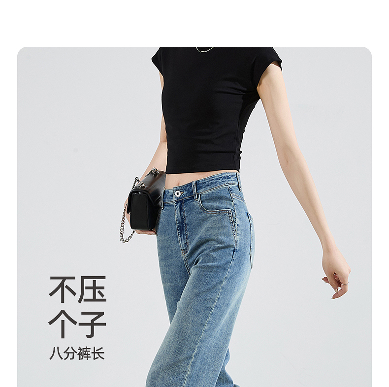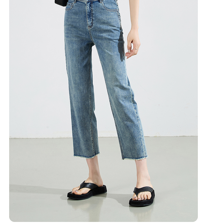【八分烟管牛仔】逸阳夏薄款复古毛边直筒修身显瘦裤子0829T