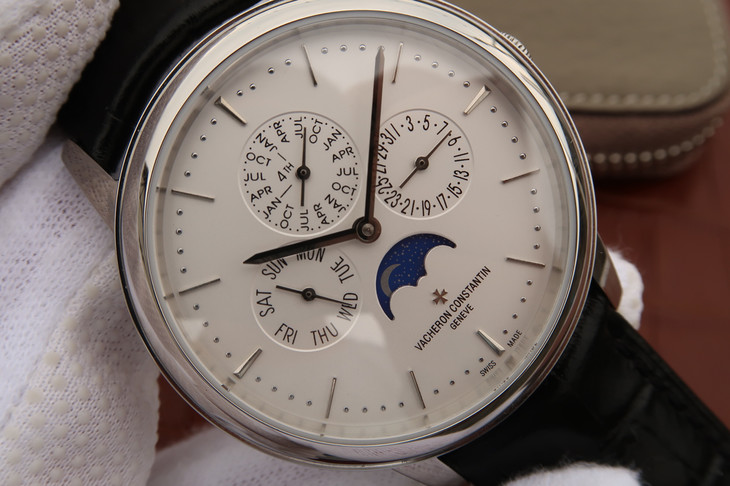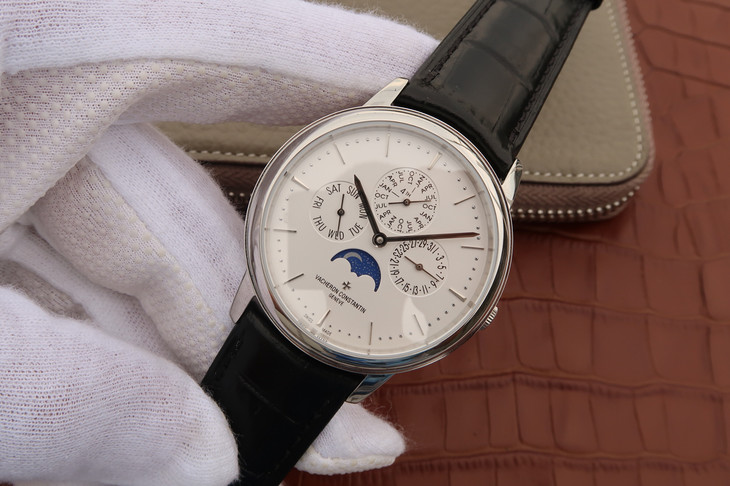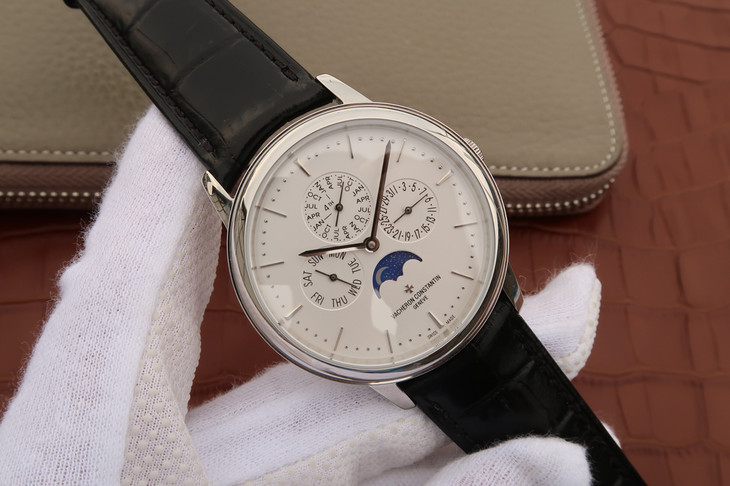 江诗丹顿传承系列43175。月份,星期,日历,月相,均为真实功能,和正品完全一致的功能。万年历商务自动机械男士腕表 搭载与正品一致的cal.1120QP机芯 直径:41mm(非常适合中国男性的尺寸)