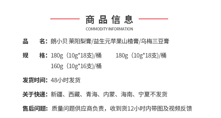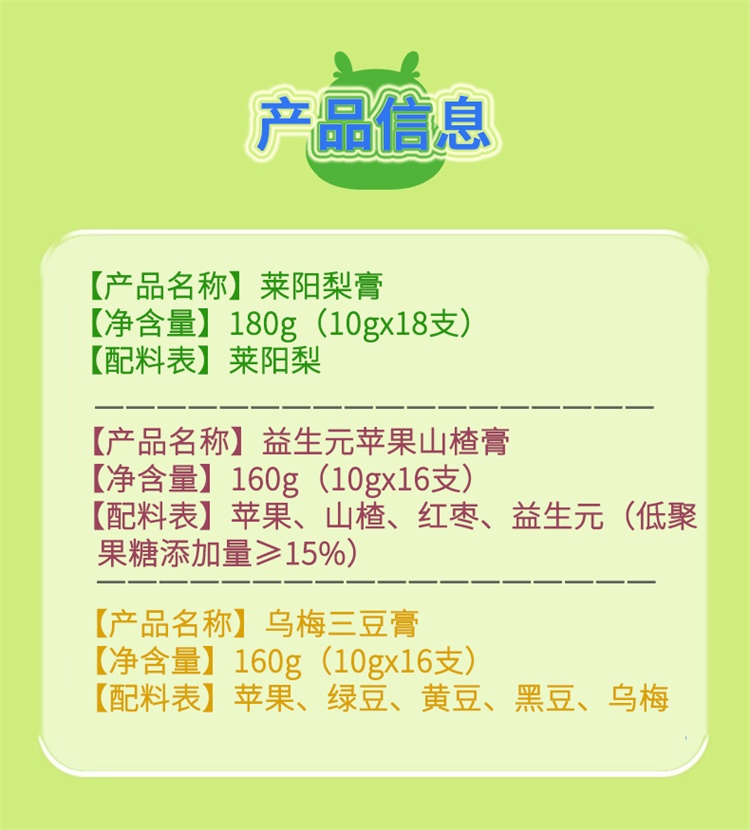 朗小贝 莱阳梨膏/益生元苹果山楂膏/乌梅三豆膏