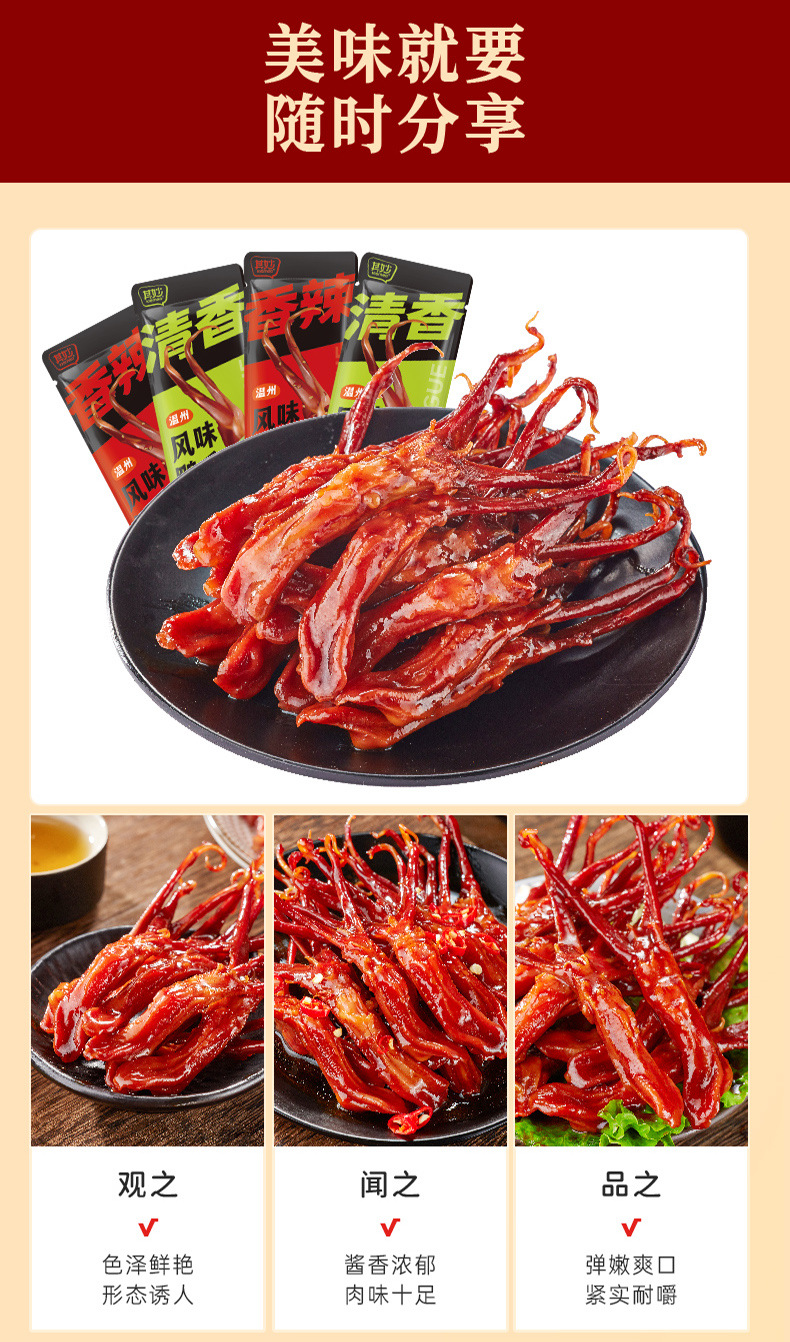 【根根Q弹鲜嫩!温州风味鸭舌头】酱香浓郁,Q弹肥美,特产卤味熟食网红解馋香辣的小零食小吃休闲食品大礼包健康