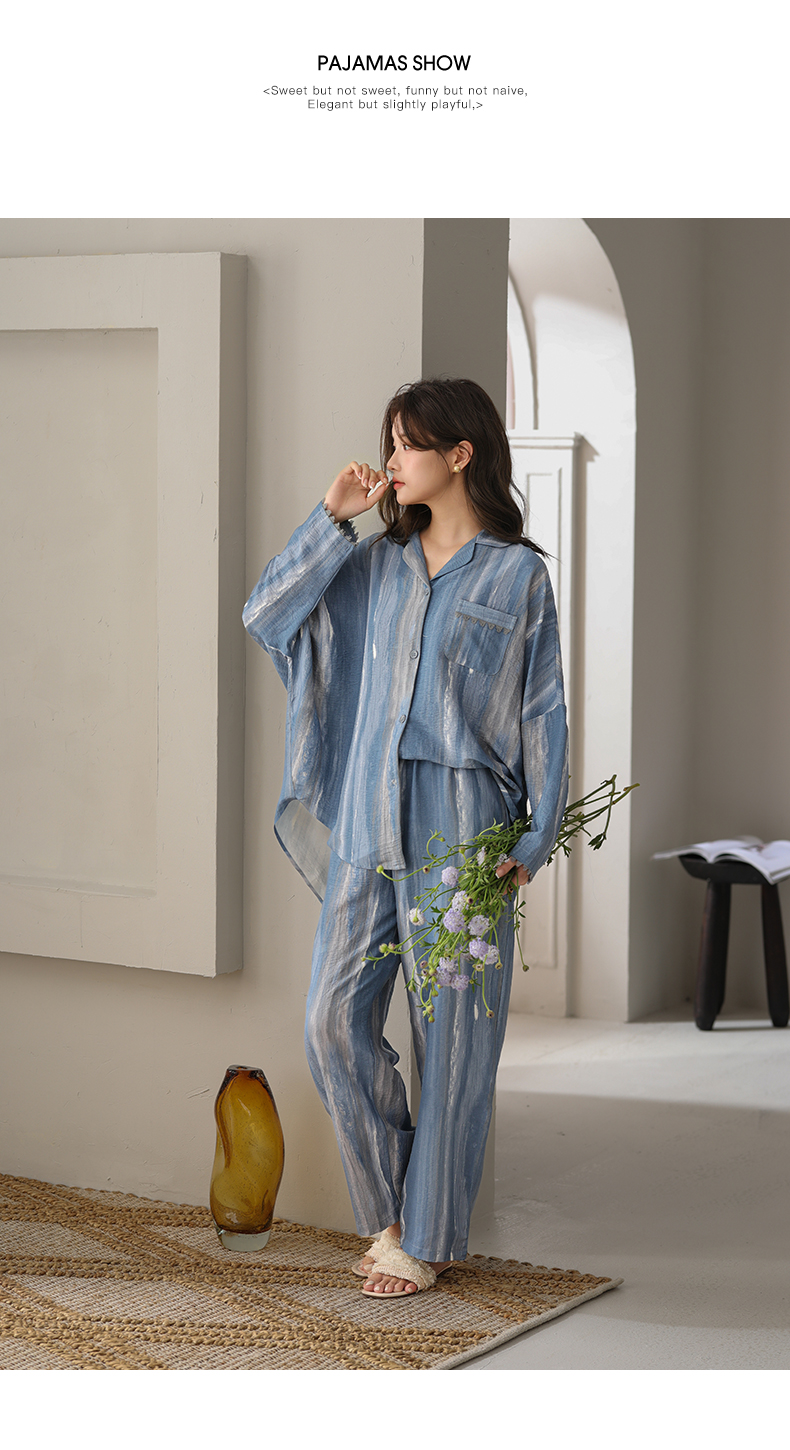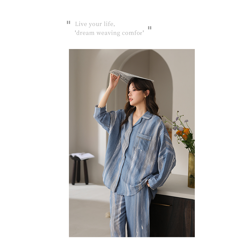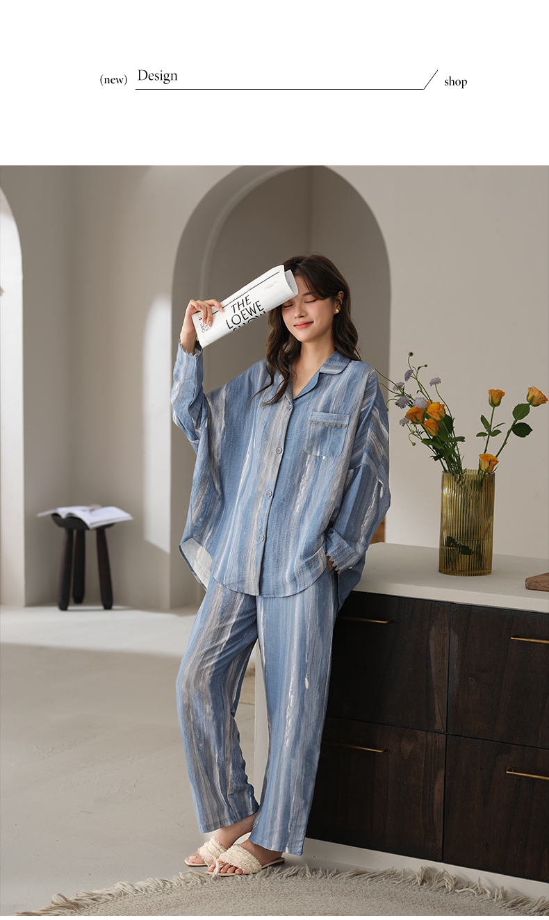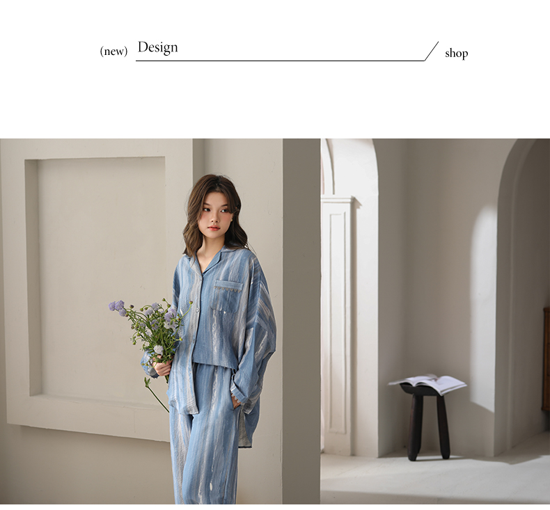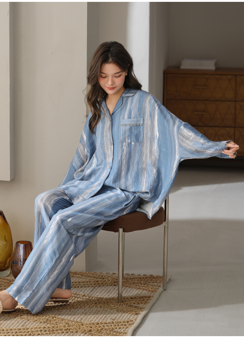 可人儿新款纯棉睡衣女士春秋季长袖时尚开衫开衫可外出家居服套装