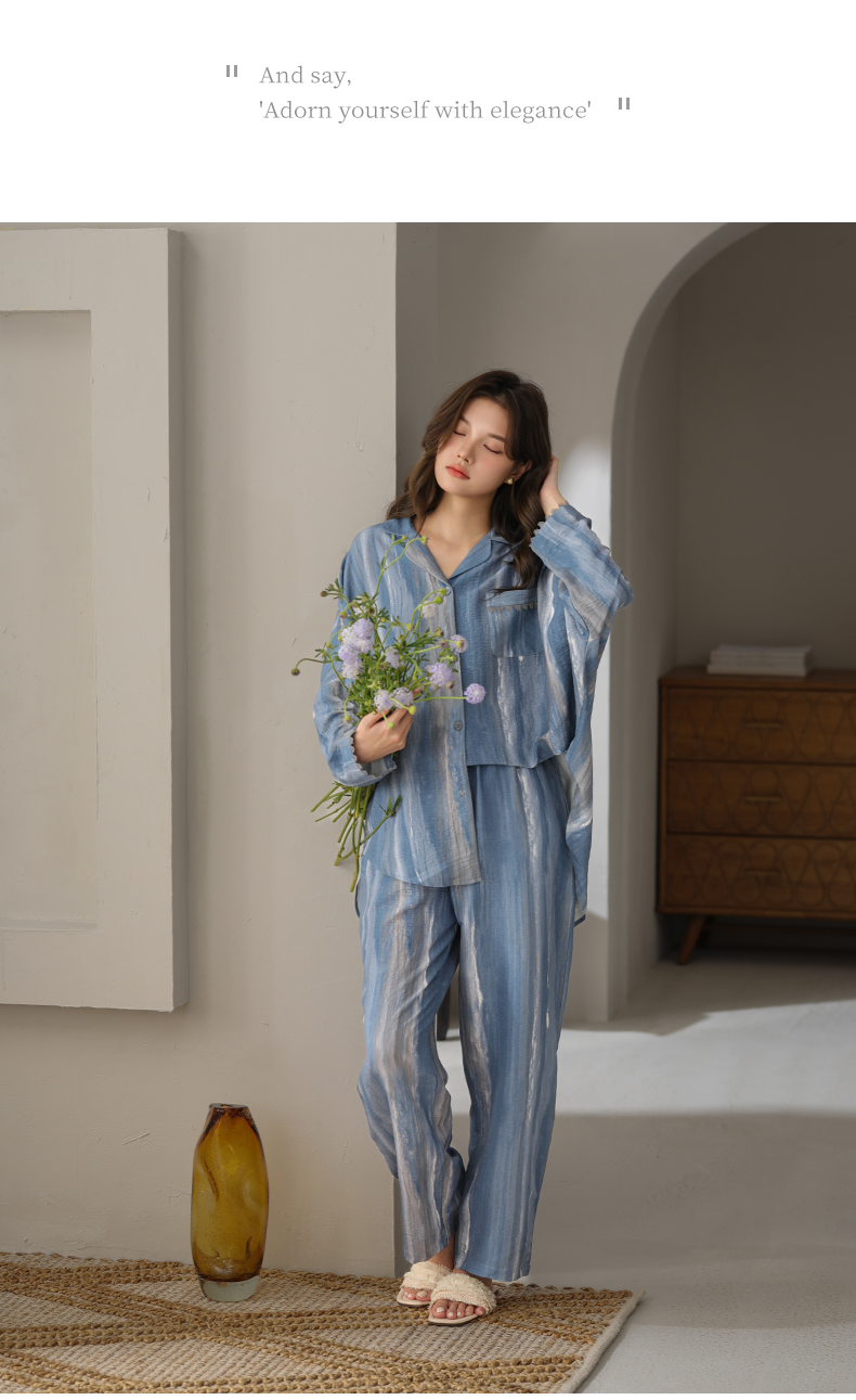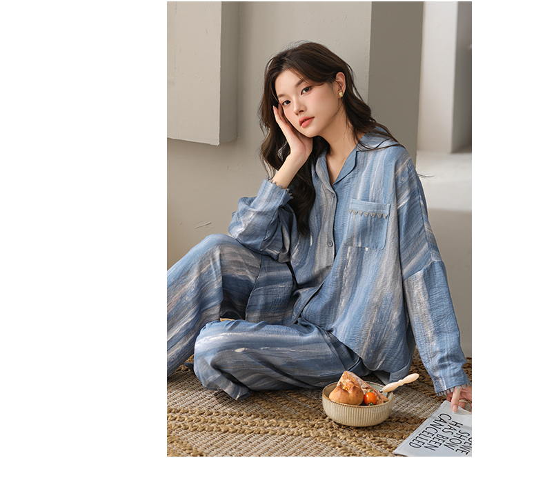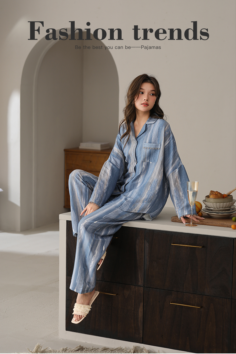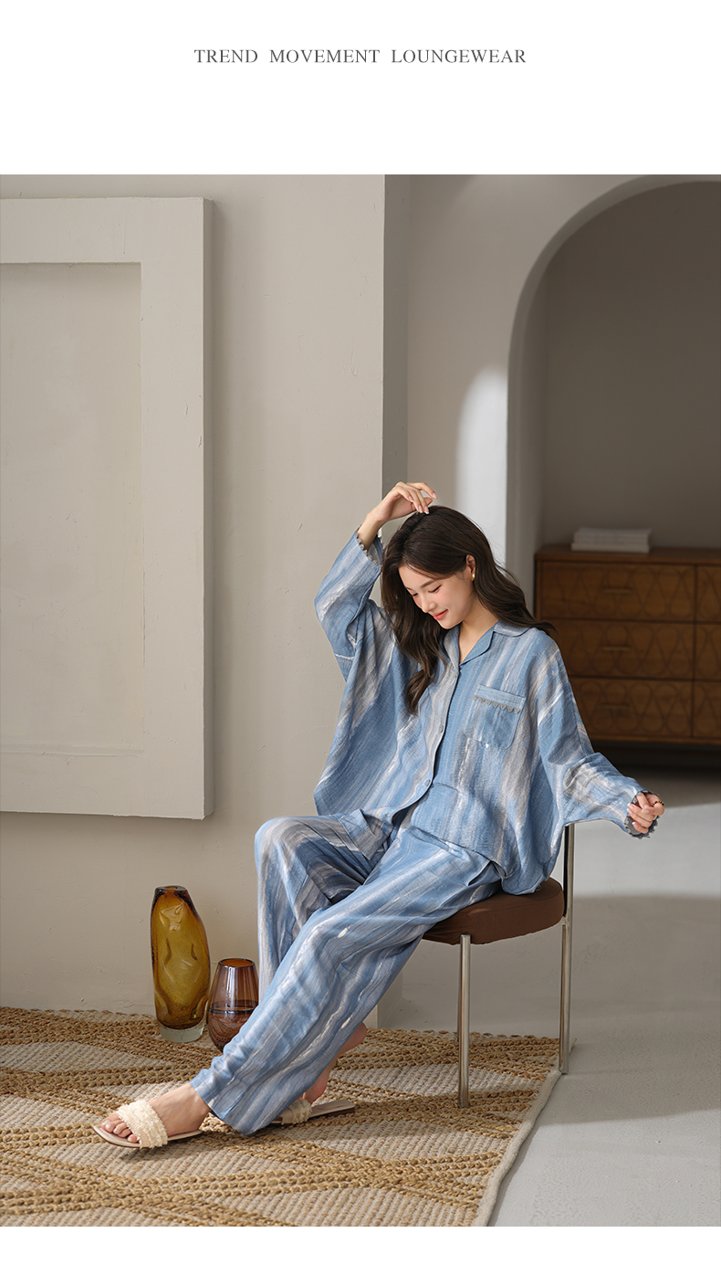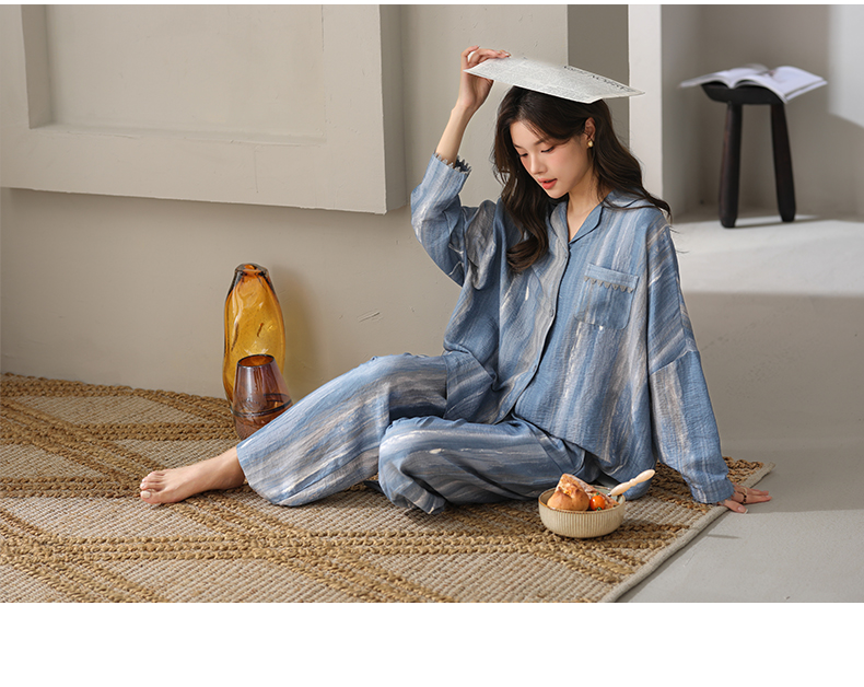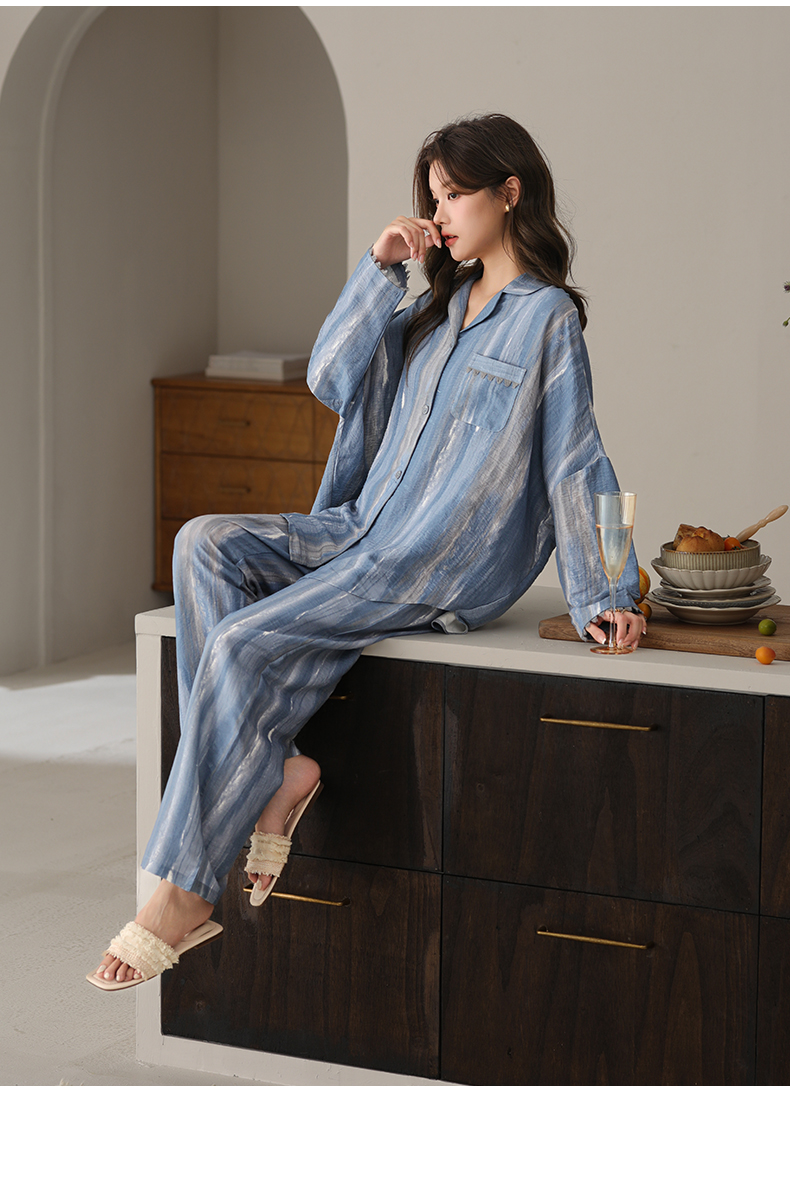 可人儿新款纯棉睡衣女士春秋季长袖时尚开衫开衫可外出家居服套装