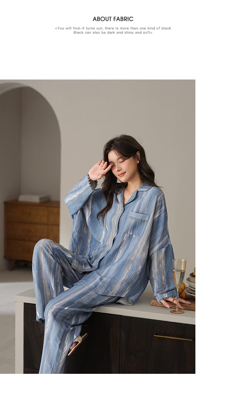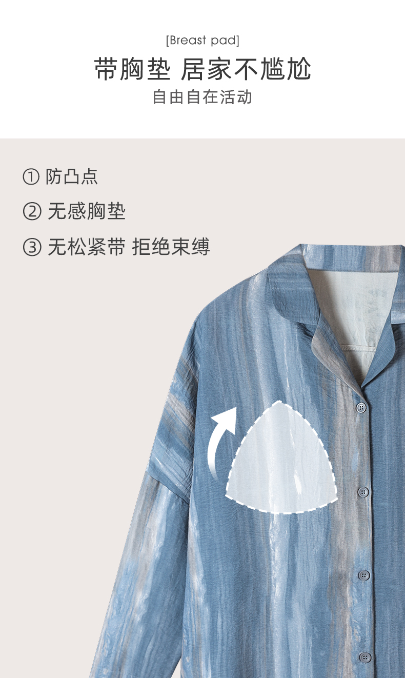 可人儿春秋季带bra泡泡绵女士长袖长裤睡衣可外出小众家居服套装