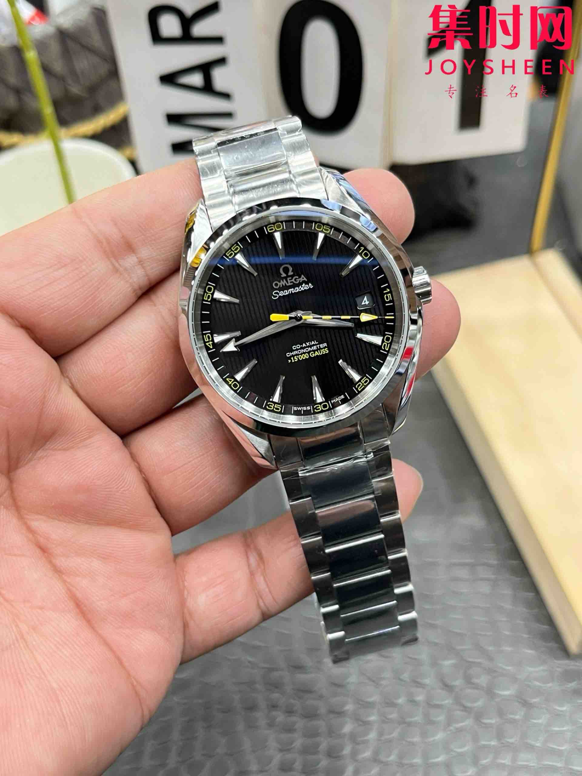 欧米茄VS海马150米系列 大黄蜂 3点位日历 Aqua Terra 150米腕表 8508一体机 男士腕表 表径41.5mm 黄金尺寸,适配多数腕围,日常通勤与正式场合皆能hold住!